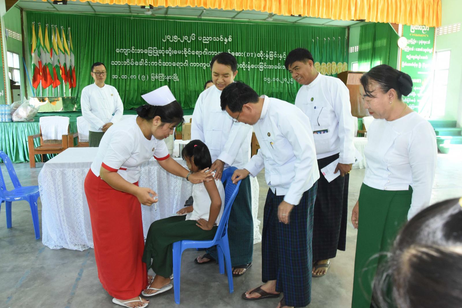 ကချင်ပြည်နယ် ပြည်သူ့ကျန်းမာရေးဦးစီးဌာနနှင့် အခြေခံပညာဦးစီးဌာနတို့ ပူးပေါင်းဆောင်ရွက်သည့် အခြေခံပညာကျောင်းနေ ကလေးငယ်များ အသက်အရွယ်အုပ်စုအလိုက် ဆုံဆို့၊ မေးခိုင်ကာကွယ်ဆေး (DT) နှင့် သားအိမ်ခေါင်းကင်ဆာကာကွယ်ဆေး (HPV) များ ထိုးနှံးပေးခြင်းလုပ်ငန်းကို ကချင်ပြည်နယ်၊ မြစ်ကြီးနားမြို့နယ်အတွင်းရှိ အခြေခံပညာထက်၊ လယ်၊ မူ ကျောင်းများတွင် ယမန်နေ့နံနက်ပိုင်းမှ စတင်၍ ထိုးနှံဆောင်ရွက်ပေးလျက်ရှိသည်။