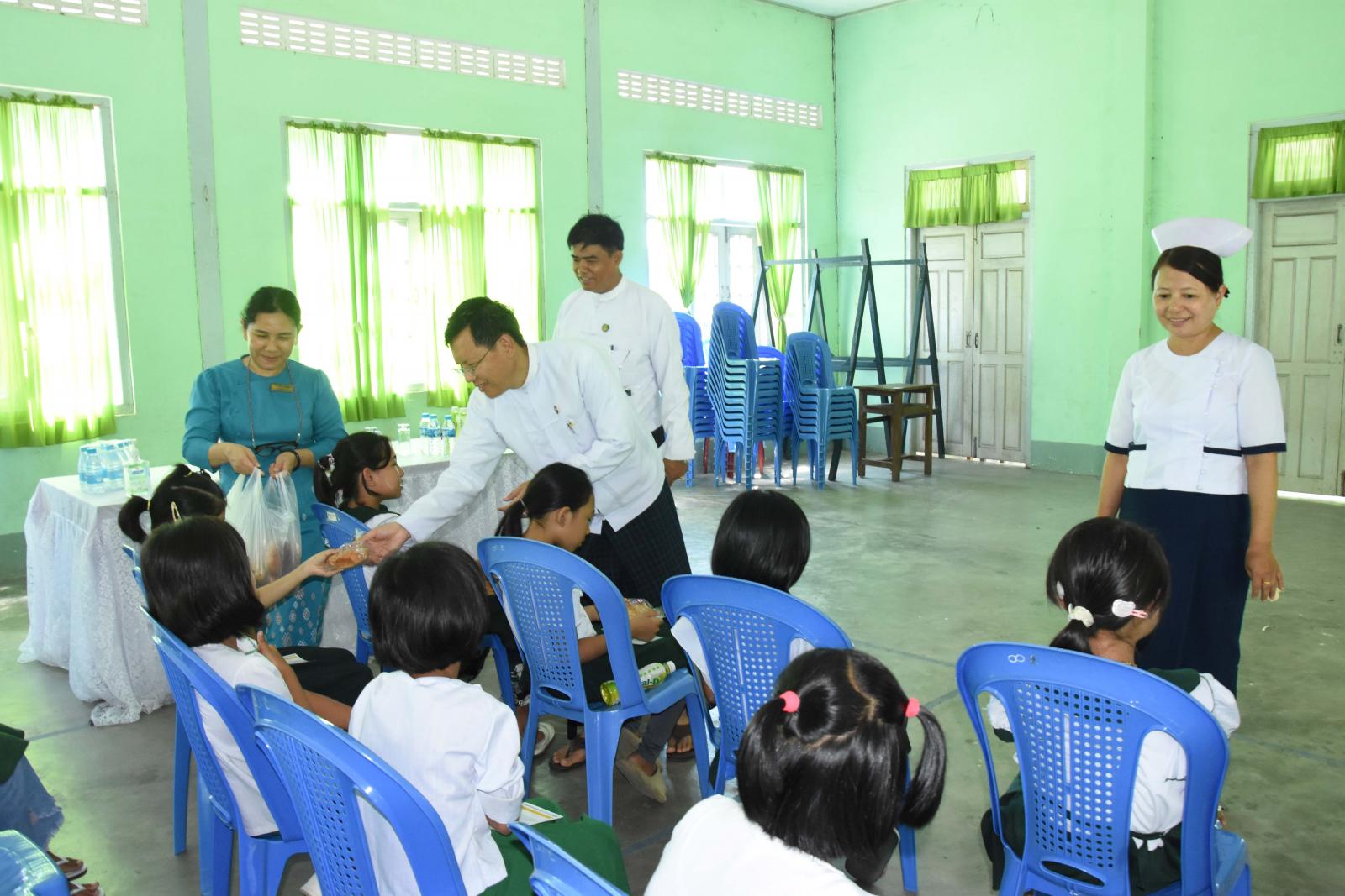 အလားတူ ပြည်နယ်ဝန်ကြီးသည် အမှတ်(၉)အခြေခံပညာအထက်တန်းကျောင်း ရွှေသွေးခန်းမ၌လည်း ကာကွယ်ဆေးထိုးလုပ်ငန်းများ ဆောင်ရွက်နေမှုကို လှည့်လည်ကြည့်ရှုအားပေးခဲ့ကြပြီး ကျောင်းသားကလေးငယ်များအား အာဟာရဖြစ်မုန့်နှင့် ရေသန့်ဘူးများကို ဝေငှကျွေးမွေးခဲ့ကြကြောင်း သိရသည်။