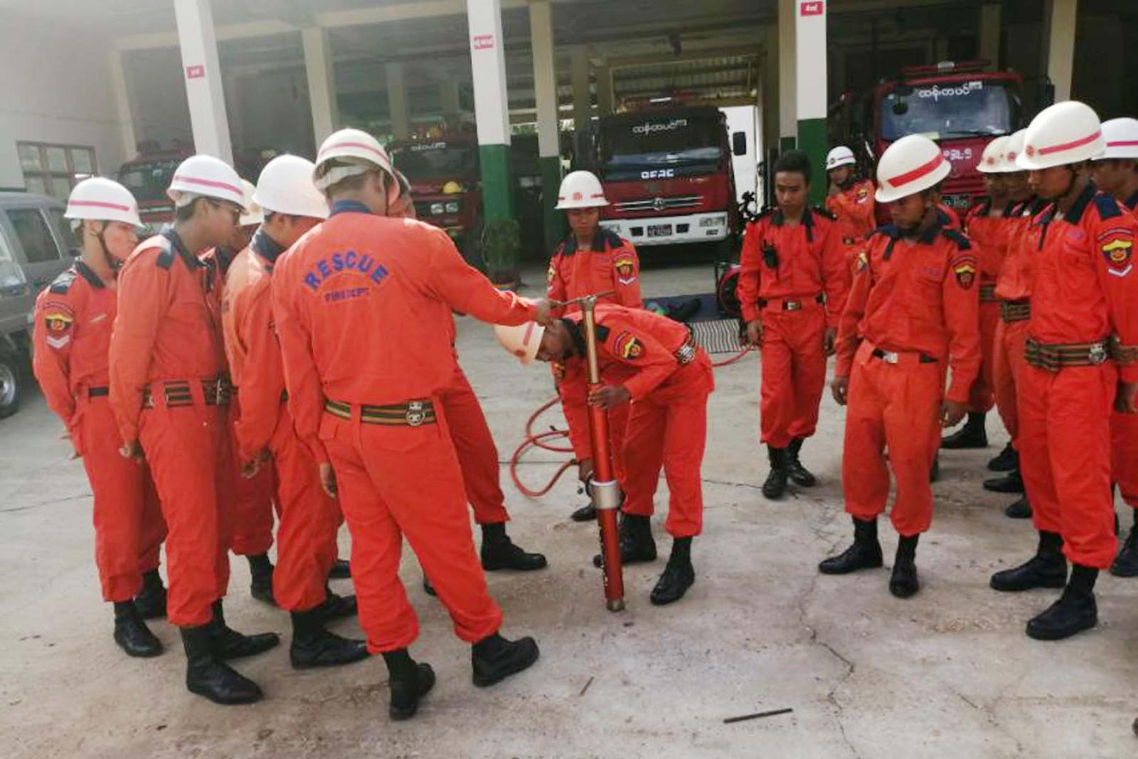 “ရှာဖွေကူညီကယ်ဆယ်ရေးဆိုင်ရာ နည်းစနစ်တွေကို များများလေ့ကျင့်ထားမှသာ မီးသတ် တပ်ဖွဲ့ဝင်တွေအနေနဲ့ မိမိတို့ကိုယ်တိုင် ကျွမ်းကျင်ယုံကြည်မှုတွေရရှိလာပြီး သဘာဝဘေးအပါအဝင် မတော်တဆထိခိုက်မှုဖြစ်စဉ်တွေကို အချိန်တိုအတွင်းမှာ ထိခိုက်မှု အနည်းဆုံးနဲ့ ရှာဖွေကယ်ဆယ်ရေး လုပ်ငန်းတွေကို စနစ်တကျ ဆောင်ရွက်သွားနိုင်မှာဖြစ်ပါတယ်။ နောက်ပြီး မြို့နယ်အတွင်းမှာ အရေးပေါ် ကယ်ဆယ်ခြင်းနှင့်ပြုစုစောင့်ရှောက်နိုင်ဖို့အတွက်လည်း ရှာဖွေကယ်ဆယ်ရေးတပ်ဖွဲ့ဝင် သန္ဓေနှင့် အရန်မီးသတ် အင်အား တပ်စုတစ်စုစာကိုလည်း အသင့်စုဖွဲ့စည်းထားရှိပြီးတော့ အချိန်နှင့်တစ်ပြေးညီချက် ချင်းထွက်ခွာ နိုင်အောင်လည်း လက်ရှိအချိန်မှာ ပြင်ဆင်ဆောင်ရွက် ထားရှိပါတယ်” ဟု မြို့နယ်မီးသတ် ဦးစီးဌာန မြို့နယ်ဦးစီးမှူး ဦးမိုးမင်းအောင်က ရှင်းပြသည်။