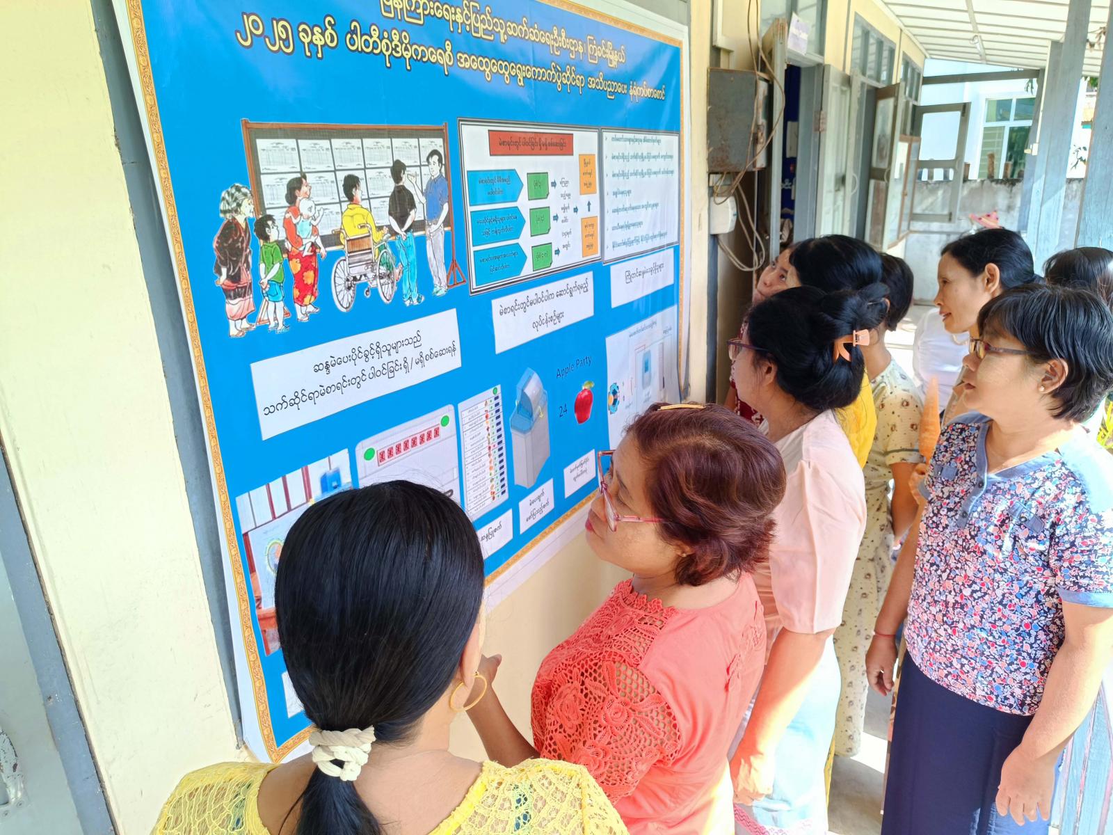 ထို့နောက် ပြန်ကြားရေးနှင့်ပြည်သူ့ဆက်ဆံရေးဦးစီးဌာနမှ ခင်းကျင်းပြသထားသည့် သုတ၊ ရသ စာအုပ်စာစောင်ပြပွဲနှင့် ကလေးအလုပ်သမားပပျောက်ရေး အသိပညာပေးနံရံကပ်စာစောင်၊ ၂၀၂၅ ခုနှစ်၊ ပါတီစုံ ဒီမိုကရေစီ အထွေထွေရွေးကောက်ပွဲဆိုင်ရာ အသိပညာပေးနံရံကပ်စာစောင်တို့အား Book Club, Women Club, Youth Club အဖွဲ့ဝင်များက စိတ်ပါဝင်စားစွာဖြင့် လေ့လာ ကြည့်ရှုခဲ့ကြကြောင်း သိရသည်။
