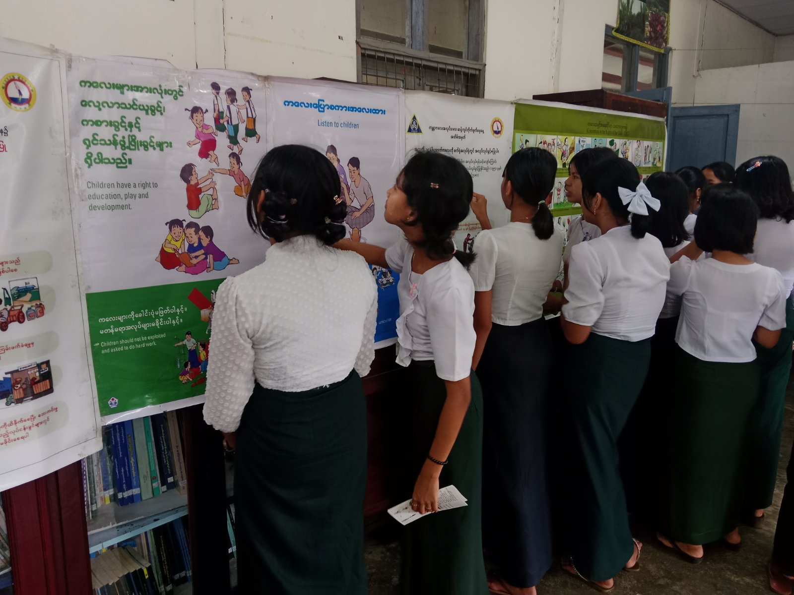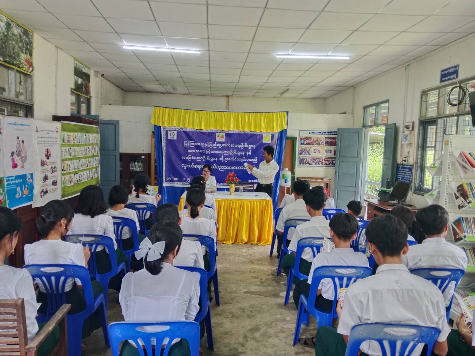 ထို့နောက် မြို့နယ်အားကစားနှင့် ကာယပညာဦးစီးဌာနမှ ဝန်ထမ်းများက အားကစားဆိုင်ရာအသိပညာပေးလက်ကမ်းစာစောင်များဖြန့်ဝေခြင်း၊ မြို့နယ်ပြန်ကြားရေးနှင့်ပြည်သူ့ဆက်ဆံရေးဦးစီးဌာနမှ ဝန်ထမ်းများက ကျောင်းသား၊ ကျောင်းသူများ အသိပညာဗဟုသုတ များတိုးပွားလာစေရန် ကလေးအလုပ်သမားပပျောက်ရေးအသိပညာပေးနံရံကပ်စာစောင်နှင့် မူးယစ်ဆေးဝါးအန္တရာယ် တားဆီးကာကွယ်ရေးနံရံကပ်စာစောင်များ ပြသခြင်းနှင့်အသစ်ရောက်ရှိလာသောသုတ/ရသစာအုပ်စာစောင်များအား ခင်းကျင်းပြသခဲ့ကြောင်း သိရသည်။
