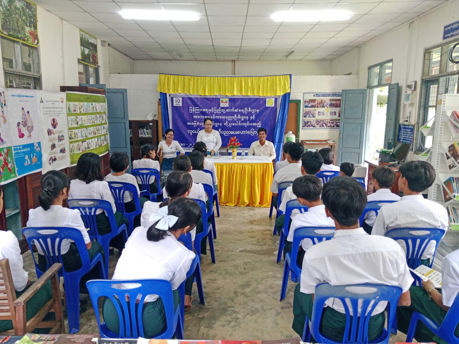 ဆက်လက်၍ သရက်ချောင်းမြို့နယ်၊ အားကစားနှင့် ကာယပညာဦးစီးဌာနမှ နည်းစနစ်မှူး ဦးလင်းနိုင်ဦးက အားကစားနည်းများအကြောင်း၊ ပြေးခြင်း၏ ထိပ်တန်းအကျိုးကျေးဇူး (၁၀)ချက်၊ အားကစားပြုလုပ်ခြင်းဖြင့်ရရှိသည့်အကျိုးကျေးဇူးများအကြောင်း၊ အားကစား ၏ အဓိပ္ပါယ်၊ လမ်းလျှောက်ခြင်းဖြင့်ရရှိနိုင်သော အကျိုးကျေးဇူးများအကြောင်းကို ကျောင်းသား၊ ကျောင်းသူများ သိရှိနားလည်စေရန်အကျယ်တဝင့် ရှင်းလင်းပြောကြားပြီးနောက် မြို့နယ်ပြန်ကြားရေးနှင့်ပြည်သူ့ဆက်ဆံရေးဦးစီးဌာနမှ ဦးစီးအရာရှိ ဒေါ်နန်းခလိုက်ရှုက ကျောင်းသား၊ ကျောင်းသူများအား လူငယ်ရေးရာအသိပညာပေးဟောပြောပွဲကျင်းပပြုလုပ်ရခြင်းရည်ရွယ်ချက်အား ရှင်းလင်းပြောကြားပြီးနောက် လူငယ်နှင့်စာဖတ်ခြင်းအကြောင်းအရာများ၊ စာဖတ်ခြင်းဖြင့်ရရှိနိုင်သည့် အကျိုးကျေးဇူးများအကြောင်းကို ဆွေးနွေး ပြောကြားခြင်း၊ မိမိတို့ပြန်ကြားရေးနှင့် ပြည်သူ့ဆက်ဆံရေးဦးစီးဌာန၊ ပြည်သူ့စာကြည့်တိုက်တွင် အသိပညာဗဟုသုတရရှိစေရန် စာအုပ်စာပေများနှင့် သုတ၊ ရသ၊ စာအုပ်စာစောင်များကို အခမဲ့လာရောက်ဖတ်ရှုပြီး ငှားရမ်းလိုပါက စာကြည့်တိုက် အသင်းဝင်၍ အခမဲ့ငှားရမ်းနိုင် ကြောင်းရှင်းလင်းပြောကြားသည်။