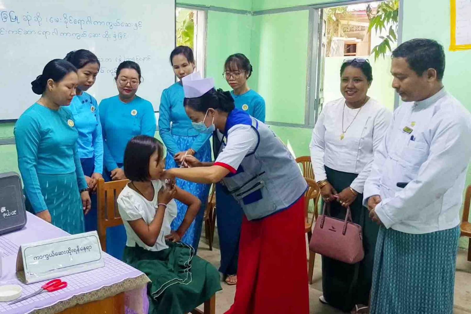 ပြည်ထောင်စုနယ်မြေ၊ နေပြည်တော် တပ်ကုန်းမြို့နယ်၌ ကျောင်းအခြေပြု အသက် ၉ နှစ်မှ ၁၀ နှစ်အရွယ် ကျောင်းသူများအား သားအိမ်ခေါင်းကင်ဆာရောဂါကြိုတင်ကာကွယ်နိုင်ရန် သားအိမ်ခေါင်းကင်ဆာရောဂါကာကွယ်ဆေး(HPV)နှင့် ဆုံဆို့မေးခိုင်ရောဂါကာကွယ်ဆေး (DT)ထိုးနှံခြင်းကို အောက်တိုဘာ ၁၃ ရက်မှ ၂၁ ရက်နေ့ထိ ကာကွယ်ဆေးများထိုးနှံဆောင်ရွက်ခဲ့သည်။