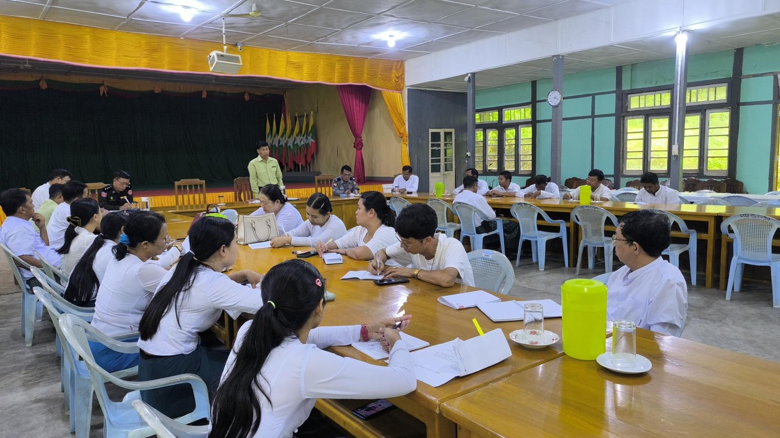 အစည်းအဝေးတွင် မြို့နယ်စီမံခန့်ခွဲရေးနှင့်အုပ်ချုပ်ရေးကော်မတီဥက္ကဋ္ဌ ဦးအောင်စန်းဝင်းက ပြီးခဲ့သည့်နှစ် ၃၆ ကြိမ်မြောက် စုပေါင်းမဟာဘုံကထိန်ပွဲတွင် ပဒေသာပင် ၂၃ ပင်၊ ငွေသား ၁၀၀၂၅၀၀၀ ကျပ်နှင့် ပစ္စည်းတန်ဖိုး ‌၉၁၇၀၃၀၀ ကျပ်၊ စုစုပေါင်းတန်ဖိုး ၁၉၁၉၅၃၀၀ ကျပ် တို့အား မြို့အတွင်းလှည့်လည်ကာ သီရိမင်္ဂလာကျောင်းတိုက်သို့ ပို့ဆောင်လှူဒါန်းခဲ့ကြောင်း၊ ယခုနှစ်တွင်  နိုဝင်ဘာလ ၃ ရက်နေ့ မွန်းလွဲပိုင်းတွင် မြို့ပေါ်ရပ်ကွက်များအတွင်း ပဒေသာပင်များ လှည့်လည်၍ ဘုန်းတော်ကြီးကျောင်းသို့ ပို့ဆောင်မည်ဖြစ်ပြီး နိုဝင်ဘာ ၄ ရက်နေ့တွင် သီရိမင်္ဂလာကျောင်းတိုက်၌ သံဃာတော်များ ပင့်ဆောင်ကာ ကထိန်သင်္ကန်းနှင့် နေ့လယ် ဆွမ်းဆက်ကပ်လှူဒါန်းမည်ဖြစ်ကြောင်း ဆွေးနွေးပြောကြားသည်။