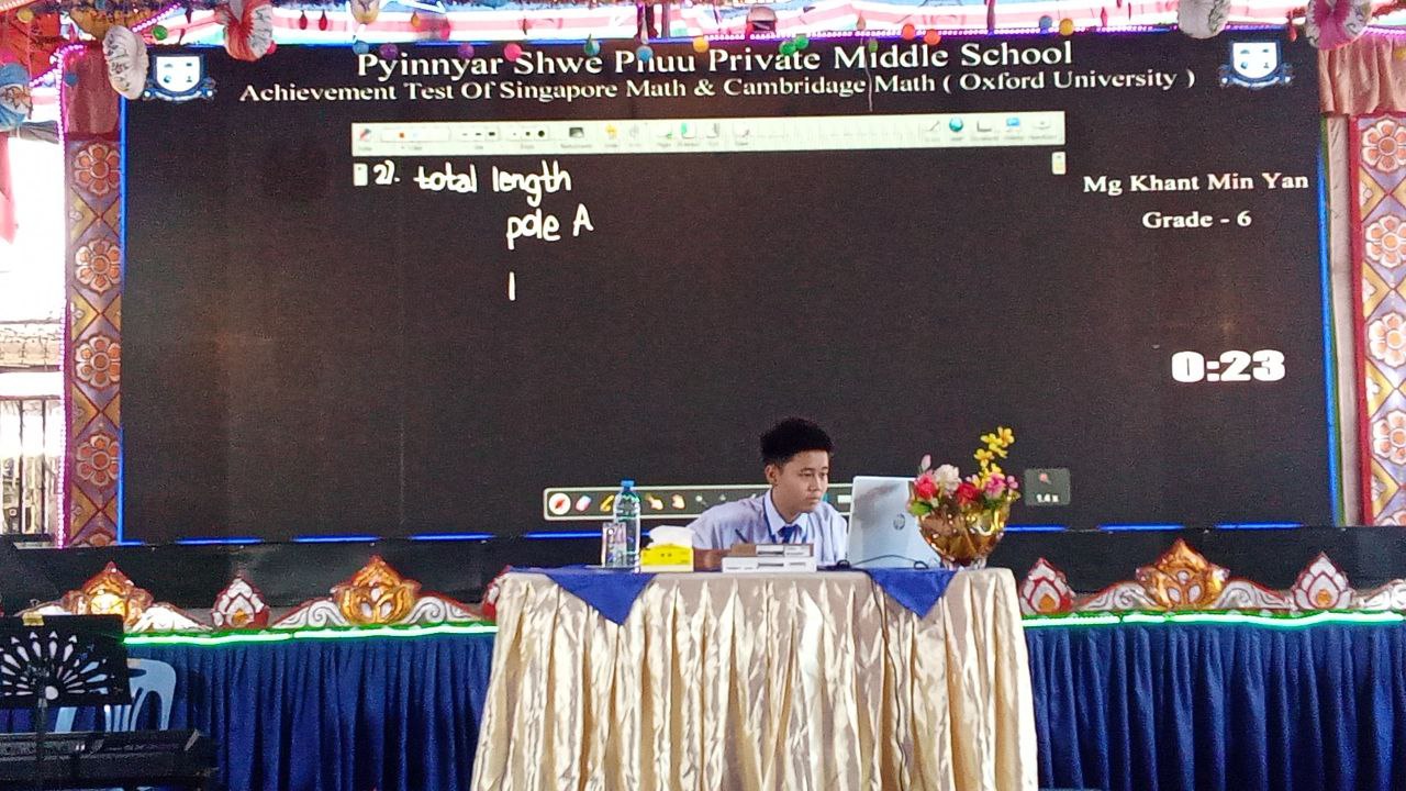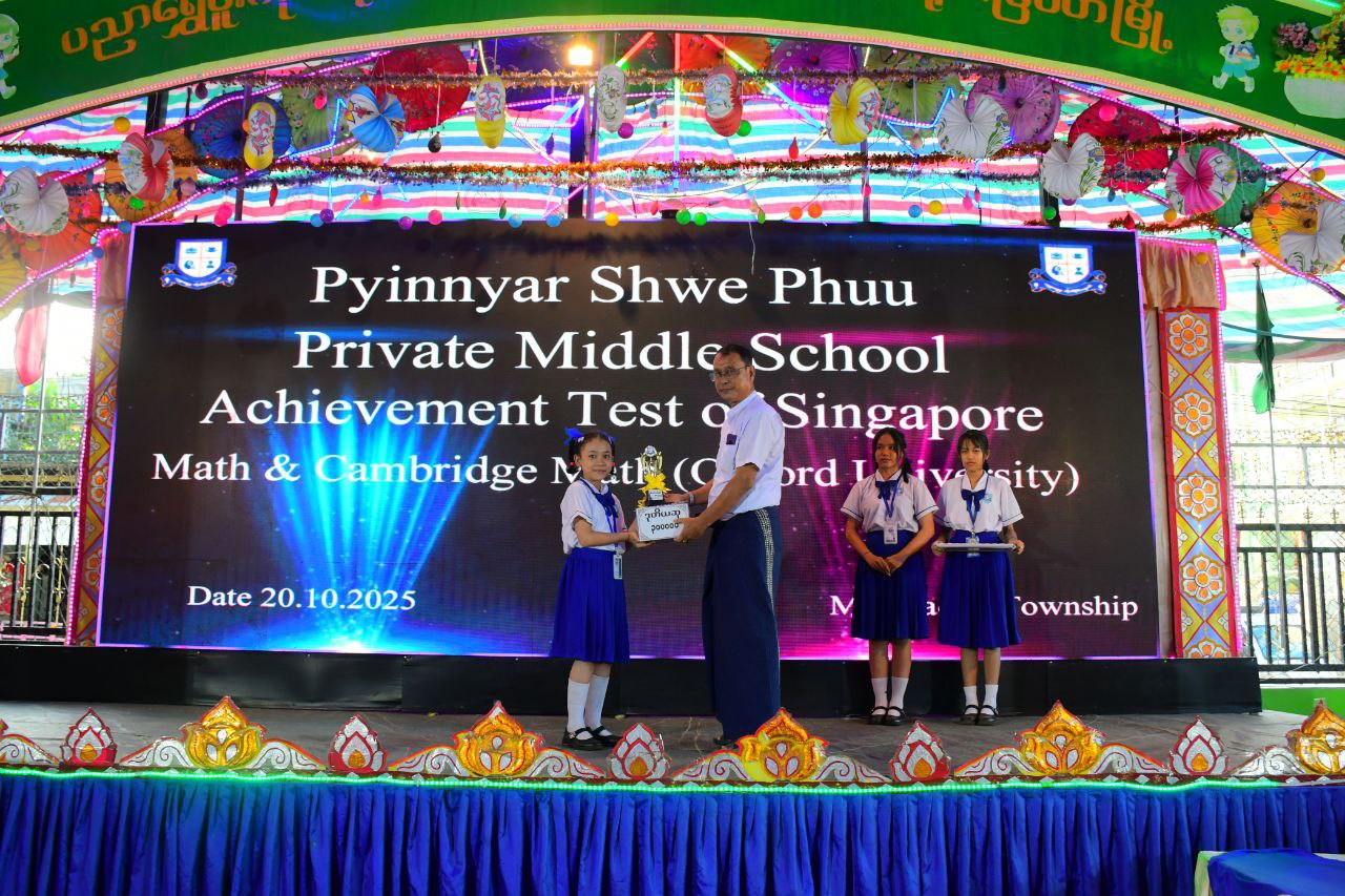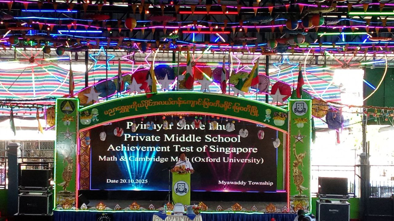 ကရင်ပြည်နယ်၊ မြဝတီခရိုင်၊ မြဝတီမြို့ရှိ ကျောင်းသား၊ ကျောင်းသူလေးများအား နိုင်ငံတကာအခြေခံ သင်္ချာစွမ်းရည်များ တိုးတက်မြင့်မားလာစေရန် ရည်ရွယ်၍ Cambridge(IGCSE) Course, Singapore Math Level(3) 3A & 3B ပြိုင်ပွဲနှင့် ဆုချီးမြှင့်ပွဲအခမ်းအနားကို အောက်တိုဘာလ ၂၀ ရက်နေ့ နံနက် ၈ နာရီအချိန်က ပညာရွှေဖူး ကိုယ်ပိုင်အလယ်တန်းကျောင်းခန်းမဆောင်၌ ကျင်းပပြုလုပ်ခဲ့သည်။