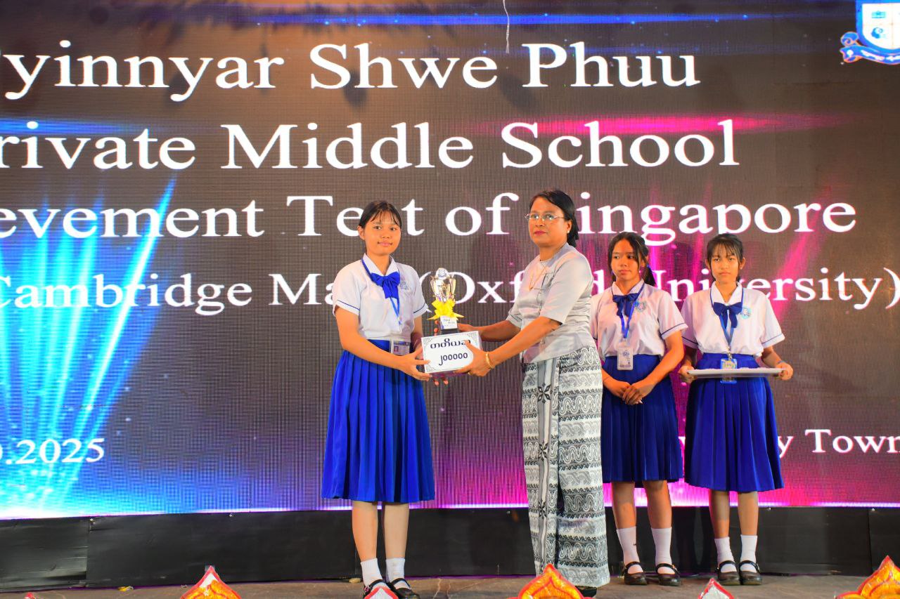 ထို့နောက် အဆင့်မြင့် သင်္ချာစွမ်းရည်ပြိုင်ပွဲများကို ဆက်လက်ကျင်းပပြုလုပ်ရာ ၁၆-၁၀-၂၀၂၅ ရက်နေ့၌ Grade(3)မှ Grade(7)ထိ ရေးဖြေပြိုင်ပွဲတွင် ဝင်ရောက်ယှဉ်ပြိုင်ခဲ့ကြသည့် ကျောင်းသား၊ ကျောင်းသူ စုစုပေါင်း(၅၃၉)ဦးအနက် (၁၂၆)ဦးအား စိစစ်ရွေးချယ်ကာ ၂၀-၁၀-၂၀၂၅ ရက်နေ့တွင် L.E.D Show Work Level အလိုက် မေးခွန်းများမဲနှိုက်ပြီး ဆက်လက်ယှဉ်ပြိုင်၍ သတ်မှတ်ချိန်အတွင်း ဖြေဆိုနိုင်သူ ကျောင်းသား၊ကျောင်းသူ(၁၂)ဦးအား ပထမဆု ကျပ် ငါးသိန်း၊ ဒုတိယဆု ကျပ် သုံးသိန်း၊ တတိယဆု ကျပ်နှစ်သိန်းစီဖြင့် တာဝန်ရှိသူများက Level အလိုက် ဆုများ အသီးသီးချီးမြှင့်ခဲ့ကြကြောင်းနှင့် (၂၆) ကြိမ်မြောက် အဆို၊ အက၊ အရေး၊ အတီး ပြိုင်ပွဲ (ဗဟို)အဆင့် ကာလပေါ် (၁၀-၁၅)အဆို ပထမ ရွှေတံဆိပ်ဆုရှင် မောင်ဇွဲချစ်အောင်အား ထပ်ဆင့်ဂုဏ်ပြုငွေ ပေးအပ်ချီးမြှင့်ခဲ့ကြောင်း သိရသည်။