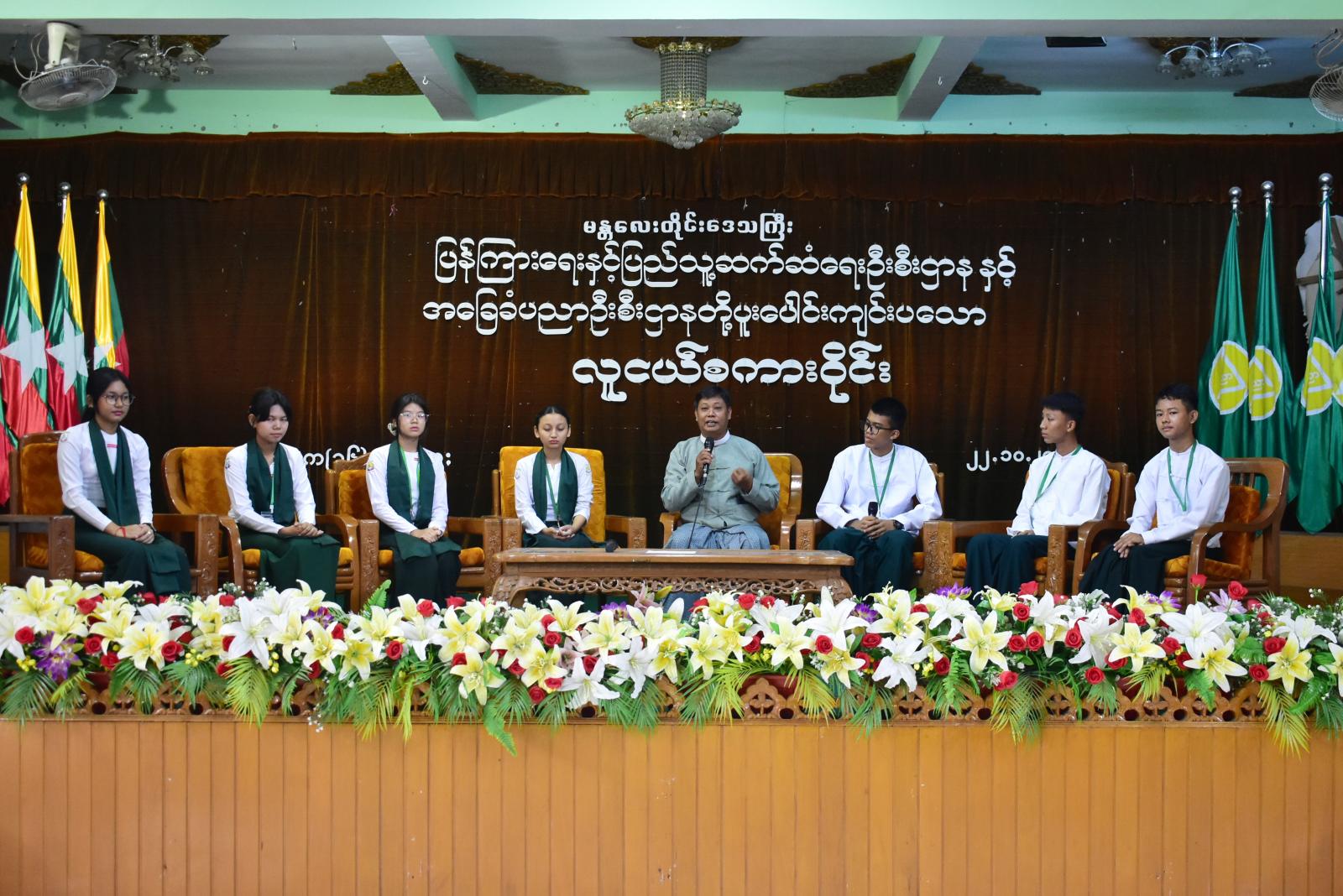 အနာဂတ်ကာလတွင် မျိုးဆက်သစ်ကျောင်းသားလူငယ်များ ဗလငါးတန်ပြည့်စုံစေအတွက် ရန်ရည်ရွယ်ကာ ပြန်ကြားရေးနှင့်ပြည်သူ့ဆက်ဆံရေးဦးစီးဌာနနှင့် အခြေခံပညာဦးစီးဌာနတို့ ပူးပေါင်းကျင်းပသော လူငယ်စကားဝိုင်းအခမ်းအနားကို ချမ်းအေးသာစံမြို့နယ် အမှတ် (၁၆) အခြေခံပညာအထက်တန်းကျောင်းရှိ ပညာရတနာခန်းမ၌ ယနေ့ နံနက်ပိုင်းက ကျင်းပခဲ့သည်။