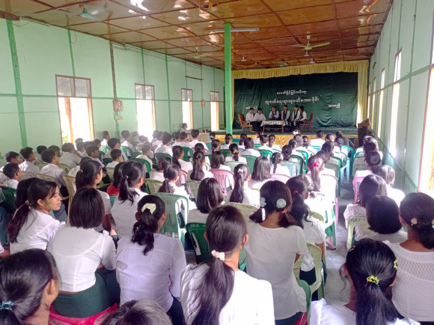 ရှေးဦးစွာ လူငယ်ရေးရာအသိပညာပေးဟောပြောပွဲကို ပြုလုပ်ရာ မြို့နယ်ပြန်ကြားရေးနှင့်ပြည်သူ့ဆက်ဆံရေးဦးစီးဌာန ဦးစီးအရာရှိ ဒေါ်သင်းသင်းက ကျောင်းသားလူငယ်များ ဗလငါးတန်နှင့်ပြည့်စုံစေရေး အသိပညာပေးဟောပြောသည်။ ထို့နောက် မြို့နယ်ပြန်ကြားရေးနှင့်ပြည်သူ့ဆက်ဆံရေးဦးစီးဌာန ဦးစီးအရာရှိဒေါ်သင်းသင်းက ဦးဆောင်၍ လူငယ်စကားဝိုင်းကို စတင်ရာ Grade-8 မှ မောင်ဖြိုးမင်းသန့်က လူငယ်နှင့်မူးယစ်ဆေး၊ မောင်ဇွဲကောင်းလျှံဝင်းက လူငယ်နှင့်အားကစား၊ မကြည်ဖြူရှင်းသန့်က လူငယ်နှင့်ယဉ်ကျေးမှု၊ မမေသက်ဇော်က လူငယ်နှင့်စာပေ၊ မခွန်းကြယ်စင်မြင့်မိုရ်က လူငယ်နှင့်ကျန်းမာရေး ခေါင်းစဉ်များဖြင့်ဆွေးနွေးကြသည်။ ထို့နောက် ကျောင်းအုပ်ဆရာမကြီး ဒေါ်လဲ့လဲ့စိမ်းက ကျေးဇူးတင်စကားပြောကြားသည်။