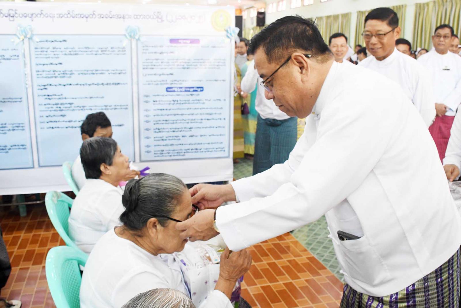 တိုင်းဒေသကြီးပြည်သူ့ကျန်းမာရေးနှင့် ကုသရေးဦးစီးဌာနမှူးက အခမ်းအနားကျင်းပရခြင်း၏ ရည်ရွယ်ချက်၊ ကျန်းမာရေးဝန်ကြီးဌာနမှ ဆောင်ရွက်ပေးနေသော လုပ်ငန်းများအား တင်ပြပြီး တိုင်းဒေသကြီးဝန်ကြီးချုပ်၊ တိုင်းဒေသကြီးတရားလွှတ်တော်တရားသူကြီးချုပ်နှင့် တိုင်းဒေသကြီးဝန်ကြီးများက ခုတင်(၃၀၀)ဆံ့ ပြည်သူ့ဆေးရုံကြီးထားဝယ်မှ ဆေးရုံအုပ်ကြီး၊ မျက်စိအထူးကု ဆရာဝန်ကြီး ဦးဆောင်သော ဆေးအဖွဲ့ ကမ္ဘာ့မျက်မမြင် ပပျောက်ရေးနေ့ အထိမ်းအမှတ်အဖြစ် ဘိုးဘွားများအား မျက်စိစမ်းသပ် ကုသပေး၍ ကုသိုလ်ယူနေမှုအား ကြည့်ရှုအားပေးပြီးပါဝါမျက်မှန်နှင့်လှူဖွယ်ပစ္စည်းများပေးအပ်ကြောင်းသတင်းရရှိသည်။