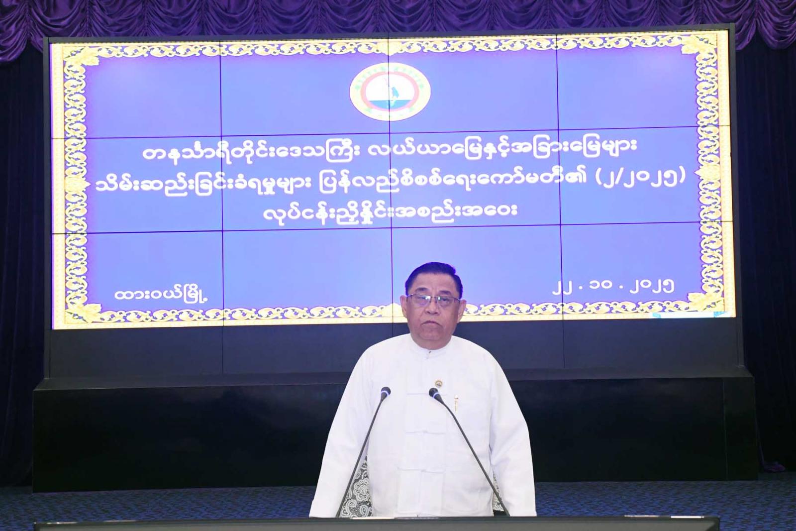တနင်္သာရီတိုင်းဒေသကြီး လယ်ယာမြေနှင့် အခြားမြေများ သိမ်းဆည်းခြင်းခံရမှုများ ပြန်လည်စိစစ်ရေးကော်မတီ၏ (၂/၂၀၂၅)လုပ်ငန်းညှိနှိုင်းအစည်းအဝေးကို ယမန်နေ့နံနက် ၁၀ နာရီက ထားဝယ်မြို့၊ တိုင်းဒေသကြီးအစိုးရအဖွဲ့ရုံး၊ အစည်းအဝေးခန်းမ၌ ကျင်းပသည်။