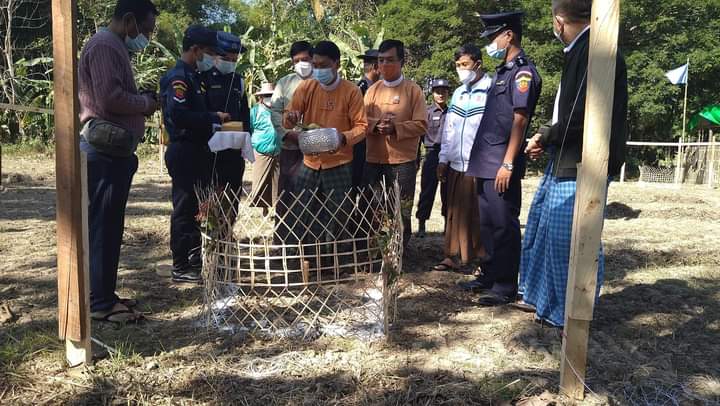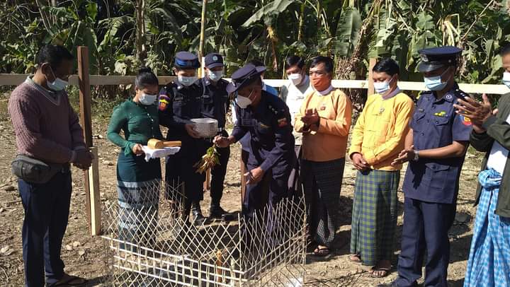 ဧရာဝတီတိုင်းဒေသကြီး ကြံခင်းမြို့နယ် ရေနံတောင်ကျေးရွာအုပ်စုတွင် နယ်မြေ မီးသတ်စခန်း ဆောက်လုပ်ရန် ပန္နက်တင်ခြင်း အခမ်းအနားကို ယမန်နေ့ နံနက်ပိုင်းက ကြံခင်းမြို့နယ် ရေနံတောင်ကျေးရွာ မီးသတ်စခန်း တည်ဆောက်ရန် နေရာတွင် ပြုလုပ်ခဲ့ကြောင်း သိရသည်။