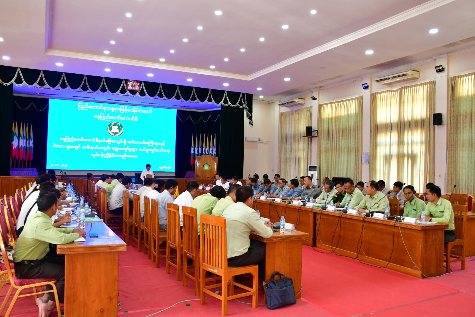 ဦးစွာ နေပြည်တော်ကောင်စီဥက္ကဋ္ဌ ဦးသန်းထွန်းဦးကအဖွင့်အမှာစကားပြောကြားရာ ပြည်ထောင်စု နယ်မြေ၊ နေပြည်တော်ကောင်စီ နယ်မြေအတွင်းမှာရှိတဲ့ အဓိကလမ်းမကြီးများနှင့် လမ်းဘေး ဝဲ/ယာ များတွင် လမ်းနယ်နိမိတ်အား ကျူးကျော်ဝင်ရောက်ပြီး ဆောင်ရွက်ထားတဲ့ အဆောက်အအုံများနှင့် အခြားသောကျူးကျော်ကိစ္စရပ်များ၊ လမ်းနယ်နိမိတ်ပြင်ပလမ်းနှင့် ဆက်စပ်လျက်ရှိနေသော နေရာများမှာရှိနေတဲ့ အဆောက်အအုံများနှင့် အခြားသော ကျူးကျော်နေမှုများကို ဖယ်ရှားရှင်းလင်း နိုင်ရေး၊ ပြည်ထောင်စုနယ်မြေ နေပြည်တော်ကို နိုင်ငံတော်အကြီးအကဲ၏ လမ်းညွှန်ချက်များနှင့်အညီ နိုင်ငံတကာအဆင့်မီမြို့တော်ကြီးဖြစ်စေရန် Green City၊ Clean City ၊ Smart City (၃)ရပ်အတိုင်း သန့်ရှင်း၊ သပ်ရပ်၊ သာယာ၊ လှပ၊ စိမ်းလန်း၊ စိုပြေသော မြို့တော်ကြီးဖြစ်စေရန်အတွက် အဖက်ဖက်မှ ဘက်စုံ၊ ကဏ္ဍစုံ အထူးကြိုးပမ်းဆောင်ရွက်လျက်ရှိကြောင်း၊ ယခုလိုနိုင်ငံတစ်ကာအဆင့်မီ မြို့တော်ဖြစ်အောင် ဘက်စုံကဏ္ဍစုံမှ အကောင်အထည်ဖော် ဆောင်ရွက်လျက်ရှိနေတဲ့အချိန်မှာ မြို့တော်အင်္ဂါရပ်များနှင့် မညီညွတ်တဲ့မြို့တော်ရဲ့အဆင့် ဂုဏ်ပြရုပ်ကို ထိခိုက်စေတဲ့ လမ်းနယ်နိမိတ်အတွင်းနှင့် လမ်းနယ်နိမိတ်ပြင်ပတွေမှာ ကျူးကျော်ဆောက် လုပ်ထားတဲ့ အဆောက်အဦများနှင့် ရွာအဝင်လမ်းများကို လုပ်ထုံးလုပ်နည်း ဥပဒေ၊ စည်းမျဉ်း၊ စည်းကမ်းများနှင့်အညီ ဖယ်ရှားရှင်းလင်းဆောင်ရွက်သွားဖို့လိုပါကြောင်း၊ ယခုလိုဆောင်ရွက်တဲ့ အခါမှာလည်း သက်ဆိုင်ရာဌာနအလိုက် တာဝန်ရှိသူများအနေဖြင့် ဆောင်ရွက်မည့် လုပ်ငန်းစီမံချက်များရေးဆွဲပြီး ကဏ္ဍအလိုက်အဖွဲ့များ ဖွဲ့စည်းတာဝန်ပေးအပ်ဖို့လိုပါကြောင်း၊ ဖွဲ့စည်းတာဝန်ပေးအပ်ထားတဲ့ အဖွဲ့များမှာပါဝင်တဲ့ သက်ဆိုင်ရာ ပုဂ္ဂိုလ်များအနေဖြင့်လည်း မိမိတို့၏ လုပ်ငန်းတာဝန်များကို အထူးအလေးထားပြီး ကြပ်ကြပ်မတ်မတ်ဆောင်ရွက်နေဖို့လိုပါကြောင်း၊ စနစ်တကျ မြေပြင်စာရင်း ကောက်ယူပြီး ခိုင်မာပြည့်စုံတဲ့ စာရင်းလည်းဖြစ်ဖို့လိုကြောင်း၊ လုပ်ထုံးလုပ်နည်း မူဝါဒများနှင့်အညီ ဖယ်ရှားရှင်းလင်းဆောင်ရွက်သွားဖို့ လိုပါကြောင်း၊ လမ်းနယ်နိမိတ်အတွင်း ကျူးကျော်မှုများအား ဆောက်လုပ်ရေးဝန်ကြီးဌာန၊ လမ်းဦးစီးဌာနက ထုတ်ပြန်ထားသော သတ်မှတ်ပြဌာန်းထားသော ဥပဒေ၊ နည်းဥပဒေ၊ လုပ်ထုံးလုပ်နည်း၊ ညွှန်ကြားချက်များနှင့်အညီ ဆက်လက် ဖယ်ရှားရှင်းလင်းဆောင်ရွက်သွားရန်နှင့် ဆောင်ရွက်ပြီးစီးမှုများအား အချိန်နှင့်တစ်ပြေးညီ ပြန်လည်တင်ပြရန်လိုအပ်ကြောင်း ပြောကြားသည်။