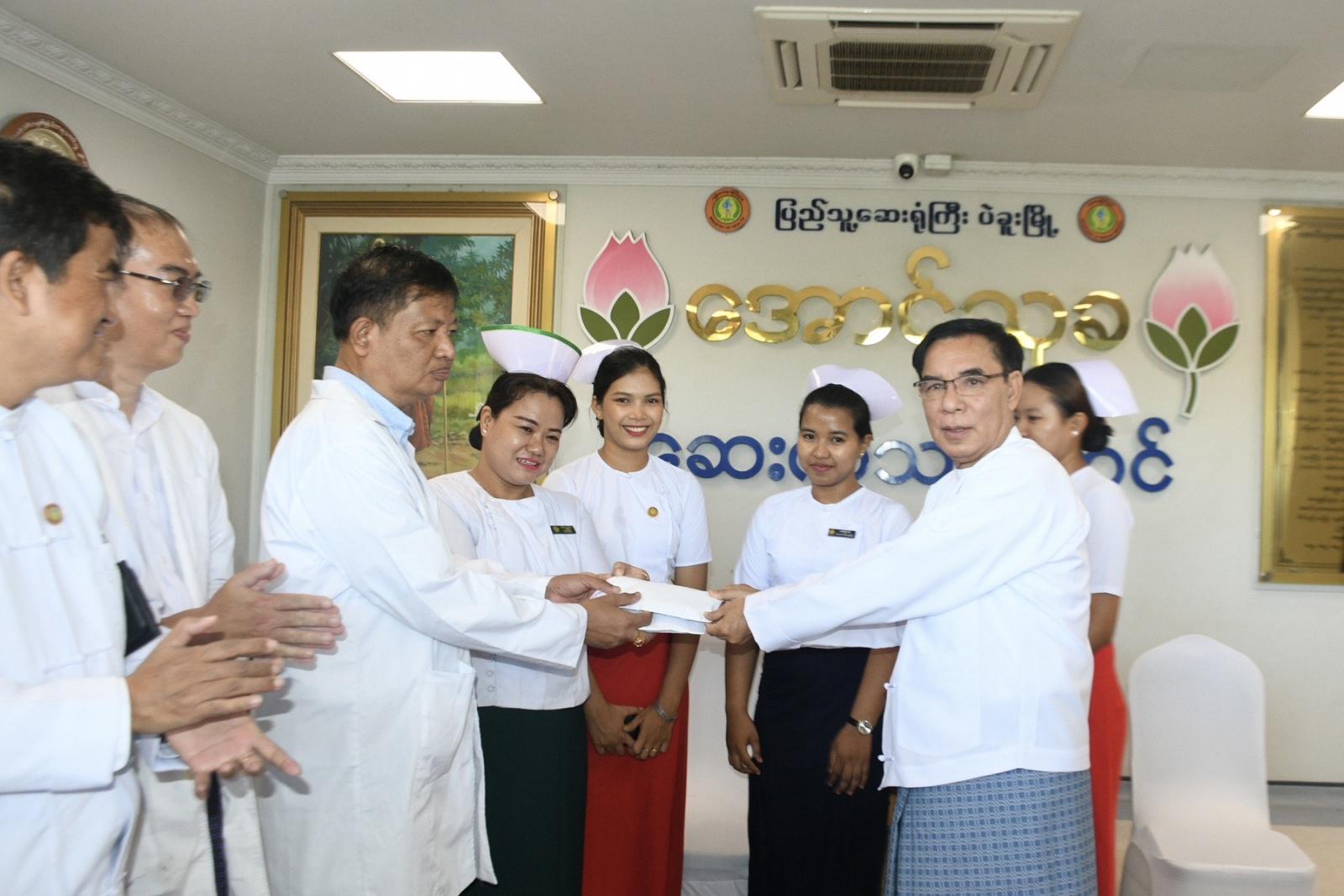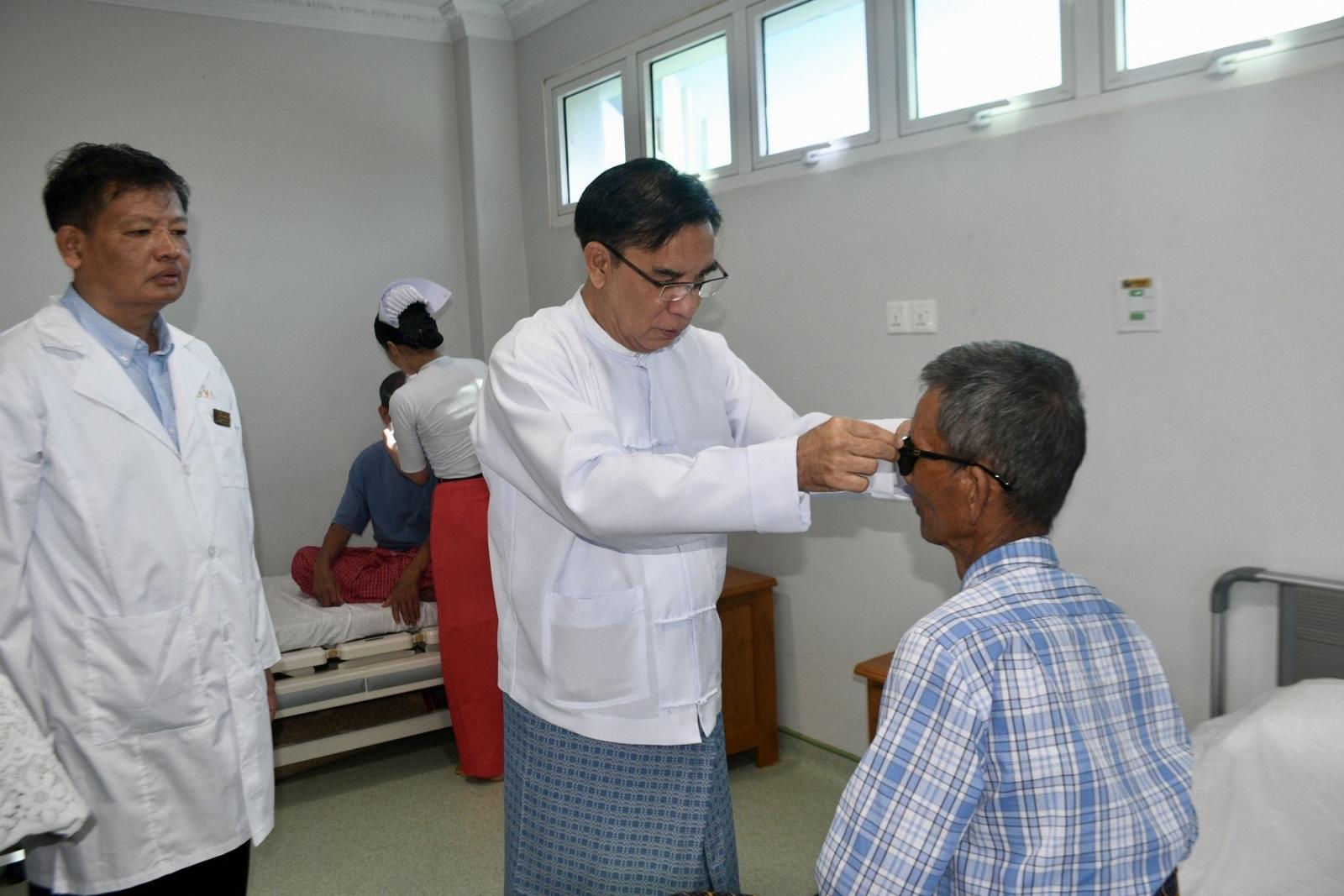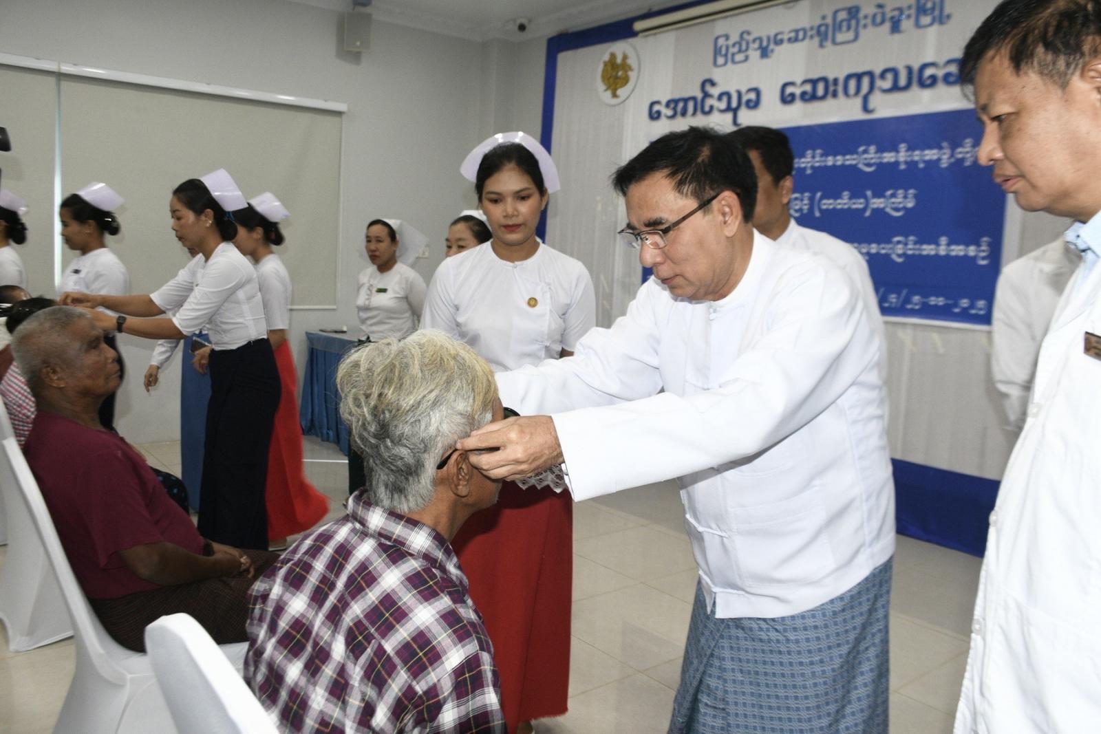ထို့နောက် ပဲခူးတိုင်းဒေသကြီး ဝန်ကြီးချုပ်ဦးမျိုးဆွေဝင်း၊ အစိုးရအဖွဲ့ဝင်ဝန်ကြီးများ၊ တိုင်းဒေသကြီးပြည်သူ့ကျန်းမာရေးနှင့် ကုသရေးဦးစီးဌာနမှူး ဒေါက်တာဇော်မင်းထွန်း၊ ဆေးရုံအုပ်ကြီးဒေါက်တာဇော်လွင်တို့နှင့်အတူ မျက်စိခွဲစိတ်ကုသရန် လူနာများနှင့် မျက်စိခွဲစိတ်ကုသပြီးလူနာများအား လိုက်လံကြည့်ရှု အားပေးစကားပြောကြားပြီး ခွဲစိတ်ကုသပြီးလူနာများအား ဆေးမျက်မှန်များတပ်ဆင်ပေးကာ အာဟာရ ဖြည့်စွက်စာများအား ထောက်ပံ့ပေးအပ်ခဲ့ကြသည့်အပြင် မျက်စိအထူးကုဆရာဝန်ကြီးများ၊ ကျန်းမာရေး ဝန်ထမ်းများနှင့် ပရဟိတအဖွဲ့ဝင်များအား ချီးမြှင့်ငွေများ ပေးအပ်ခဲ့သည်။