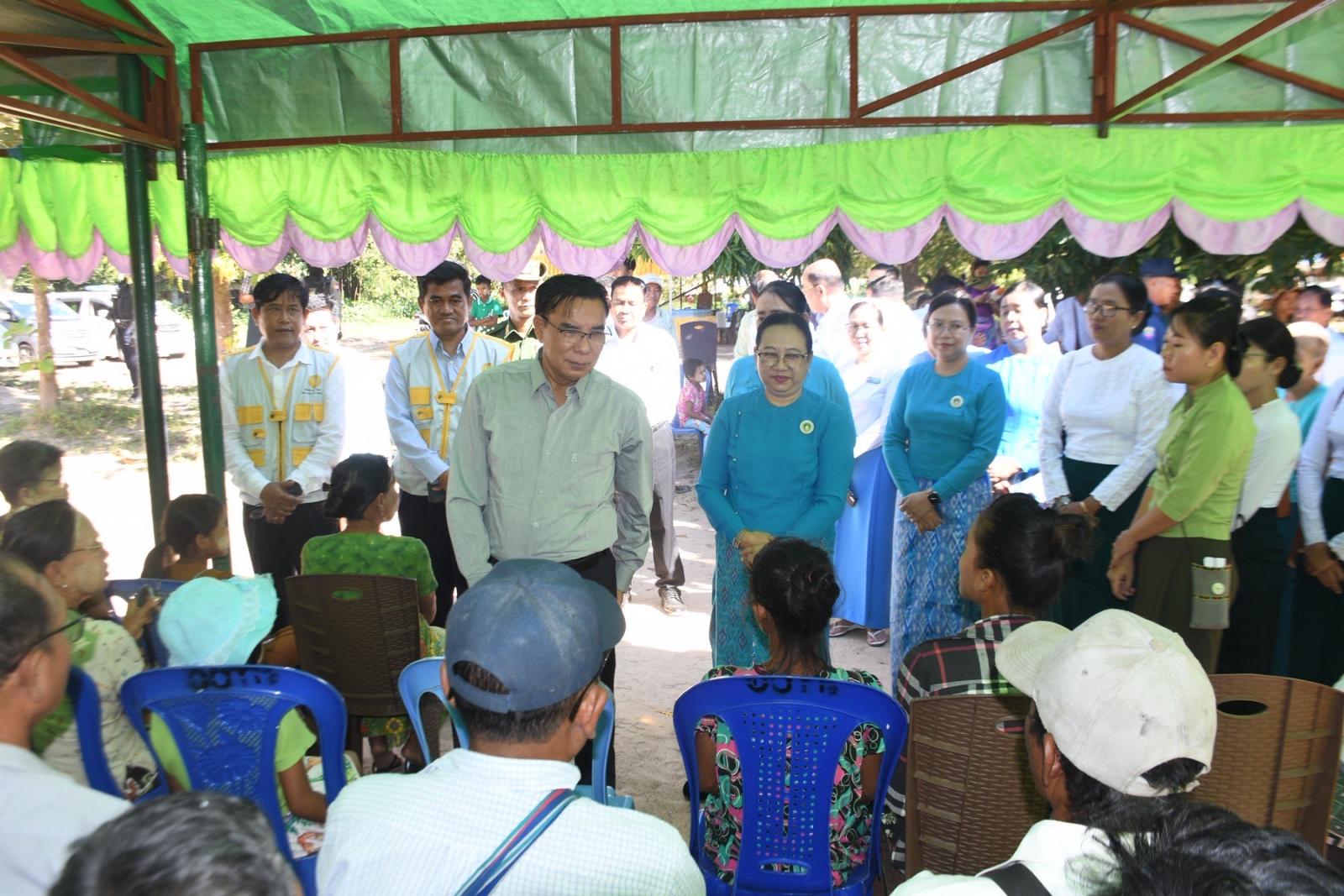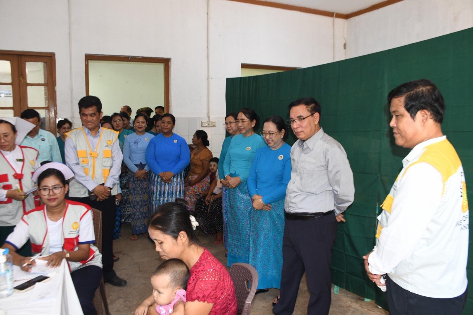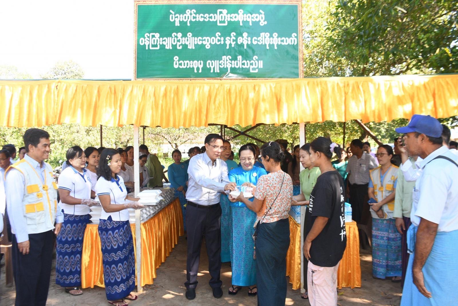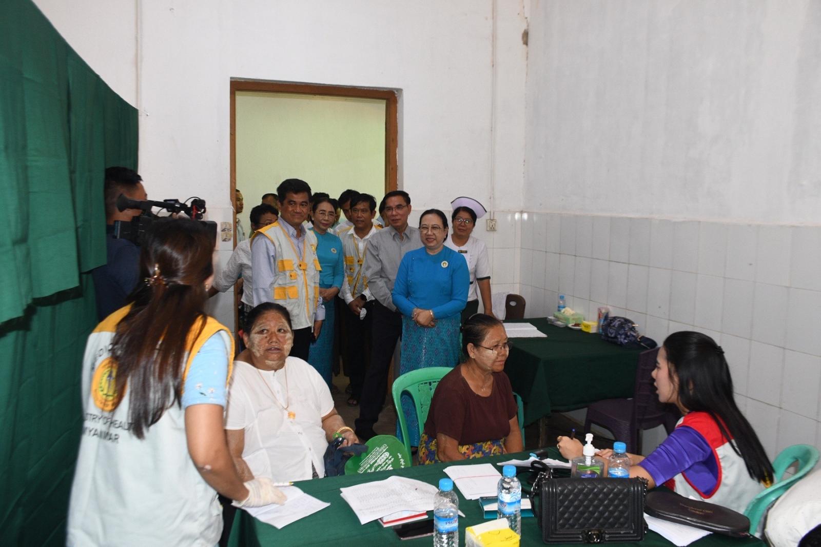 တိုင်းဒေသကြီးဝန်ကြီးချုပ်နှင့် ဇနီး၊ တိုင်းဒေသကြီးဝန်ကြီးများနှင့် ၎င်းတို့၏ ဇနီးများ၊ တိုင်းဒေသကြီးပြည်သူ့ကျန်းမာရေးနှင့်ကုသရေးဦးစီးဌာနမှူး ဒေါက်တာဇော်မင်းထွန်း၊ ပဲခူးမြို့ ခုတင်(၅၀၀)ဆံ့ အထွေထွေရောဂါကု ဆေးရုံအုပ်ကြီး ဒေါက်တာဇော်လွင်၊ ဒုတိယဆေးရုံအုပ်ကြီး ဒေါက်တာသန္တာဆွေ၊ ပဲခူးခရိုင်/မြို့နယ် စီမံခန့်ခွဲရေးနှင့်အုပ်ချုပ်ရေးအဖွဲ့ ဥက္ကဋ္ဌများနှင့်အတူ ဆေးကုသမှုလာရောက်ခံယူကြသည့် ပြည်သူများအား အားပေးစကားပြောကြားကာ အထူးကုဆရာဝန်ကြီးများက ဆေးကုသပေးနေမှုအား လိုက်လံကြည့်ရှုအားပေးပြီး လိုအပ်သည်များဖြည့်ဆည်းဆောင်ရွက်ပေးသည်။ ထို့နောက် တိုင်းဒေသကြီး ဝန်ကြီးချုပ်နှင့် ဇနီးတို့သည် ဆေးကုသမှုခံယူကြသူများအား နေ့လည်စာထမင်းဘူးနှင့်ရေသန့်တို့အား ပေးအပ်ခဲ့ပြီး အထူးကုဆရာဝန်ကြီးများ၊ ကျန်းမာရေးဝန်ထမ်းများနှင့် ကူညီဆောင်ရွက်ခဲ့ကြသည့် ပရဟိတအဖွဲ့များအား ဂုဏ်ပြုချီးမြှင့်ငွေများ ပေးအပ်သည်။