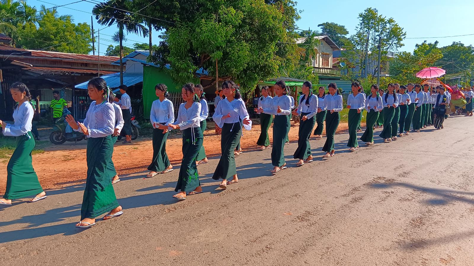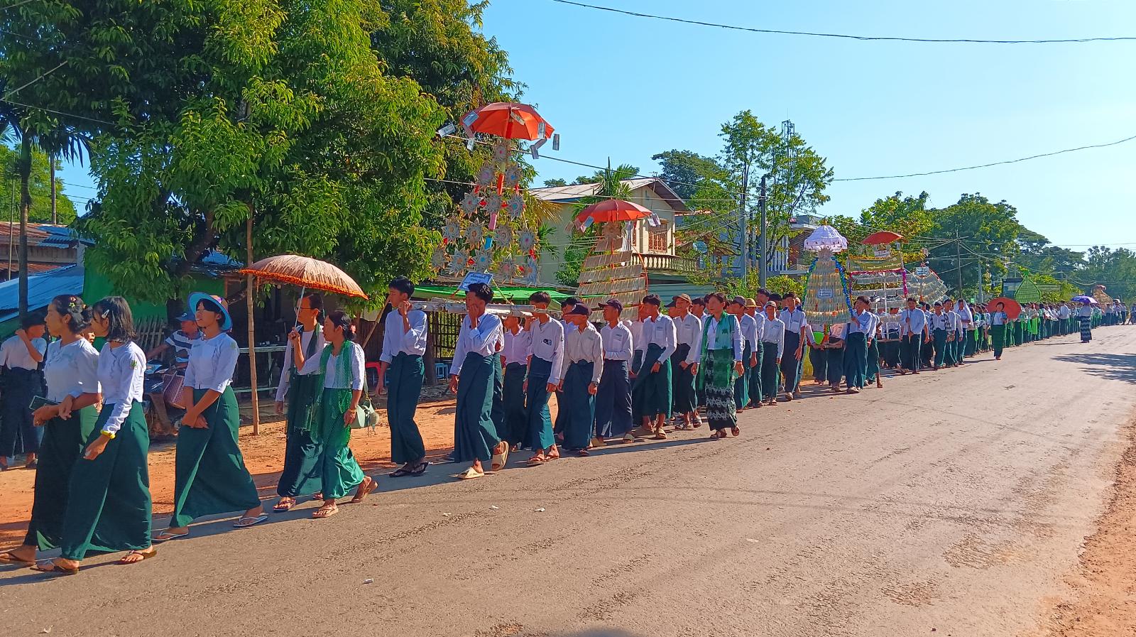 မဟာဘုံကထိန်အလှူတော်မင်္ဂလာလှည့်လည်ပွဲကျင်းပြုလုပ်ရာတွင် အ.ထ.က (မိုးညို) မှ ကျောင်းအုပ်ဆရာမကြီး ဒေါ်စန်းစန်းထွေးနှင့် ဆရာ/ ဆရာမများ၊ ကျောင်းအကျိုးတော်ဆောင်အဖွဲ့၊ ကျောင်းသား၊ ကျောင်းသူများ၊ အလှူရှင်များ စုပေါင်းလှူဒါန်းထားသည့် ငွေပဒေသာပင်များကို ကိုင်ဆောင်၍ အိုးစည်၊ ဒိုးပတ်အကအခုံများ၊ ကျောင်းသားကျောင်းသူလေးများ၏အကအလှများဖြင့် မြို့ပေါ် (၅) ရပ်ကွက်အတွင်းသို့ စည်ကားသိုက်မြိုက်စွာ လှည့်လည်ပူဇော်၍ ဇောတိကရပ်ကွက်ရှိ သဲနုံးကျောင်းတိုက်သို့ ပို့ဆောင်လှူဒါန်းခဲ့သည်။