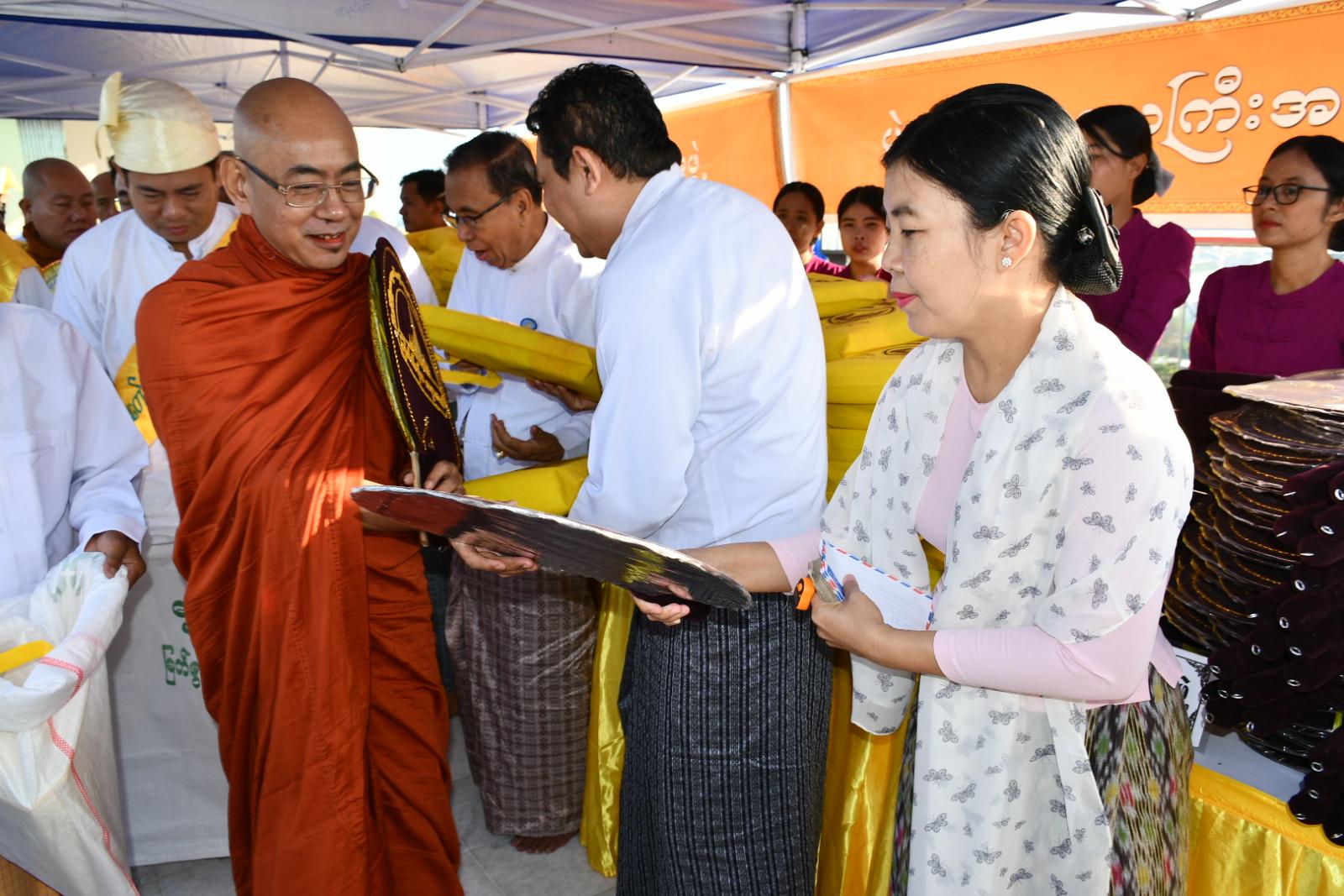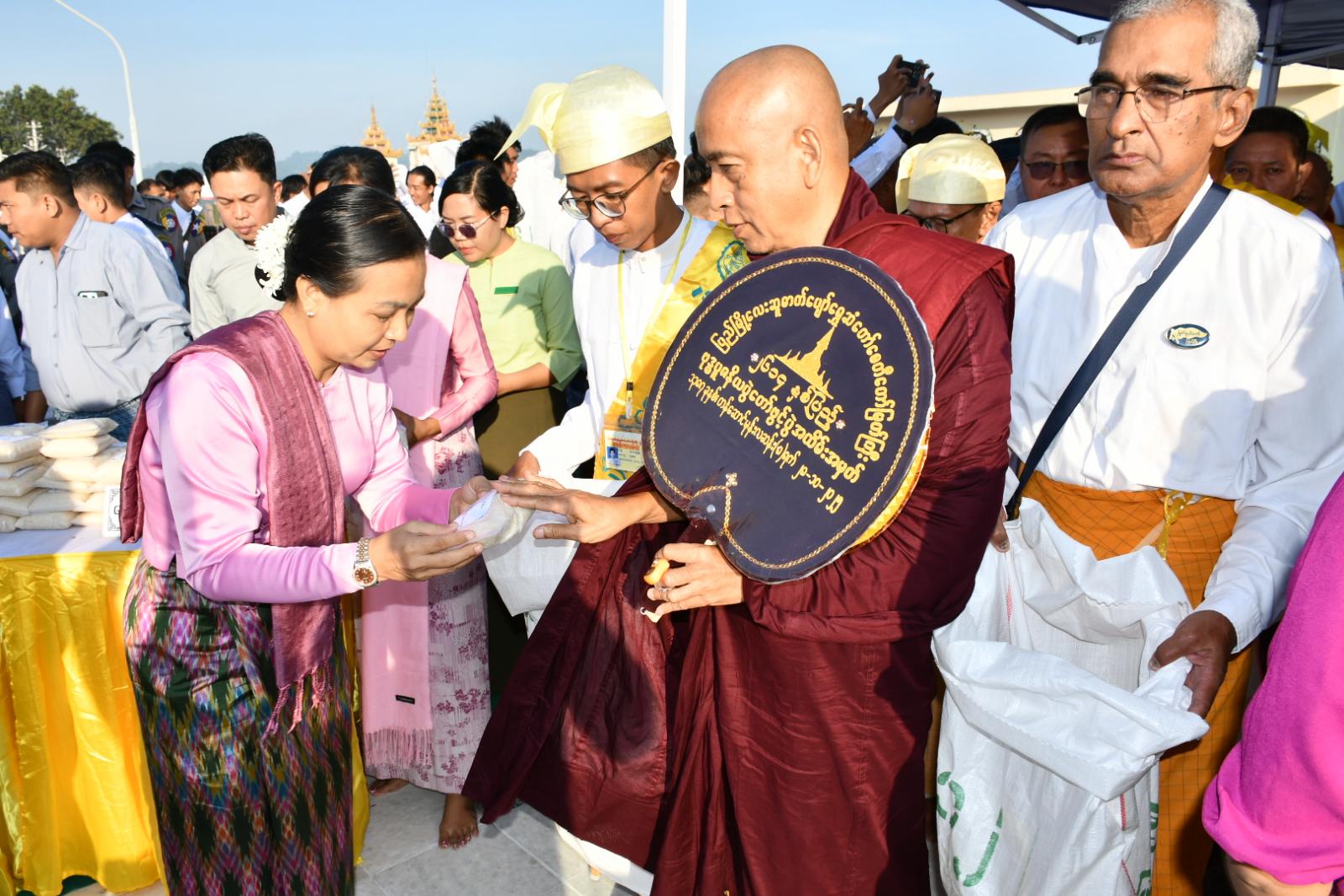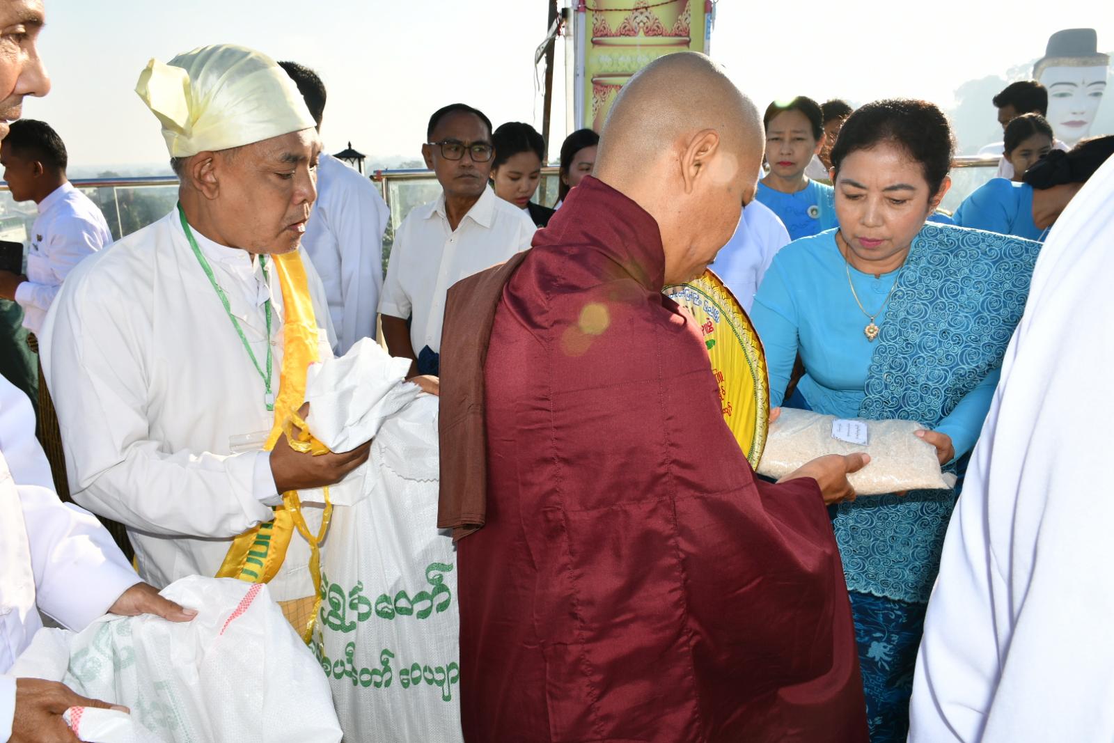 ဆက်လက်၍ ဆွမ်းဆန်စိမ်းလောင်းလှူပွဲကျင်းပရာတိုင်းဒေသကြီးအစိုးရအဖွဲ့ဝန်ကြီးများနှင့် ၎င်းတို့၏ဇနီးများ၊ တိုင်းဒေသကြီး/ ခရိုင်/ မြို့နယ်အဆင့် ဌာနဆိုင်ရာများနှင့် စေတနာရှင်/အလှူရှင် ပြည်သူများက ဩဝါဒါစရိဆရာတော်ကြီးများအမှူးပြုသော သံဃာတော် (၁၀၈) ပါးတို့ထံ ဆွမ်းဆန်တော်နှင့် လှူဖွယ်ဝတ္ထုပစ္စည်းများ ဆက်ကပ်လောင်းလှူပူဇော်ကြသည်။