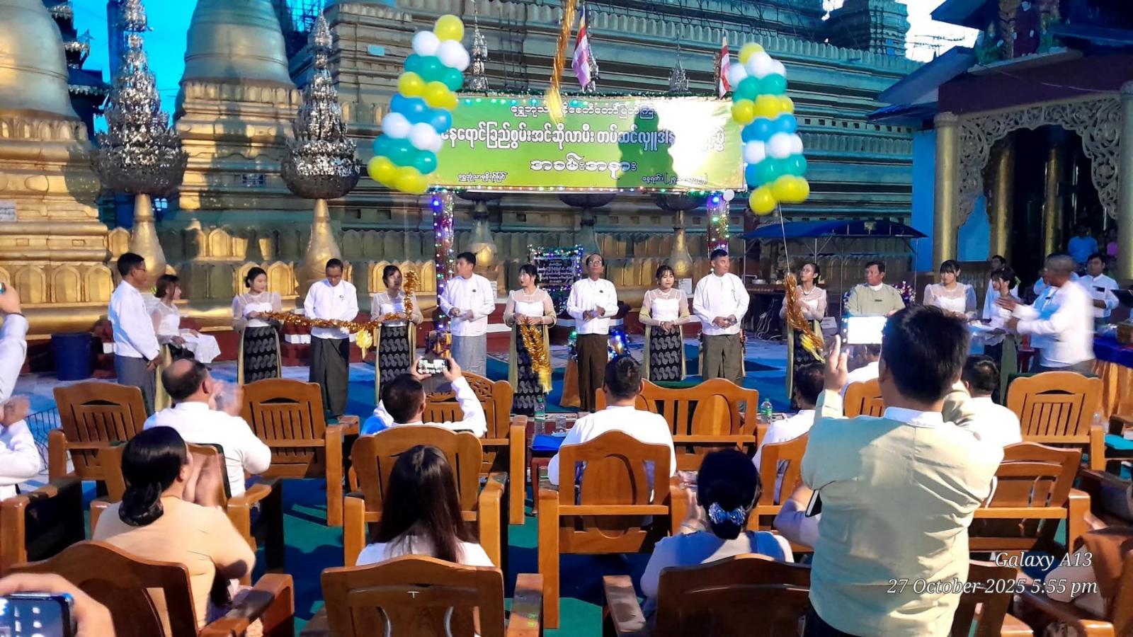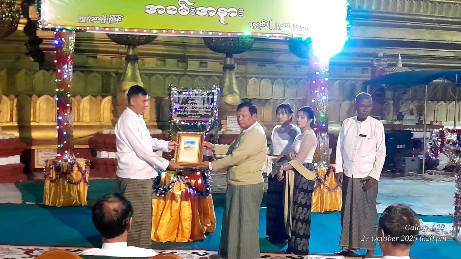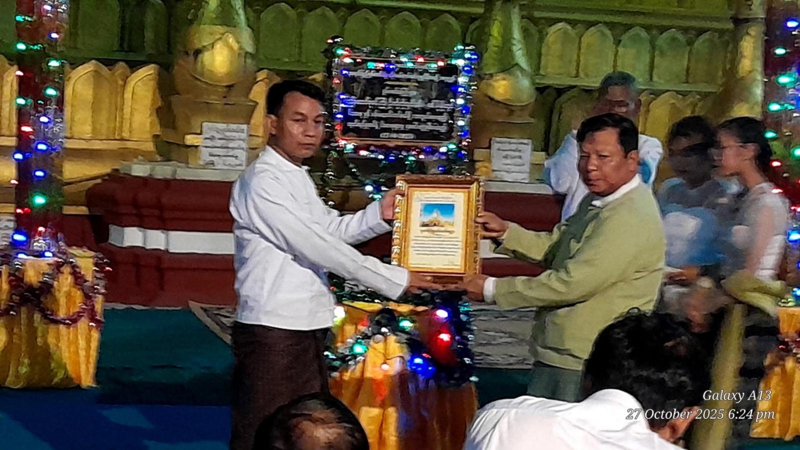 ဆက်လက်၍ ပန်းတောင်းတပ်နယ်မှူးဗိုလ်မှူးချုပ်ဇော်ထွန်းဦးမှ နေရောင်ခြည်စွမ်းအင်ဆိုလာ မီးတပ်ဆင်လှူဒါန်းမှုအကြောင်း ရှင်းလင်းပြောကြားခဲ့ပြီး ရွှေဘုံသာစေတီတော်မြတ်ကြီး ဂေါပကအဖွဲ့နာယကဦးတင်လှိုင်မှ ကျေးဇူးတင်စကားပြောကြားခဲ့သည်။ ၎င်းနောက် ဂုဏ်ပြု မှတ်တမ်းလွှာများကို ခရိုင်စီမံခန့်ခွဲရေးနှင့်အုပ်ချုပ်ရေးကော်မတီဥက္ကဋ္ဌ ဦးသိန်းအောင်မှ ပေးအပ်ရာ ပန်းတောင်းတပ်နယ်မှူး ဗိုလ်မှူးချုပ်ဇော်ထွန်းဦးနှင့် ကာကွယ်ပစ္စည်းထုတ်လုပ်မှု စက်ရုံမှစက်ရုံမှူးများက လက်ခံရယူခဲ့ကြောင်း သိရသည်။