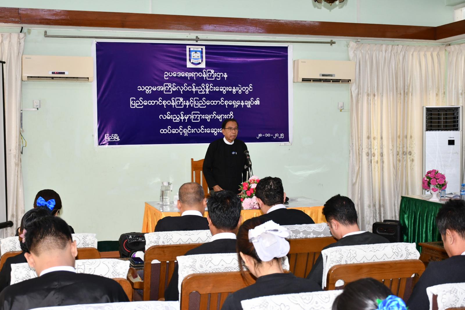 ထပ်ဆင့်ရှင်းလင်းဆွေးနွေးပွဲတွင် ပဲခူးတိုင်းဒေသကြီးဥပဒေချုပ် ဦးခင်မောင်တင့်က ဥပဒေရေးရာဝန်ကြီးဌာန သတ္တမအကြိမ်လုပ်ငန်းညှိနှိုင်းဆွေးနွေးပွဲတွင် ပြည်ထောင်စုဝန်ကြီးနှင့် ပြည်ထောင်စုရှေ့နေချုပ်မှာကြားသည့် အမျိုးသားကာကွယ်ရေးနှင့်လုံခြုံရေးကောင်စီ၏ ဦးတည်ချက်(၄)ရပ်ကို သိရှိလိုက်နာကြရန်၊ ဥပဒေရေးရာဝန်ကြီးဌာနကို အဘက်ဘက်မှ တိုးတက်အောင်ဆောင်ရွက်လျက်ရှိကြောင်း၊ တရားဥပဒေစိုးမိုးရေးနှင့် တရားမျှတမှုဆိုင်ရာ ပေါင်းစပ်ညှိနှိုင်းရေးအဖွဲ့ဖြင့် ပူးပေါင်းဆောင်ရွက်မှုကိုအလေးထားလုပ်ဆောင်ကြစေလိုကြောင်း၊ ဥပဒေအရာရှိများ အကျင့်သိက္ခာပြည့်စုံပြီး အများပြည်သူလေးစားအားကိုးရသူများဖြစ်စေရန် အရေးကြီးကြောင်း၊ နိုင်ငံတော်အကြီးအကဲ၏လမ်းညွှန်ချက်နှင့်အညီ ဥပဒေအသိပညာပြန့်ပွားရေးလုပ်ငန်းများ၊ ဟောပြောပွဲများကို အလေးထားလုပ်ဆောင်ရန်လိုအပ်ကြောင်း၊ ဥပဒေရုံးအဆင့်ဆင့်သည် သက်ဆိုင်ရာစီမံခန့်ခွဲရေးနှင့် အုပ်ချုပ်ရေးကောင်စီနှင့်ပေါင်းစပ်၍ ဒေသအေးချမ်းရေးနှင့်တရားဥပဒေစိုးမိုးရေးအတွက် ကူညီဆောင်ရွက်ပေးရမည်ဖြစ်ကြောင်း၊ ပါတီစုံဒီမိုကရေစီအထွေထွေရွေးကောက်ပွဲအောင်မြင်စွာကျင်းပနိုင်ရေးအတွက် မိမိတို့တာဝန်ယူရသည့်အခန်းကဏ္ဍမှ တာဝန်ကိုကျေပွန်စွာဆောင်ရွက်ပေးရန်လိုအပ်ကြောင်း ပြန်လည်ရှင်းလင်းဆွေးနွေးခဲ့ပြီး ညွှန်ကြားရေးမှူးချုပ်များ၏ လုပ်ငန်းဆိုင်ရာမှာကြားချက်များကိုလည်း ရှင်းလင်းဆွေးနွေးခဲ့ကြောင်း သိရသည်။