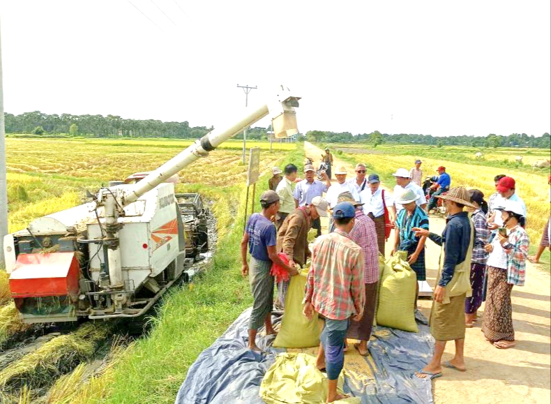 "ဦးလေးတို့ရွာမှာ မိုးစပါးစိုက်ခင်းတွေ ရိတ်သိမ်းနေပြီဖြစ်လို့ တောင်သူတွေက ဆောင်းသီးနှံ အချိန်မီ ပြန်လည်စိုက်ပျိုးနိုင်ရေးအတွက် အောက်တိုဘာလ တတိယပတ်ကစပြီးရိတ်သိမ်းခြွေ လှေ့စက်များနဲ့ ရိတ်သိမ်းခြွေလှေ့နေကြပါတယ်။ ဒီနှစ်ကမိုးစပါးသီးနှံပေါ်ချိန်မှာ ရတနာတိုး စပါးဈေးက တင်းတစ်ရာကို ငွေကျပ် ၁၀ သိန်းကျော်နဲ့၊ ဗီယက်နမ်စပါးမျိုးက တင်းတစ်ရာကို ၁၀ သိန်းဈေးပဲ အရောင်းအဝယ်ရှိတယ်။ ဒီနှစ်မှာမိုးစပါးစိုက်ခင်းတွေကအောင်မြင်ဖြစ်ထွန်းပြီး အထွက်နှုန်းလဲ ကောင်းကြတယ်။ တစ်ဧကကို ပျမ်းမျှ စပါးတင်းရေ ၉၀ ကျော်ထွက်ရှိတယ်။ ဦးလေးတို့ဒေသမှာ အဓိကစိုက်ပျိုးတဲ့ မိုးစပါးမျိုးတွေကတော့ရတနာတိုး၊ ဗီယက်နမ်၊မနောသုခ၊ မှော်ဘီ(၂)၊ရက်(၉၀)၊ ထိုင်းနှံကောက်စတဲ့ စပါးမျိုးတွေကို အများဆုံးစိုက်ပျိုးဖြစ်ပါတယ်"ဟု ဒေသခံတောင်သူတစ်ဦးက ပြောကြားသည်။