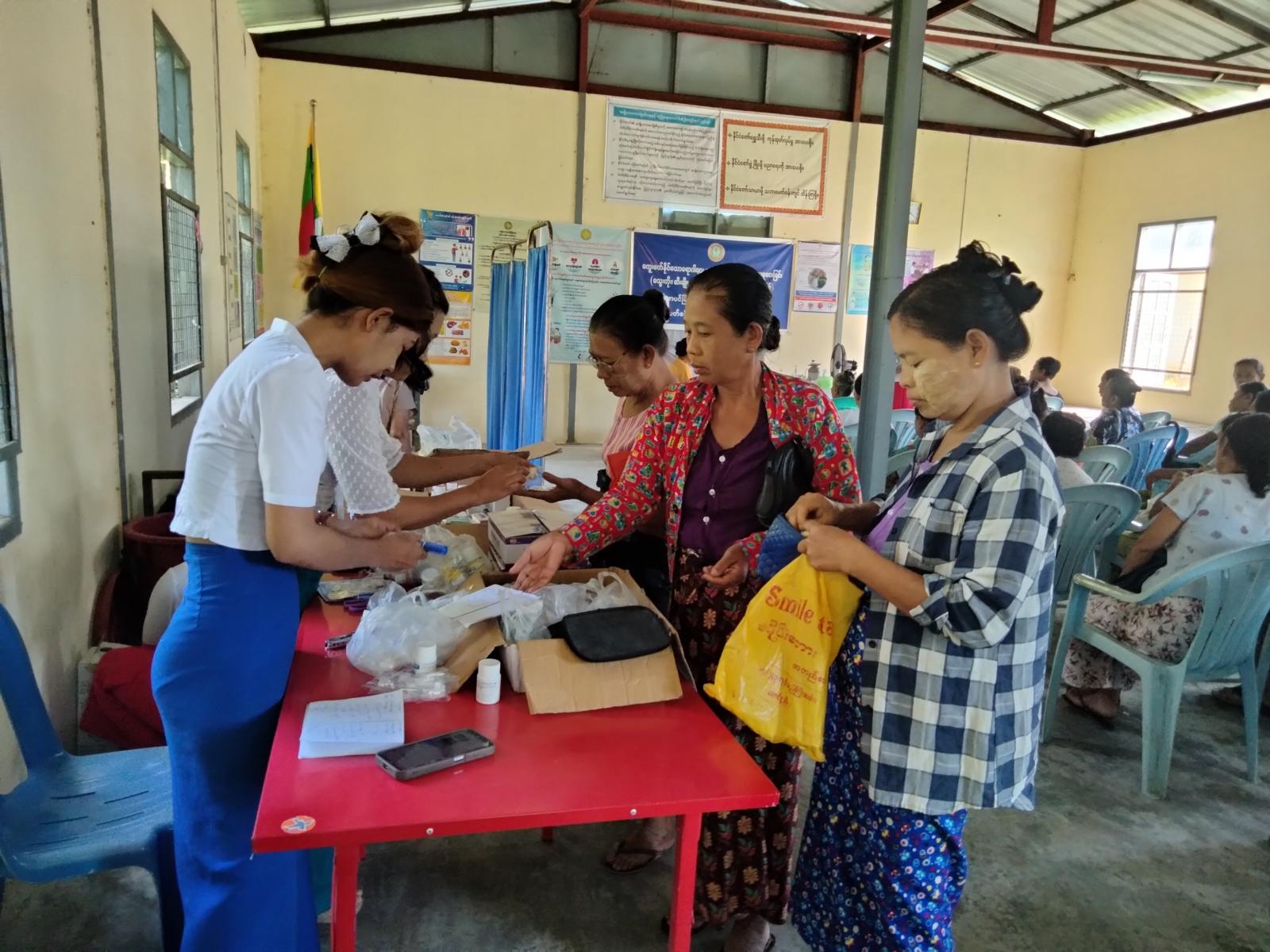 ထိုသို့ဆောင်ရွက်ပေးရာ မြို့နယ်နှင့်အနီး အနားရှိ အသက်(၄၀)နှင့်အထက် သက်ကြီးရွယ်အိုများ၊ သွေးတိုး၊ ဆီးချို၊ နှလုံးသွေးကြောကျဥ်း ရောဂါအခံရှိသူများ၊ နာတာရှည်ဝေဒနာရှင်များ စိတ်အေးချမ်းသာစွာ ကျန်းမာရေးစစ်ဆေးမှုများ ခံယူနိုင်ရန် စမ်းသပ်စက်ကိရိယာများဖြင့် စစ်ဆေးဆောင်ရွက်ပေးခြင်း၊ လိုအပ်သည့်ဆေးကုသမှုများခံယူနိုင်စေရန် ချိတ်ဆက်ဆောင်ရွက်ပေးခြင်း၊ ကျန်းမာရေးအသိပညာပေးခြင်းများကို မြို့နယ်ကျန်းမာရေးစစ်ဆေးရေးအဖွဲ့မှ စနစ်တကျဆောင်ရွက်ပေးခဲ့ကြောင်း သိရသည်။