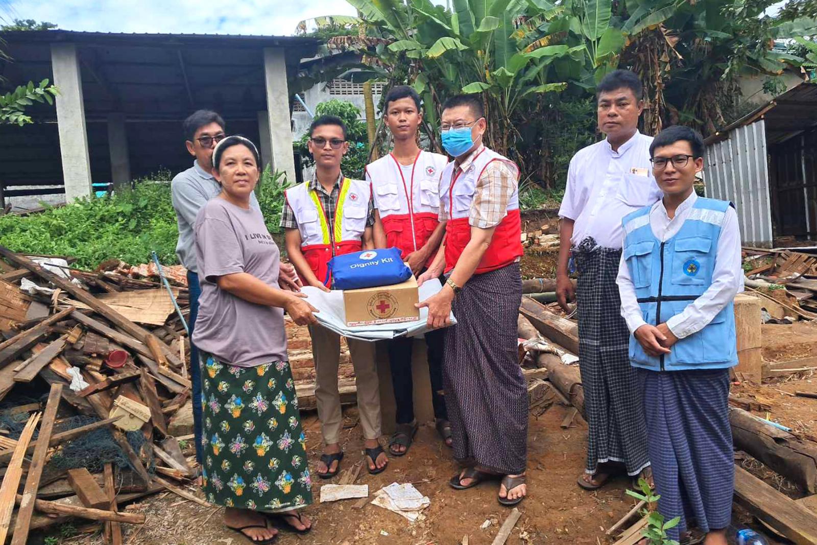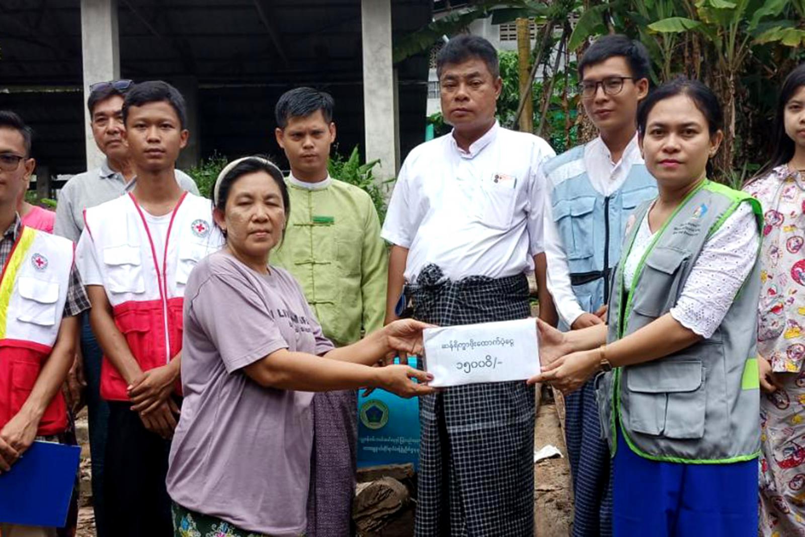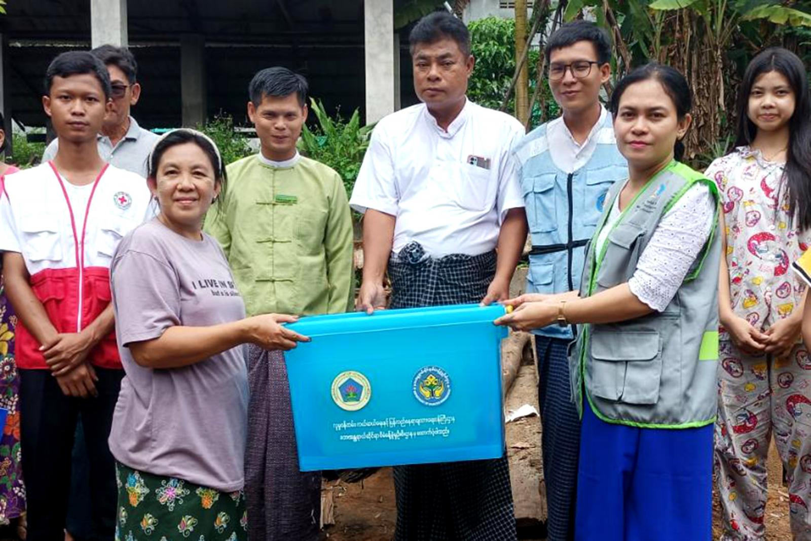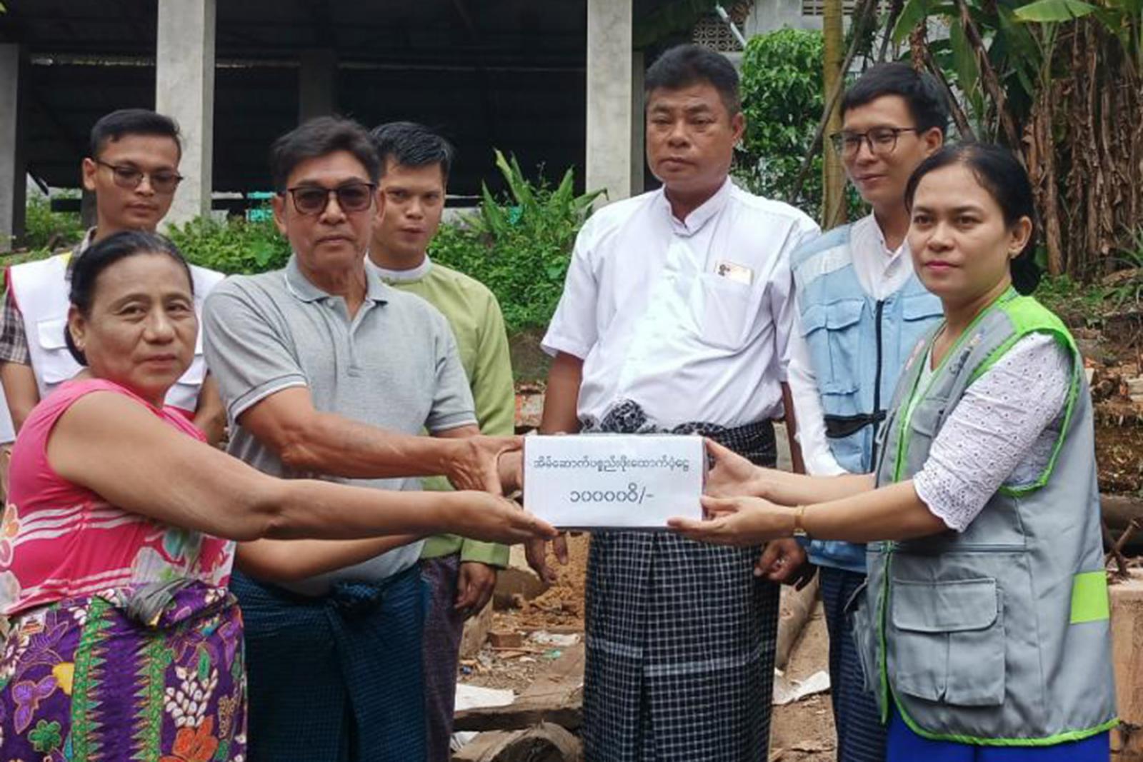 ဘေးသင့်အိမ်ထောင်စုအား ဘေးအန္တရာယ်ဆိုင်ရာစီမံခန့်ခွဲမှုဦးစီးဌာနမှ ထောက်ပံ့သည့် ကယ်ဆယ်ရေးပစ္စည်း(၁၆)မျိုး(၁)ပုံး၊ အိမ်ဆောက်ပစ္စည်းဖိုး (၁)သိန်းကျပ်၊ လူဦးရေ(၃)ဦးအတွက် ဆန်ရိက္ခာဖိုး (၁၅၀၀၀)ကျပ်ကို မြိတ်ခရိုင်ရုံးမှ ဦးစီးအရာရှိ ဒေါ်မြစောနွယ်နှင့် ဝန်ထမ်းများက ပေးအပ်ခဲ့ကြသည်။ ထို့အတူ မြန်မာနိုင်ငံကြက်ခြေနီအသင်းမှ ထောက်ပံ့သည့် တာပေါ်လင်(၂)ချပ်၊ တစ်ကိုယ်ရည်သုံးပစ္စည်း(၁)စုံနှင့် အမျိုးသမီးသုံး ပစ္စည်းများကို မြို့နယ်ကြက်ခြေနီအသင်းခွဲမှ တာဝန်ရှိသူများက ပေးအပ်သည်။