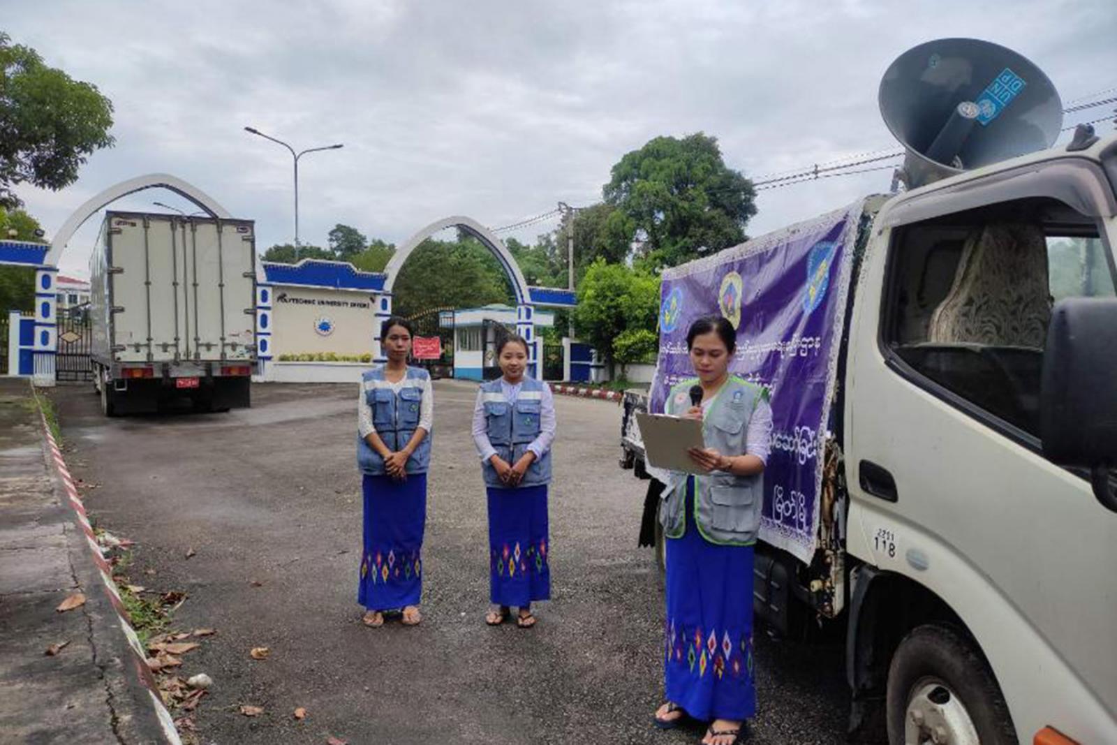 မြိတ်မြို့နယ်အတွင်းရှိ ပြည်သူများအား သဘာဝဘေးအန္တရာယ်များကြောင့် ထိခိုက်ဆုံးရှုံးမှုများ လျော့ နည်းစေရေးအတွက် ဘေးအန္တရာယ်ဆိုင်ရာစီမံခန့်ခွဲမှုဦးစီးဌာန မြိတ်ခရိုင်ရုံးမှ ဦးစီးအရာရှိ ဒေါ်မြစောနွယ်နှင့် ဝန်ထမ်းများသည် ယနေ့နံနက်ပိုင်းက စန္ဒဝတ်ကျေးရွာအုပ်စုနှင့် ကျောက်ဖျာကျေးရွာအုပ်စုများရှိ ကျေးရွာများသို့ ဆော်ဩရေးယာဉ်ဖြင့် ကွင်းဆင်း၍ သဘာဝဘေးအန္တရာယ် ကြိုတင်ကာကွယ်ရေး အသိပညာပေး လှည့်လည်နှိုးဆော်ခဲ့ကြပြီး ပညာပေးလက်ကမ်းစာစောင်များ ဝေငှပေးခဲ့ကြကြောင်း သိရသည်။