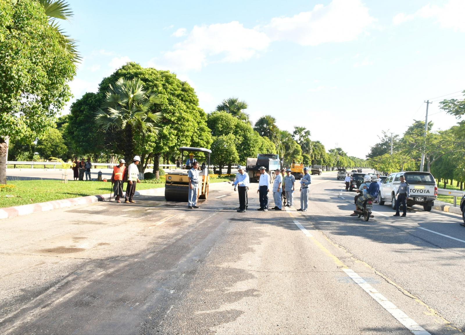 ယင်းနောက် နေပြည်တော်ကောင်စီဥက္ကဋ္ဌ ဦးသန်းထွန်းဦးသည် ဇမ္ဗူသီရိမြို့နယ်၊ ဒက္ခိဏသီရိမြို့နယ် လယ်ဝေးမြို့နယ်များအတွင်း မန္တလေးမြေငလျင်လှုတ်ခတ်မှုကြောင့် ပျက်စီးခဲ့သည့် လမ်းပိုင်းများအား နိုင်လွန်ကတ္တရာခင်းကျင်းနေမှု၊ Total station ကိရိယာဖြင့် တိုင်းတာနေမှုများ၊ လမ်းဘေးပလက်ဖောင်းများနှင့် ကပ်တုံးများ ပြန်လည်ပြုပြင်နေမှု အခြေအနေများနှင့် လမ်းဘေးမြေယာရှုခင်းများသန့်ရှင်းသာယာရေးလုပ်ငန်း ဆောင်ရွက်နေမှုများကြည့်ရှုစစ်ဆေးပြီး တာဝန်ရှိသူများအားလုပ်ငန်းများ အပိုင်းလိုက် အမြန်ပြီးစီးအောင်ဆောင်ရွက်ရေး၊ လူအင်အား၊ စက်ယန္တရားအင်အား တိုးမြှင့်ဆောင်ရွက်ရေး၊ လုပ်ငန်းအဆင့်ဆင့်ကို သတ်မှတ်အချိန်အတွင်း ပြီးစီးစေရန်နှင့် အရည်အသွေးစံချိန်၊ စံညွှန်းများ ကိုက်ညီမှုရှိစေရန် စစ်ဆေးဆောင်ရွက်ရေး၊ ရေရှည်တည်တံ့မှုရှိစေရန် ပြုပြင်ထိန်းသိမ်းရေး၊ အရည်အသွေး ပြည့်မီသည့်ပစ္စည်းများကိုသာ လုပ်ငန်းခွင်တွင်အသုံးပြုရေး၊ သဘာဝဘေးအန္တရာယ်များ ခံနိုင်ရည်ရှိအောင် သတ်မှတ်စံချိန်၊ စံညွှန်းနှင့်အညီ ဆောင်ရွက်ရေးတို့ကို မှာကြားခဲ့ကြောင်း သိရသည်။