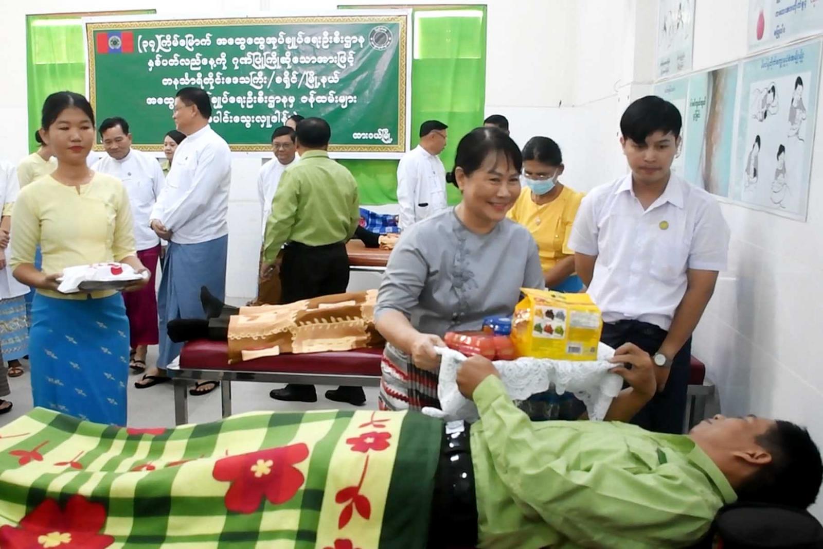 စုပေါင်းသွေးလှူဒါန်းပွဲသို့ တိုင်းဒေသကြီးဝန်ကြီးချုပ်ဦးမြတ်ကို၊ တိုင်းဒေသကြီးတရားလွှတ်တော် တရားသူကြီးချုပ် ဒေါ်ပိုက်ပိုက်အေး၊ တိုင်းဒေသကြီးဝန်ကြီးများတို့က စုပေါင်းသွေးလှူဒါန်းနေမှုအား ကြည့်ရှုအားပေးပြီး သွေးလှူဒါန်းကြသူများအား အာဟာရဖြည့်စားသောက်ဖွယ်ရာနှင့် လက်ဆောင်ပစ္စည်းများပေးအပ်သည်။