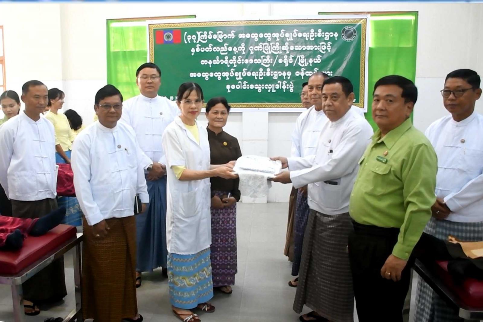 ထို့နောက် တိုင်းဒေသကြီးဝန်ကြီးချုပ်ဦးမြတ်ကိုက ပြည်သူ့ဆေးရုံကြီး၌ ဘက်စုံအသုံးပြုနိုင်ရန်အတွက် လှူဒါန်းငွေ ကျပ်(၁၀) သိန်းအား ပေးအပ်ပြီးမြန်မာနိုင်ငံငါးလုပ်ငန်းအသင်းအဖွဲ့ချုပ်ဥက္ကဋ္ဌ ဦးအောင်ဝင်းက သွေးလှူဒါန်းကြသော အထွေထွေအုပ်ချုပ်ရေးဦးစီးဌာနဝန်ထမ်းများအတွက် လှူဒါန်းငွေကျပ်(၁၀) သိန်းအားပေးအပ်သည်။