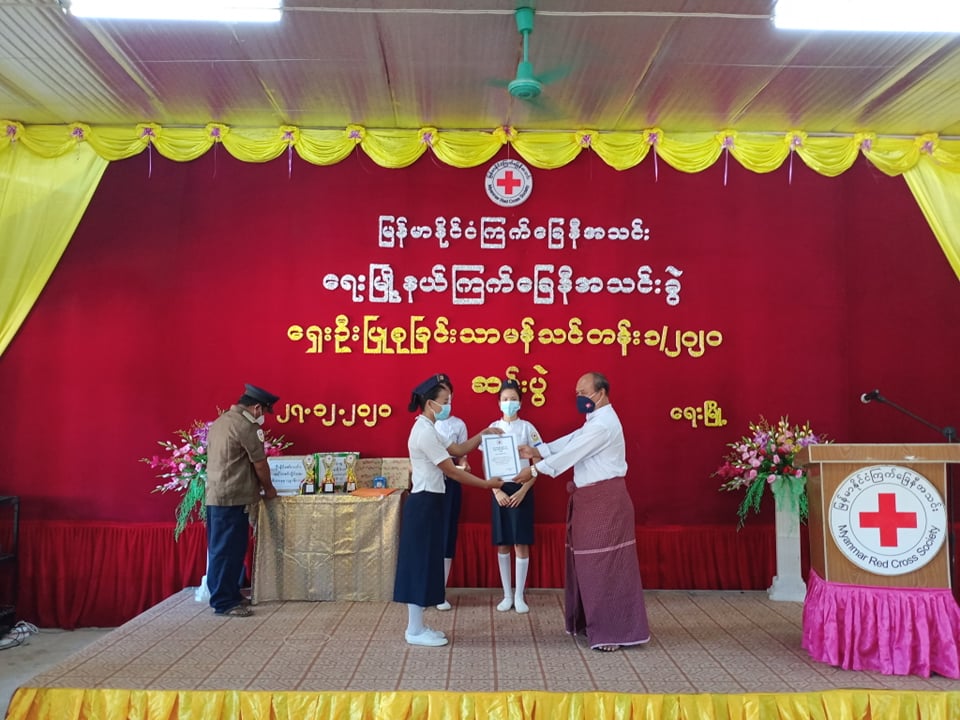 မွန်ပြည်နယ်၊ ရေးမြို့နယ်တွင် မြို့နယ်ကြက်ခြေနီအသင်းခွဲ၌ ကိုဗစ်-၁၉ ရောဂါ ကာကွယ် ထိန်းချုပ်၊ ကုသရေးလုပ်ငန်းများ၊ ရှေးဦးသူနာပြုစုခြင်းလုပ်ငန်းများ၊ သဘာဝဘေးဆိုင်ရာ လုပ်ငန်းများနှင့် အရေးပေါ် ကယ်ဆယ်ရေးလုပ်ငန်းများတွင် ပါဝင် ကူညီ လုပ်ဆောင်ကြသည့် မြို့နယ် ကြက်ခြေနီသူနာပြုတပ်ဖွဲ့ဝင်များ တက်ရောက်ခဲ့သည့် ရှေးဦးပြုစုခြင်း သာမန်သင်တန်း အမှတ်စဉ် (၁/၂၀၂၀)သင်တန်းဆင်းပွဲကို ယနေ့ နံနက်(၉)နာရီခွဲက အဆိုပါ မြို့နယ်ကြက်ခြေနီ အသင်းခွဲရုံး၌ ကျင်းပပြုလုပ်ကြောင်း သိရသည်။