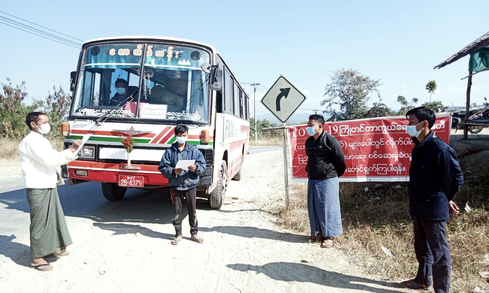 ကိုဗစ်- ၁၉ ရောဂါ ကာကွယ်ထိန်းချုပ်ရေးအတွက် မကွေးတိုင်ဒေသကြီး ဂန့်ဂေါခရိုင် ကျောက်ထုမြို့အဝင် ဂိတ်နေရာတွင် ယာဉ်မောင်းသူများနှင့် ခရီးသွားပြည်သူများ ပါးစပ်နှင့် နှာခေါင်းစည်း mask များ တပ်ဆင်အသုံးပြုကြရန်နှင့် ခရီးသွား လုံခြုံမှု အတွက် ထောက်ခံချက်များ ပါရှိခြင်းရှိ/မရှိ ကို ယနေ့ နံနက်(၈)နာရီက တာဝန်ရှိသူများ စောင့်ကြပ်ဆောင်ရွက်ကြသည်။
