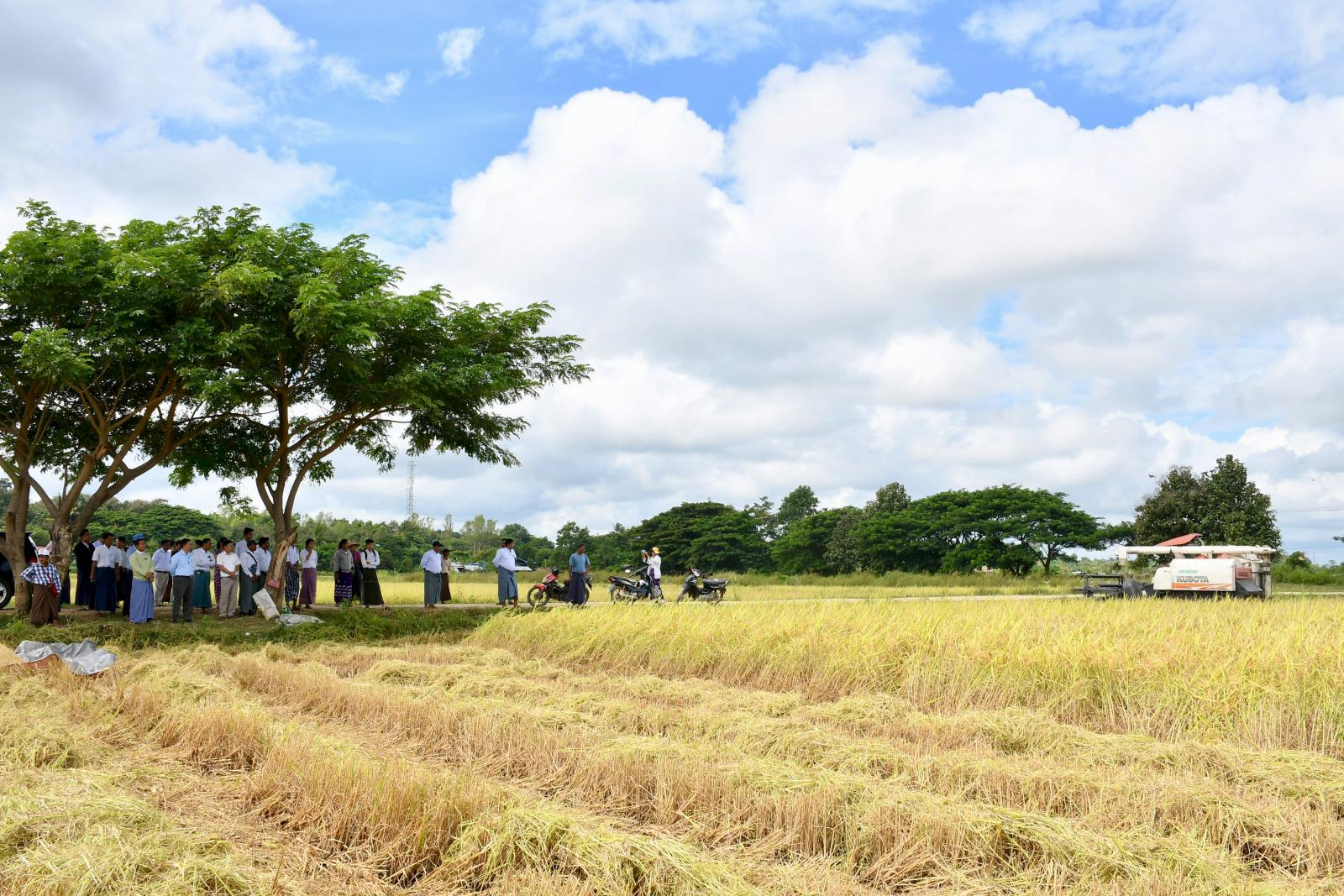 ဆက်လက်၍ နေပြည်တော်ကောင်စီဝင် ဦးဇေယျာလင်းသည် တောင်ညိုကျေးရွာအုပ်စု၊ မရမ်းခုံကျေးရွာ ကွင်းအမှတ်(၁၈၉၃)၊ တောင်သူ ဦးမြင့်သိန်း၏ လယ်မြေ ရှစ်ဧကတွင် စိုက်ပျိုးထားသည့် မိုးစပါးစံပြကွက် ဆင်းသုခစပါးမျိုး ရိတ်သိမ်းနေမှုကို ကြည့်ရှုအားပေးခဲ့ပြီး တစ်ဧက အထွက်နှုန်း အစို ၁၂၀တင်းနှင့် အခြောက် ၁၁၂ တင်းထွက်ရှိခဲ့ကြောင်း သိရသည်။