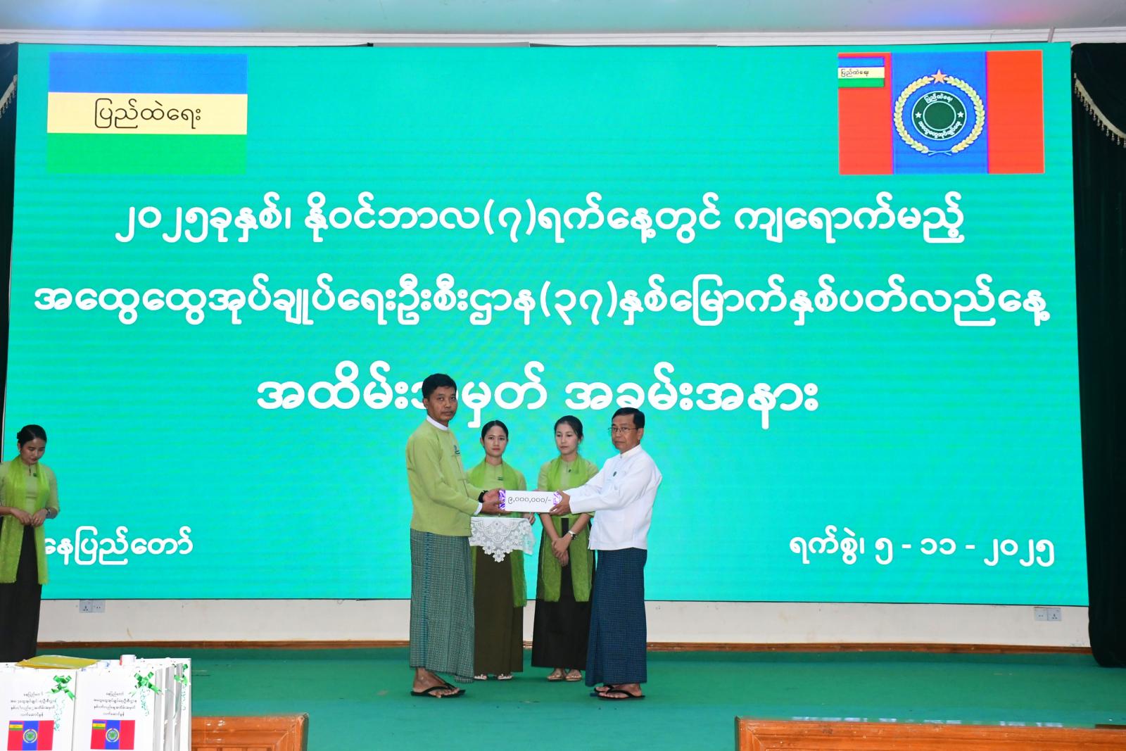 ထို့နောက် နေပြည်တော်ကောင်စီဥက္ကဋ္ဌ ဦးသန်းထွန်းဦးက နိုင်ငံဝန်ထမ်းတက္ကသိုလ် (အထက်မြန်မာပြည်)၌ ဖွင့်လှစ်သည့် အရာထမ်းငယ်အခြေခံသင်တန်းတွင် စံပြဆုရရှိခဲ့သည့် ဝန်ထမ်းအားဂုဏ်ပြုဆု၊ ဝန်ထမ်းများအတွက်ဝတ်စုံများနှင့် ဂုဏ်ပြုဆုငွေများကို အသီးသီးပေးအပ်ရာ တာဝန်ရှိသူများက လက်ခံရယူခဲ့သည်။