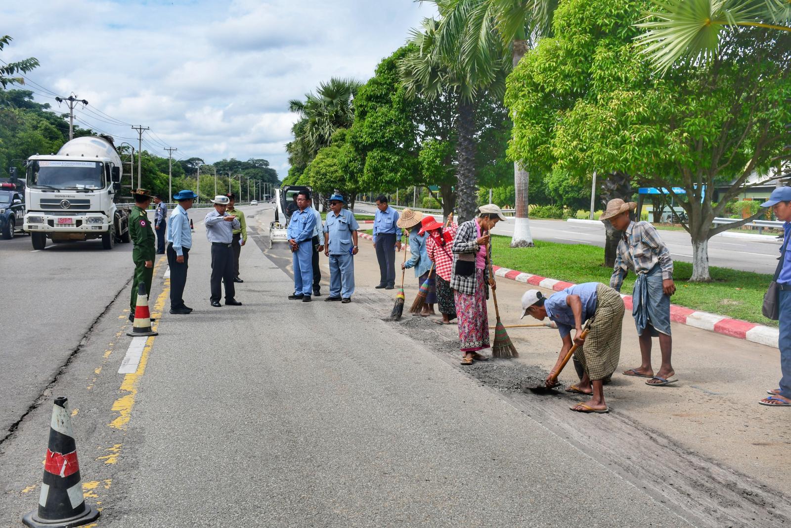 ထို့နောက် နေပြည်တော်ကောင်စီဥက္ကဋ္ဌသည် နေပြည်တော်ကောင်စီဝင်များ၊ တာဝန်ရှိသူများနှင့်အတူ ပုဗ္ဗသီရိမြို့နယ်အတွင်းရှိ လမ်းပိုင်းများ နိုင်လွန်ကတ္တရာလမ်း (AC) ခင်းကျင်းနေမှုနှင့် လမ်းဘေးဝဲယာတစ်လျှောက် သန့်ရှင်းသာယာလှပစေရေးနှင့် ရေစီးရေလာကောင်းမွန်စေရေး ဆောင်ရွက်နေမှုကိုလည်းကောင်း၊ လယ်ဝေးမြို့နယ်အတွင်း ငလျင်ဘေးကြောင့် ထိခိုက်ပျက်စီးခဲ့သည့် လမ်းပိုင်းများပြန်လည်ပြုပြင်နေမှု၊ နိုင်လွန်ကတ္တရာလမ်း(AC) ခင်းကျင်းနေမှုနှင့် လမ်းလယ်ကျွန်းများ ပြန်လည်ပြုပြင်နေမှုများကို ကြည့်ရှုစစ်ဆေးခဲ့ပြီး တာဝန်ရှိသူများအား လုပ်ငန်းများအပိုင်းလိုက် အမြန်ပြီးစီးအောင်ဆောင်ရွက်ရေး၊ လူအင်အား၊ စက်ယန္တရားအင်အား တိုးမြှင့်ဆောင်ရွက်ရေး၊ လုပ်ငန်းအဆင့်ဆင့်ကို သတ်မှတ်အချိန်အတွင်း ပြီးစီးစေရန်နှင့် အရည်အသွေးစံချိန်၊ စံညွှန်းများကိုက်ညီမှုရှိစေရန် စစ်ဆေးဆောင်ရွက်ရေး၊ ရေရှည်တည်တံ့မှုရှိစေရန် ပြုပြင်ထိန်းသိမ်းရေး၊ အရည်အသွေးပြည့်မီသည့်ပစ္စည်းများကိုသာ လုပ်ငန်းခွင်တွင်အသုံးပြုရေး၊ ငလျင်ဒဏ်အပြင် သဘာဝဘေးအန္တရာယ်များ ခံနိုင်ရည်ရှိအောင် သတ်မှတ်စံချိန်၊ စံညွှန်းနှင့်အညီဆောင်ရွက်ရေးတို့ကို မှာကြားခဲ့သည်။