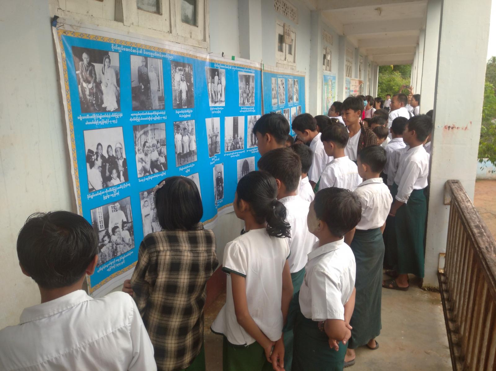 ထို့နောက် ပြန်ကြားရေးနှင့်ပြည်သူ့ဆက်ဆံရေးဦးစီးဌာနမှ ဝန်ထမ်းများက ကျောင်းသား၊ ကျောင်းသူများအား အသိပညာဗဟုသုတ ရရှိစေရေးအတွက် လွတ်လပ်ရေးဖခင်ကြီး ဗိုလ်ချုပ်အောင်ဆန်းအကြောင်းသိကောင်းစရာ အသိပညာပေးနံရံကပ်စာစောင်များ၊ သုတ၊ ရသစာအုပ်၊ စာစောင်များအား ပြသခဲ့ရာ ကျောင်းသား၊ ကျောင်းသူများက စိတ်ပါဝင်စားစွာ လေ့လာဖတ်ရှုကြကြောင်း သိရသည်။