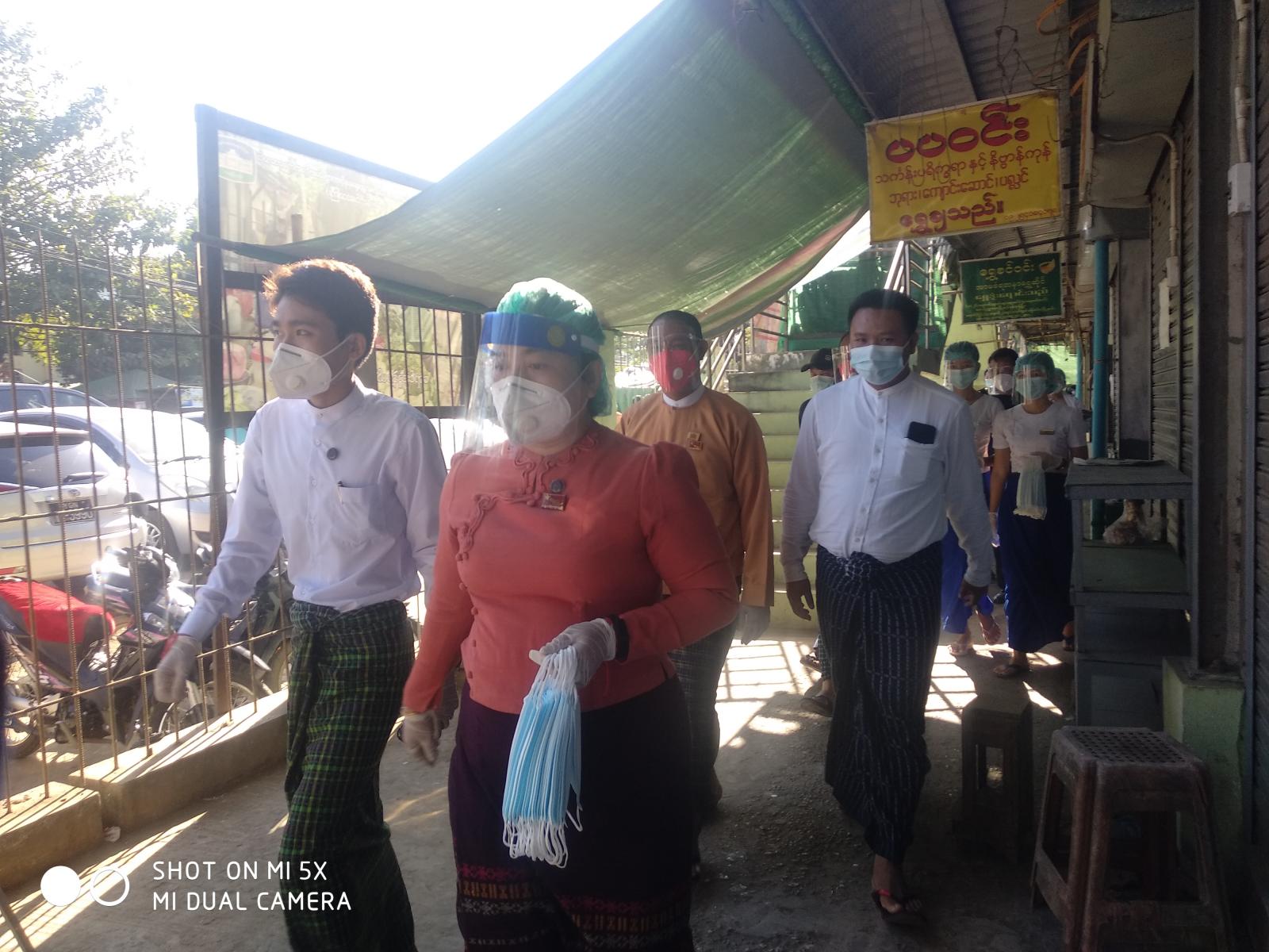 ထိုသို့ဆောင်ရွက်ရာတွင် အဆိုပါ စျေးအတွင်းရှိ လမ်းများနှင့် စျေးအတွင်း၌ Mask တပ်ဆင်လာခြင်း မရှိသူများ၊ Mask များအား ရောဂါပိုး အဓိကကာကွယ်ရမည့် နေရာတွင် တပ်ဆင်ခြင်းမရှိပဲ မေးစေ့တွင် ချိတ်သူများအား နောင်တွင် ပြင်ပထွက်ခွာချိန်တိုင်း Mask တပ်ဆင်ရန်နှင့် ကျန်းမာရေးနှင့်အားကစား ဝန်ကြီးဌာန၏ လမ်းညွှန်ချက်များနှင့်အညီ Mask ကို စနစ်တကျ တပ်ဆင်ရေးအတွက် အသိပညာပေး ပြောကြား ပြီး ပြည်သူများအား နှာခေါင်းစည်း (Mask) များ၊ Face shield များ၊ လက်သန့်ဆေးရည်များ အခမဲ့ဖြန့်ဝေပေးခဲ့ကြောင်းနှင့် Mask Campaign ဆောင်ရွက်ရာသို့ လူဝင်မှုကြီးကြပ်ရေးနှင့် လူ့စွမ်းအားအရင်းအမြစ်ဝန်ကြီး ဒေါ်မိုးမိုးစုကြည်၊ ဒဂုံမြို့သစ်(အရှေ့ပိုင်း) မြို့နယ် ပြည်သူ့ လွှတ်တော် ကိုယ်စားလှယ် ဦးနေကျော်၊ အမှတ်(၂) တိုင်းဒေသကြီး လွှတ်တော်ကိုယ်စားလှယ် ဦးကျော်ကျော်မောင်၊ မြို့နယ်အုပ်ချုပ်ရေးမှူး ဦးဇော်မင်းထိုက်၊ စည်ပင်သာယာအုပ်ချုပ်ရေးမှူး ဦးကျော်မျိုးနိုင်၊ ပြည်သူ့ကျန်းမာရေးဦးစီးဌာနမှူး ဒေါက်တာလဲ့လဲ့ဝင်း၊ စည်ပင် သာယာ ကော်မတီဝင်များနှင့် ဌာနဆိုင်ရာ တာဝန်ရှိသူများ ၊ စျေးကော်မတီဝင်များနှင့် ရပ်ကွက်အုပ်ချုပ်ရေး အဖွဲ့များ လိုက်ပါ ဆောင်ရွက် ခဲ့ကြောင်း သိရသည်။