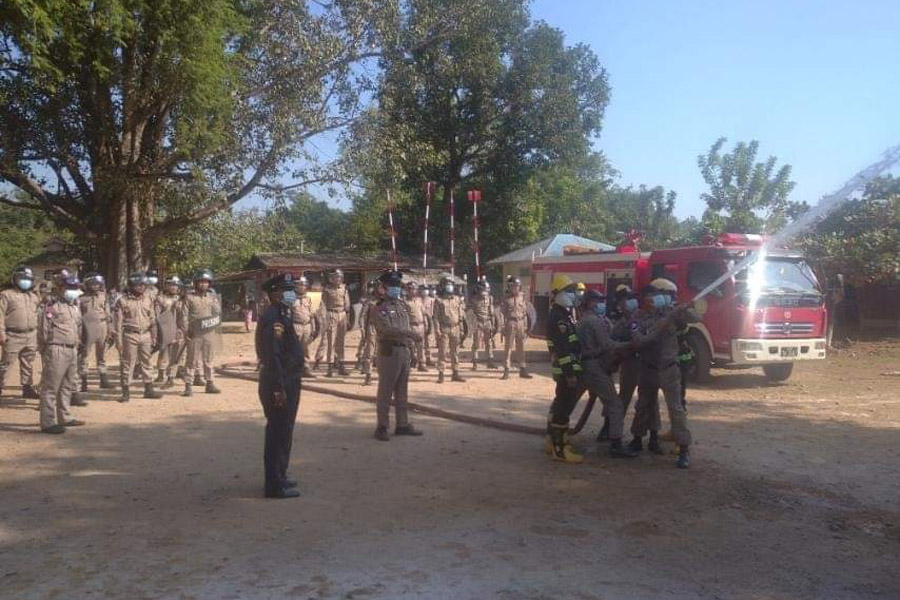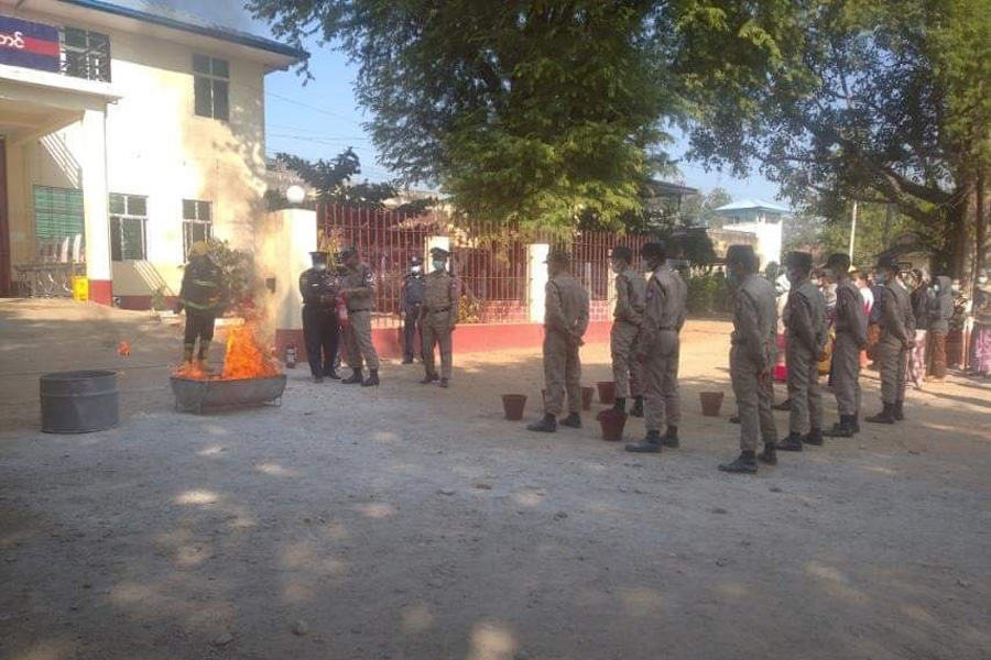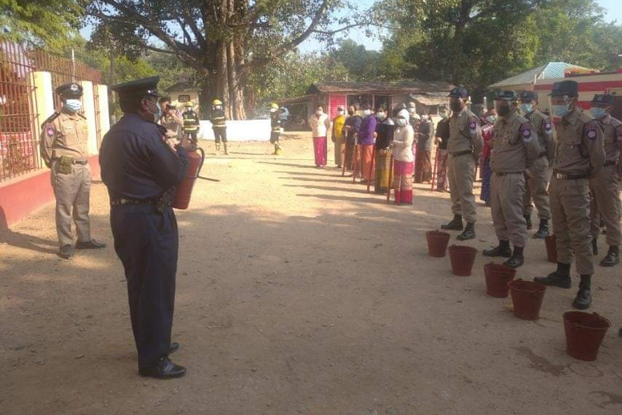 ထို့နောက် မြို့နယ်မီးသတ်တပ်ဖွဲ့ဦးစီးမှူးနှင့် မီးသတ်တပ်ဖွဲ့ဝင်များက အကျဉ်းဦးစီးဌာနမှ ဝန်ထမ်းများနှင့် ဝန်ထမ်း မိသားစုဝင် များအား မီးသတ်ဆေးဘူး၊ မီးသတ်ပိုက်ဖြင့် လက်တွေ့ မီးငြှိမ်းသတ်သရုပ်ပြသ၍ လက်တွေ့ ဆောင်ရွက်ခြင်းများကို ပြုလုပ်စေခဲ့ကြောင်း သိရသည်။
