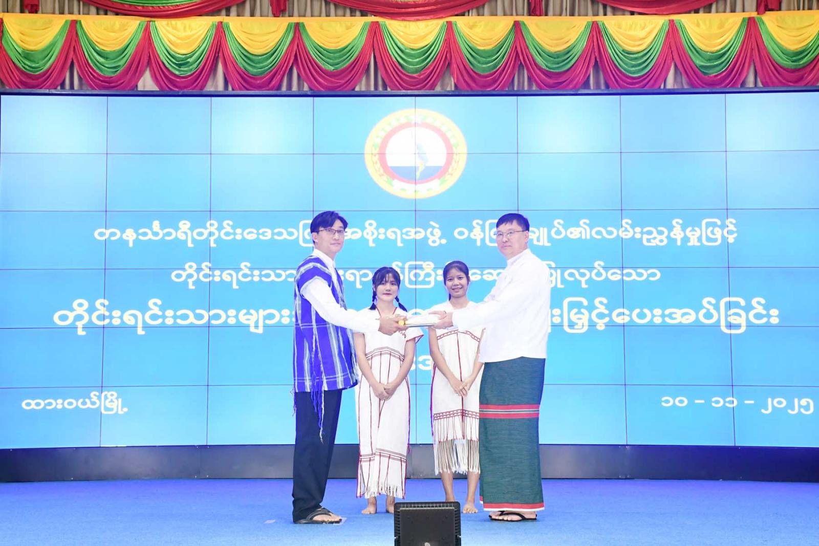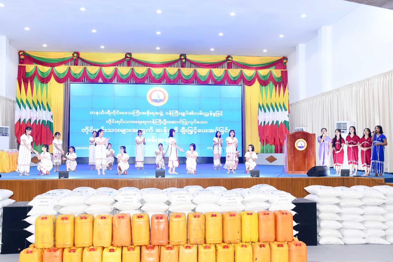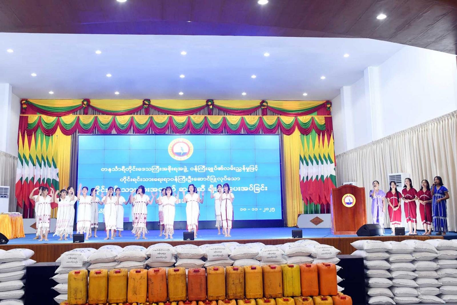 တနင်္သာရီတိုင်းဒေသကြီးအစိုးရအဖွဲ့ဝန်ကြီးချုပ်၏ လမ်းညွှန်မှုဖြင့် တိုင်းရင်းသားရေးရာဝန်ကြီး ဦးဆောင်ပြုလုပ်သော တိုင်းရင်းသားများအတွက် ဆန်၊ ဆီများပေးအပ်ပွဲအခမ်းအနားကို ယမန်နေ့နံနက် ၉ နာရီက ထားဝယ်မြို့၊ မြိို့တော်ခန်းမ၌ ကျင်းပရာ ဦးစွာ တိုင်းရင်းသားများက ကောင်းချီးကျေးဇူးတော်ကို ချီးမွမ်းခြင်း တေးသရုပ်ဖော်အစီအစဉ်ဖြင့် အခမ်းအနားအား ဖွင့်လှစ်သည်။