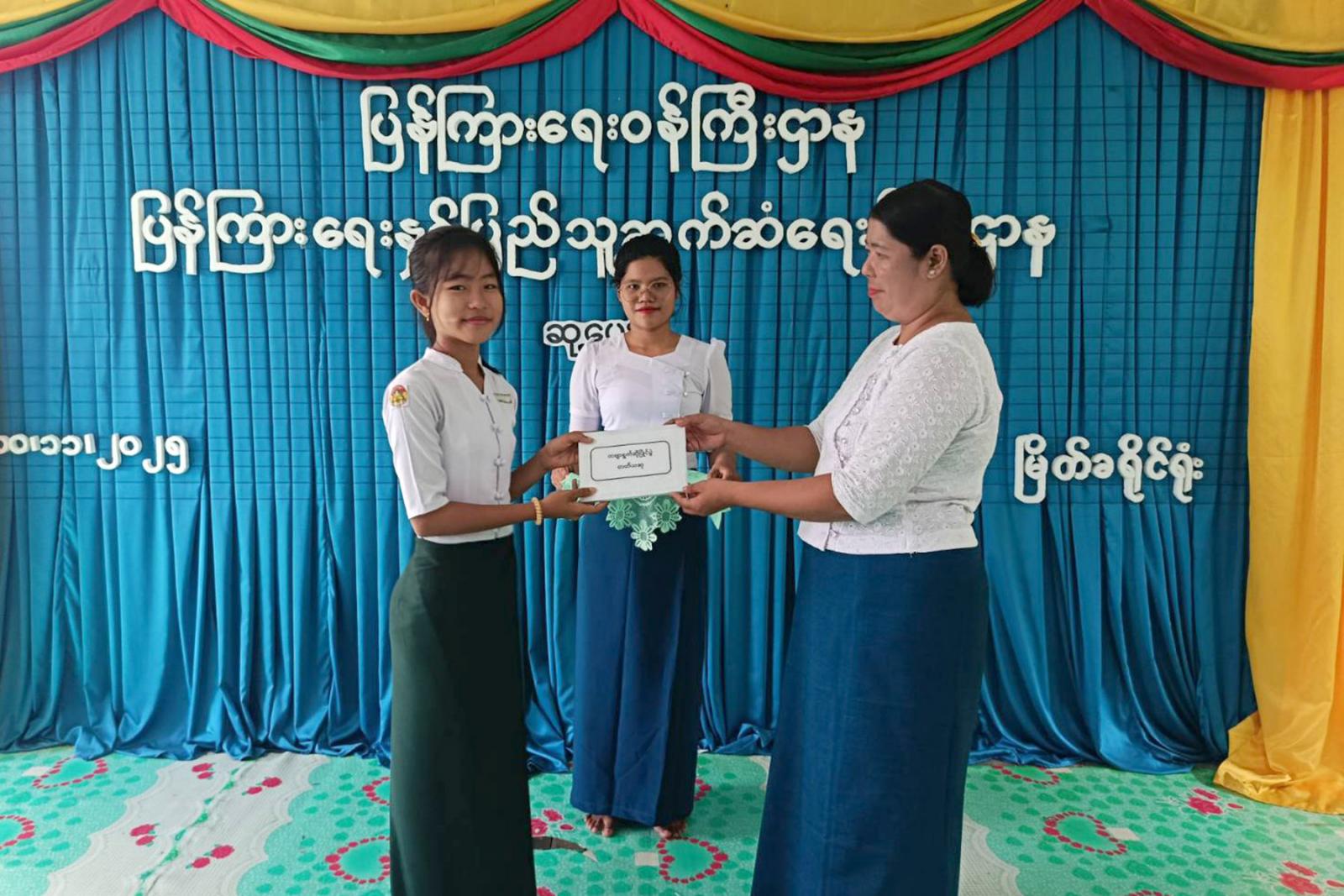 ထို့နောက် ပြိုင်ပွဲများတွင် ဆုရရှိကြသူများအား တာဝန်ရှိသူများက ဆုများအသီးသီးပေးအပ်ခဲ့ကြသည်။ ဆက်လက်၍ ကျောင်းသား/သူများက အမျိုးသားအောင်ပွဲနေ့ အထိမ်းအမှတ် နံရံကပ်စာစောင်နှင့် စာအုပ်ပြပွဲကို ကြည့်ရှုအားပေးကြကြောင်း သိရသည်။