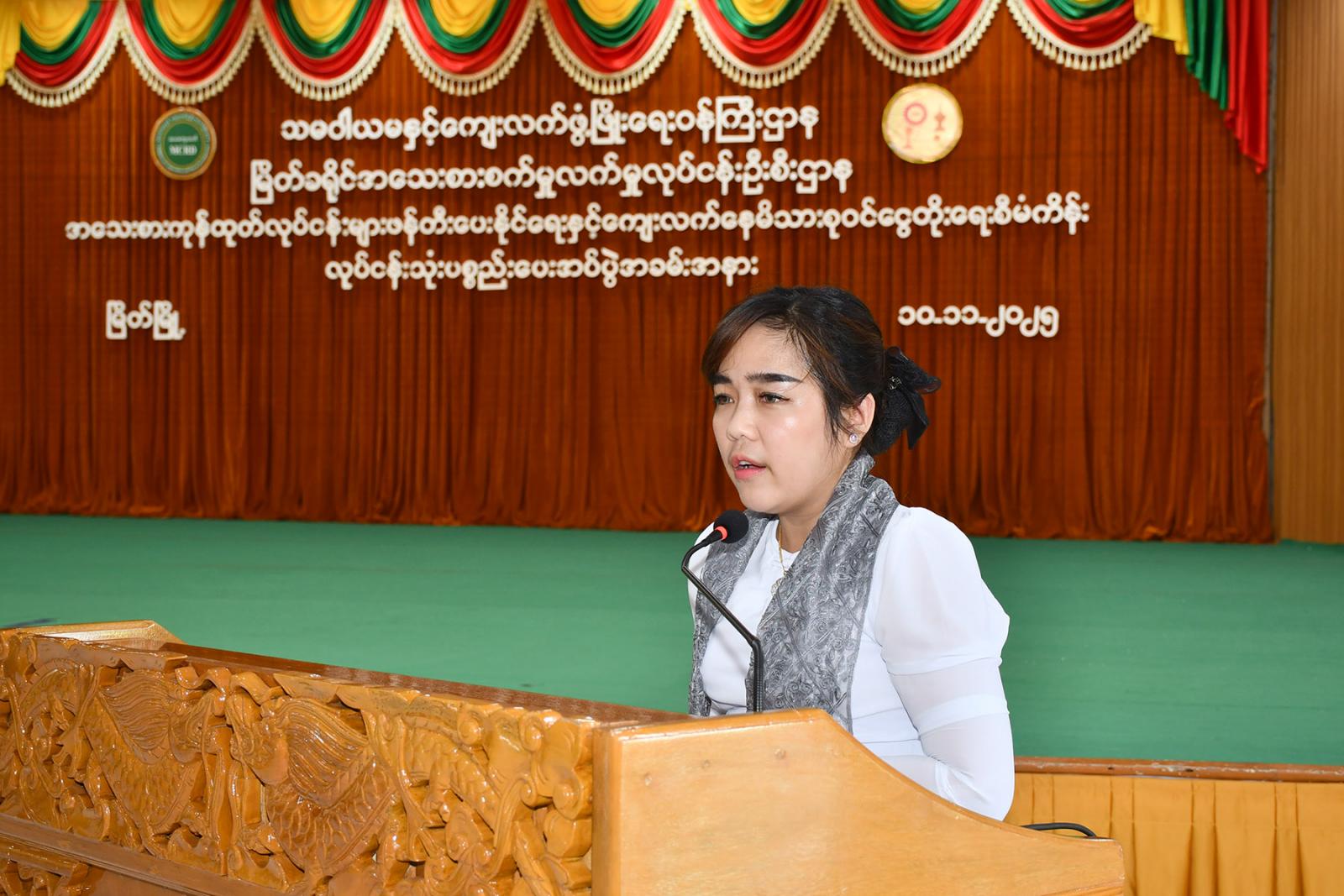 လုပ်ငန်းသုံးပစ္စည်းပေးအပ်ပွဲတွင် မြိတ်ခရိုင်စီမံခန့်ခွဲရေးနှင့်အုပ်ချုပ်ရေးကော်မတီဥက္ကဋ္ဌ ဦးမျိုးဦးက အမှာစကားပြောကြားပြီး အသေးစားစက်မှုလက်မှုလုပ်ငန်းဦးစီးဌာန မြိတ်ခရိုင်ဦးစီးမှူး ဒေါ်သူသူစံက စီမံကိန်းအကြောင်းအရာများ၊ လုပ်ငန်းသုံးပစ္စည်းများ ပေးအပ်ခြင်းနှင့်ပတ်သက်၍ ရှင်းလင်းပြောကြားသည်။