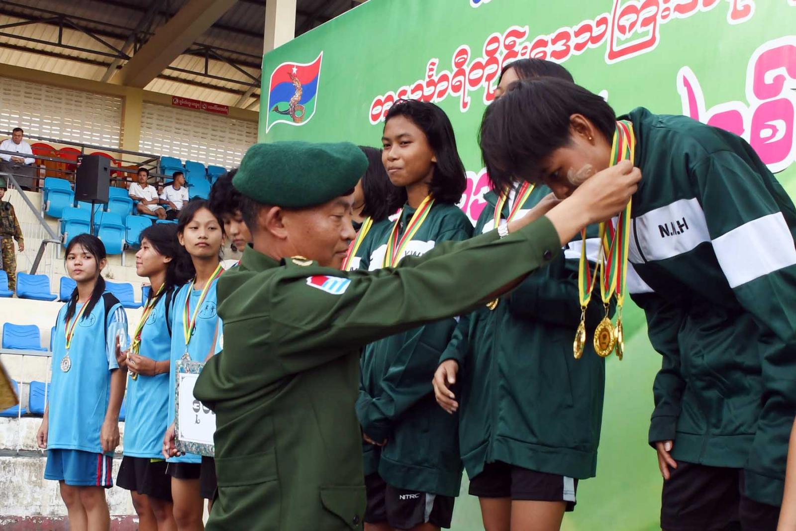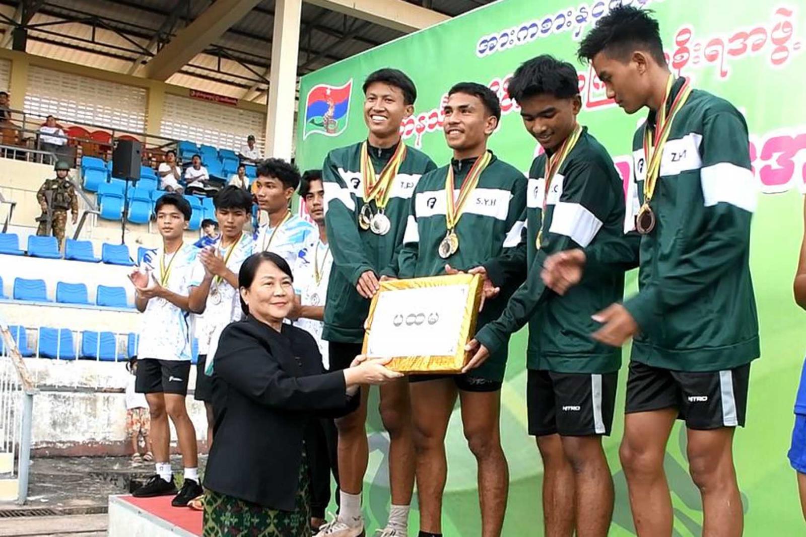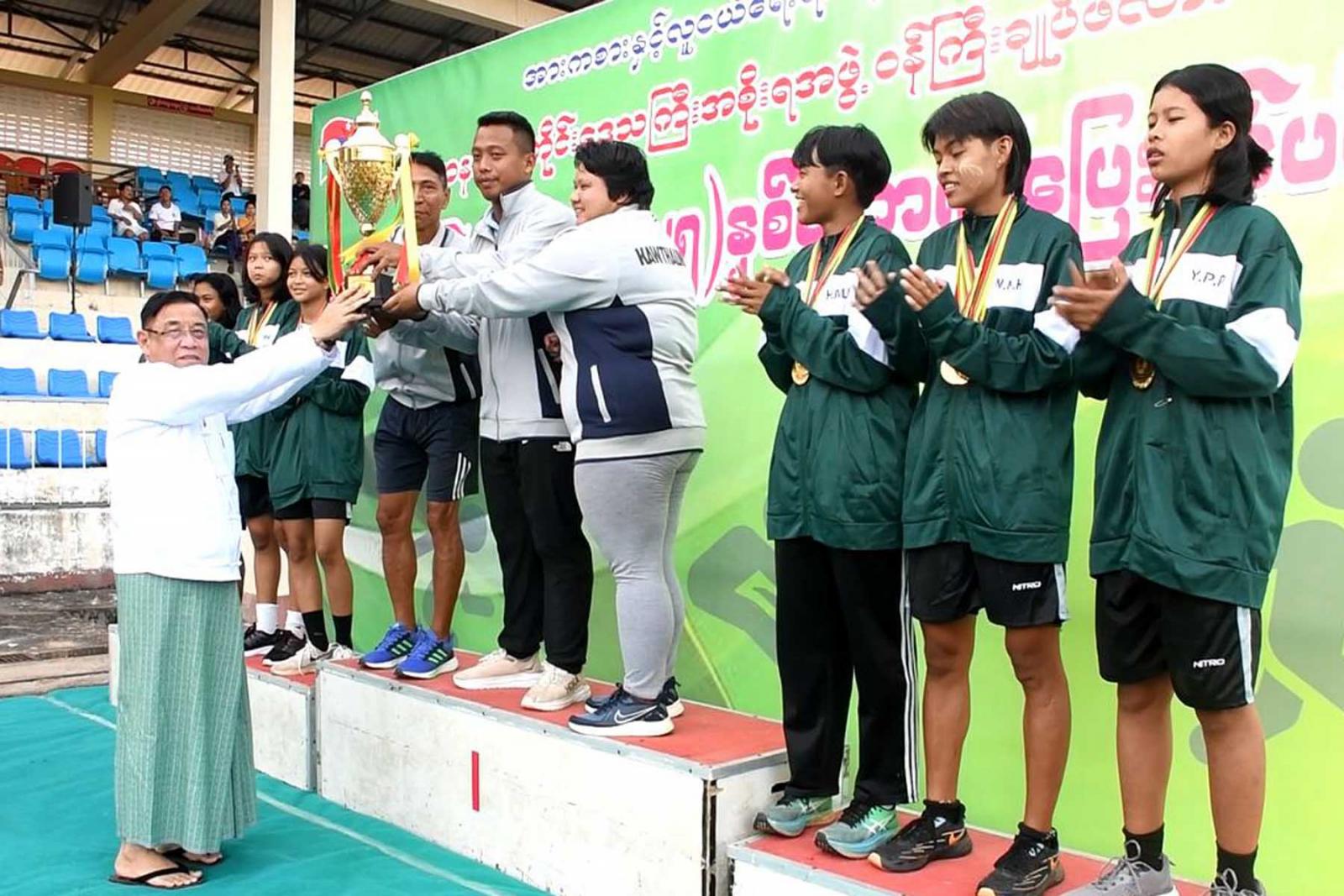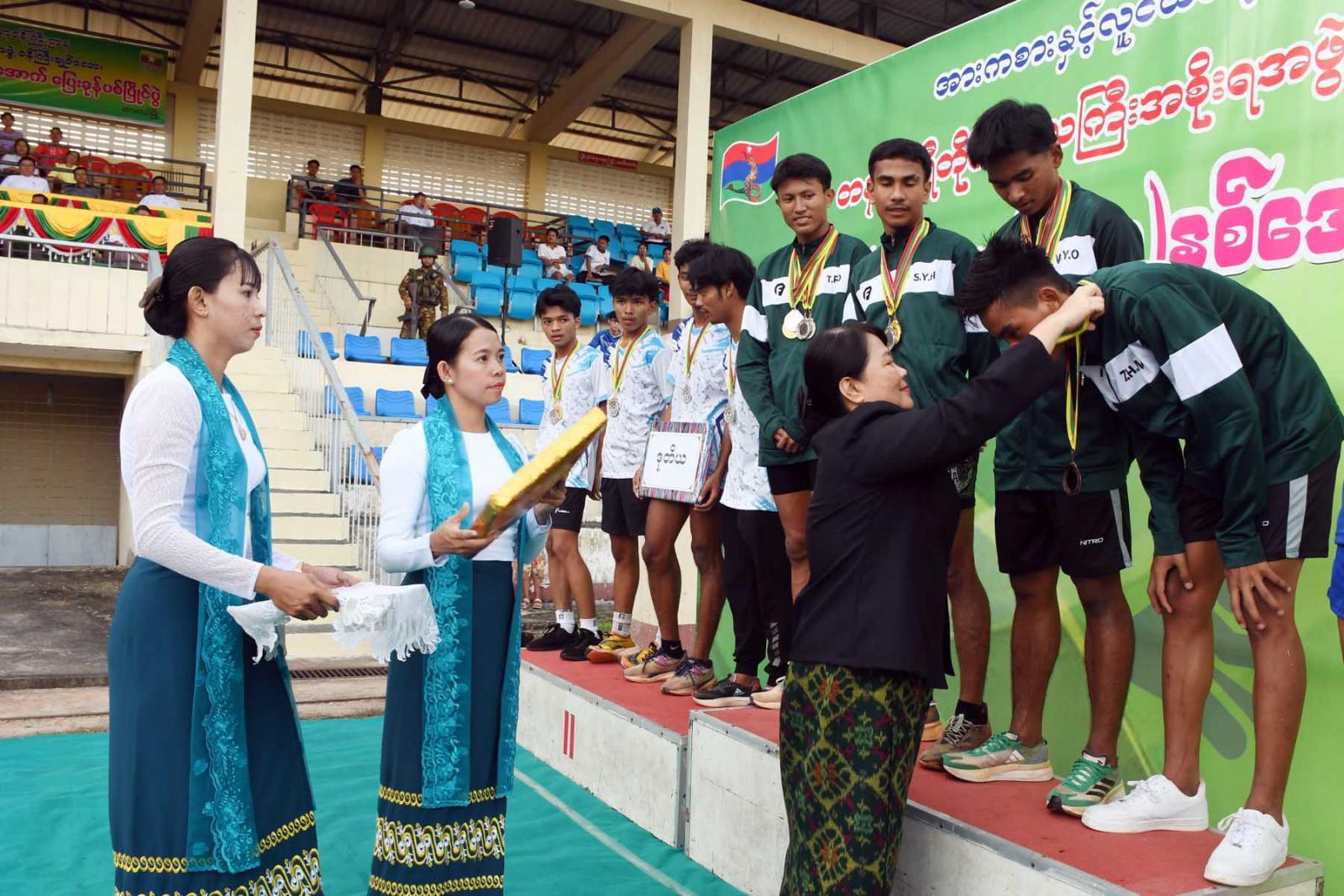 ဆက်လက်၍တိုင်းဒေသကြီးဝန်ကြီးချုပ်က အမျိုးသမီးပြိုင်ပွဲတွင်ရွှေတံဆိပ်(၁၂)ခု၊ ကြေး(၁)ခုဖြင့် ပထမဆုရရှိသောကော့သောင်းမြို့နယ်အသင်းနှင့်အမျိုးသားပြိုင်ပွဲများတွင် ရွှေတံဆိပ်(၇)၊ ငွေ(၃)ခုဖြင့် ပထမဆုရရှိသော သရက်ချောင်းမြို့နယ်အသင်းအား တံခွန်စိုက်ဆုဖလားများ ပေးအပ်ချီးမြှင့်ကြောင်း သတင်းရရှိသည်။