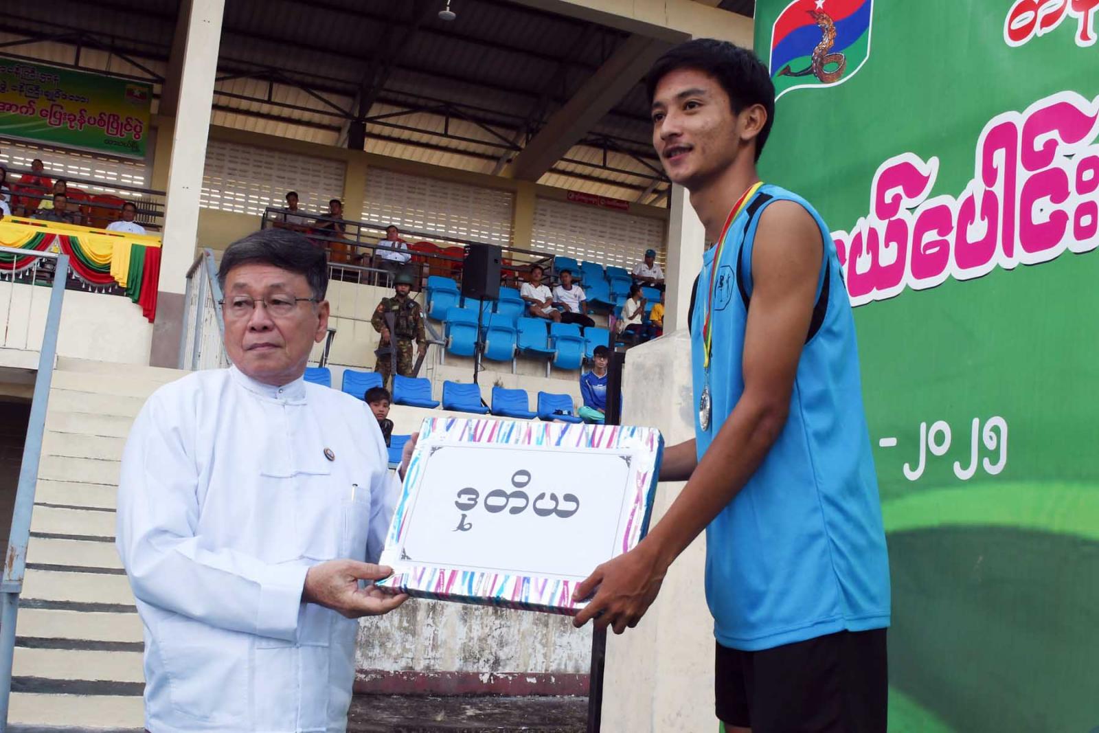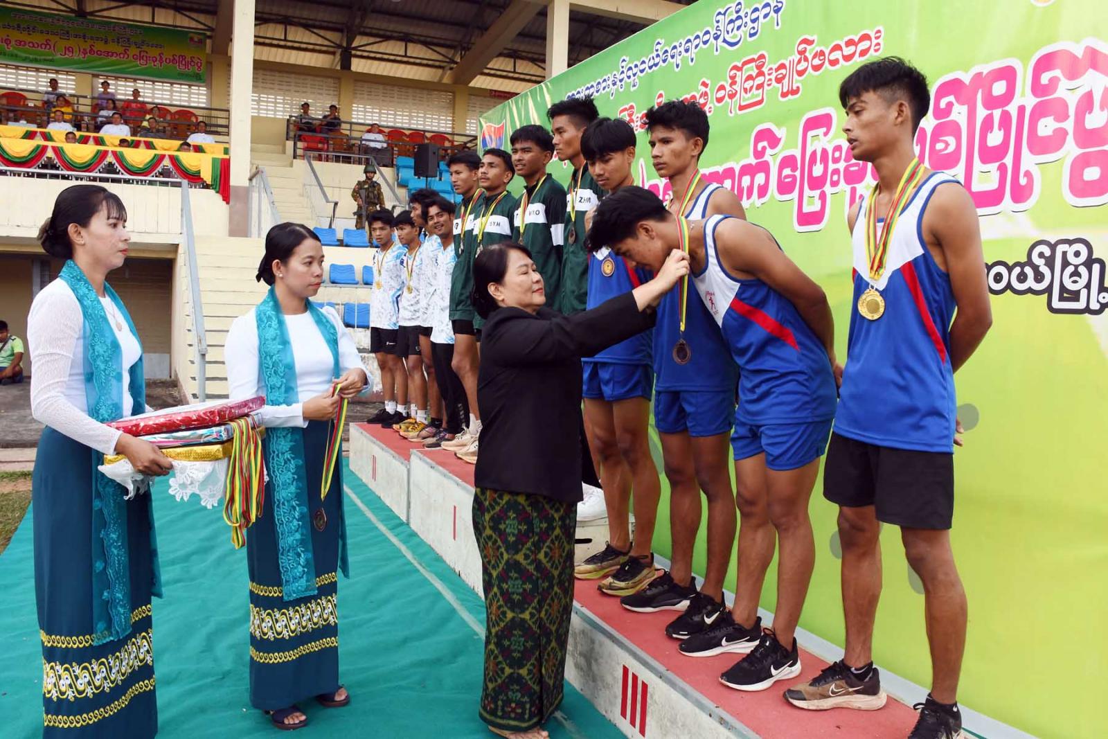 ထို့နောက်ဆုချီးမြှင့်ပွဲအခမ်းအနားကို ဆက်လက်ကျင်းပရာ တိုင်းဒေသကြီးလူမှုရေးရာဝန်ကြီးဦးသက်နိုင်က ပြိုင်ပွဲတစ်လျှောက် ကူညီဆောင်ရွက်ပေးသောကြက်ခြေနီတပ်ဖွဲ့အားဂုဏ်ပြုဆုငွေချီးမြှင့်ပြီး တိုင်းဒေသကြီးသယံဇာတရေးရာဝန်ကြီး ဦးခင်မောင်မြင့်က မီတာ(၁၀၀)ပြေး အမျိုးသမီးပြိုင်ပွဲတွင်ပထမဆုရရှိသော ကော့သောင်းမြို့နယ်မှ မဆုမြတ်မွန်၊ ဒုတိယဆုရရှိသော ထားဝယ်မြို့နယ်မှမအေးချမ်းလေပြေ၊ တတိယဆုရရှိသောသရက်ချောင်းမြို့နယ်မှ မဝင့်ဝါလှိုင်အား လည်းကောင်း၊ တိုင်းဒေသကြီး စီးပွားရေးရာဝန်ကြီးဦးမောင်ကြီးက အမျိုးသားပြိုင်ပွဲတွင် ပထမဆုရရှိသော သရက်ချောင်း မြို့နယ်မှ မောင်ကောင်းဆက်ဇော်၊ ဒုတိယ ဆုရရှိသောလောင်းလုံးမြို့နယ်မှ မောင်မိုးဆွေခန့်၊ တတိယဆုရရှိသော ကော့သောင်းမြို့နယ်မှ မောင်ဝေယံဦးအားလည်းကောင်း၊ တိုင်းဒေသကြီးလုံခြုံရေးနှင့်နယ်စပ်ရေးရာဝန်ကြီးဗိုလ်မှူးကြီး သိန်းဇော်မြင့်က မီတာ(၄၀၀×၄) လက်ဆင့်ကမ်း အမျိုးသားပြိုင်ပွဲတွင် ပထမဆုရရှိသော ကော့သောင်းမြို့နယ်အသင်း၊ ဒုတိယဆုရရှိသော သရက်ချောင်းမြို့နယ်အသင်း၊ တတိယဆုရရှိသော ထားဝယ်မြို့နယ်အသင်းအားလည်းကောင်း၊ တိုင်းဒေသကြီးတရားလွှတ်တော် တရားသူကြီးချုပ် ဒေါ်ပိုက်ပိုက်အေးက မီတာ(၄၀၀×၄)လက်ဆင့်ကမ်း အမျိုးသမီးပြိုင်ပွဲ တွင် ပထမဆုရရှိသော ကော့သောင်းမြို့နယ်အသင်း၊ ဒုတိယဆုရရှိသောလောင်းလုံးမြို့နယ်အသင်း၊ တတိယဆုရရှိသော ထားဝယ်မြို့နယ်အသင်းအားလည်းကောင်း တစ်ဦးချင်းဆုနှင့် ငွေသားဆုများအသီးသီးပေးအပ်ချီးမြှင့်သည်။