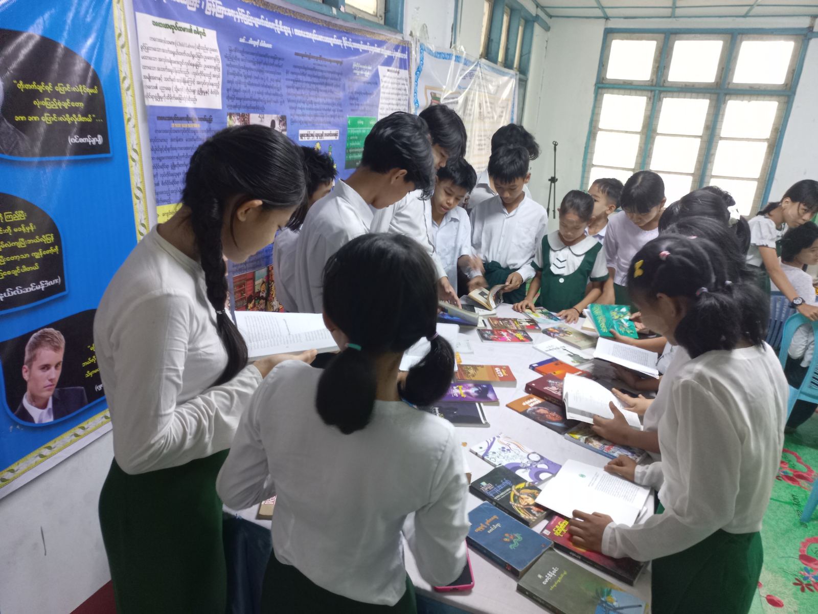 ထို့နောက် ပြန်ကြားရေးနှင့်ပြည်သူ့ဆက်ဆံရေးဦးစီးဌာနမှ ခင်းကျင်းပြသထားသည့် ကျန်းမာရေးအသိ ပညာပေး၊ လူကုန်ကူးမှုအန္တရာယ် တားဆီးကာကွယ် ရေးအသိပညာပေးနှင့် မူးယစ်ဆေးဝါးအန္တရာယ်ဆိုင်ရာ အသိပညာပေး နံရံကပ်စာစောင်ပြပွဲနှင့် စာအုပ်စာစောင်ပြပွဲများကို ကျောင်းသား၊ ကျောင်းသူများက စိတ်ပါဝင်စားစွာ လေ့လာကြည့်ရှုခဲ့ကြပြီး ဟောပြောပွဲသို့အမှတ်(၄)အခြေခံပညာမူလတန်းကျောင်းမှ ဆရာ၊ ဆရာမများ၊ ကျောင်း သား၊ကျောင်းသူများ Book Club အဖွဲ့၀င်များ၊ စုစုပေါင်း ၄၀ဦးခန့် တက်ရောက်ခဲ့ကြောင်းသိရသည်။