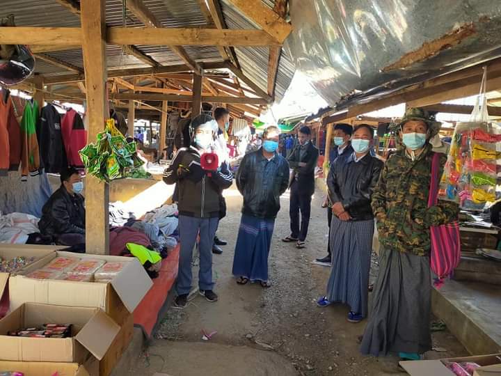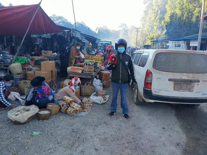 ကိုဗစ်-၁၉ ရောဂါ ကာကွယ်ထိန်းချုပ်ရေးလုပ်ငန်းများကို ရှမ်းပြည်နယ်(တောင်ပိုင်း)၊ ဓနုကိုယ်ပိုင် အုပ်ချုပ်ခွင့်ရဒေသ၊ ရွာငံမြို့နယ် ကိုဗစ်ကော်မတီမှ အရှိန်ဟုန်မြှင့် ဆောင်ရွက်လျက်ရှိရာ ရေဦးဈေးတွင် ဈေးရောင်းဈေးဝယ်များနှင့် ဈေးလာပြည်သူများအား နှာခေါင်းစည်းများ တင်ဆင်အသုံးပြုရေးနှင့် ကိုဗစ်-၁၉ ဆိုင်ရာ အသိပညာပေးခြင်းများကို ယနေ့ နံနက်(၇)နာရီက လမ်းမတစ်လျှောက်နှင့် အဆိုပါဈေးအတွင်း၌ ပြုလုပ်ဆောင်ရွက်ခဲ့သည်။