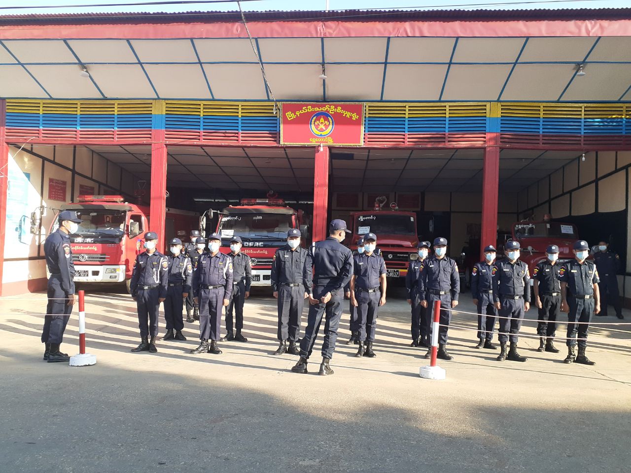 လေ့ကျင့်မှုများ ဆောင်ရွက်ရာ ယနေ့ နံနက်ပိုင်းက မြို့နယ်မီးသတ်ဦးစီးဌာန၌ မြို့နယ်မီးသတ် ဦးစီးဌာန ဦးစီးအရာရှိ ဦးသက်ပိုင်ထွန်း လမ်းညွှန်မှုဖြင့် မီးသတ်ဝန်ထမ်းများသည် အစဉ်အမြဲ စွမ်းရည်ပြည့်ဝနေရေး လက်နက်မဲ့စစ်ရေးပြလေ့ကျင့်ခန်းများ လေ့ကျင့်လျက်ရှိကြောင်း သိရသည်။ မီးဘေးအန္တရာယ် ကာကွယ်တားဆီးရေးအတွက် မီးငြှိမ်းသတ်နည်းနေရာနှင့် ရှာဖွေ ကယ်ဆယ်ရေးလုပ်ငန်းနေရာများ၊ သဘာဝဘေးအန္တရာယ် အပါအဝင် အခြားသော ဘေးအန္တရာယ်များ ကျရောက်လာသည့်အခါ အရေးပေါ် ရှာဖွေကယ်ဆယ်ရေးလုပ်ငန်းများ တွင် မိမိ၏တပ်ဖွဲ့ဝင်များ အစဉ်အမြဲ စွမ်းရည်ပြည့်ဝနေစေရန် အပတ်စဉ် လေ့ကျင့်မှုများ ဆောင်ရွက်သွားမည်ဖြစ်ကြောင်း မြို့နယ်မီးသတ်ဦးစီးဌာနမှ သိရသည်။
