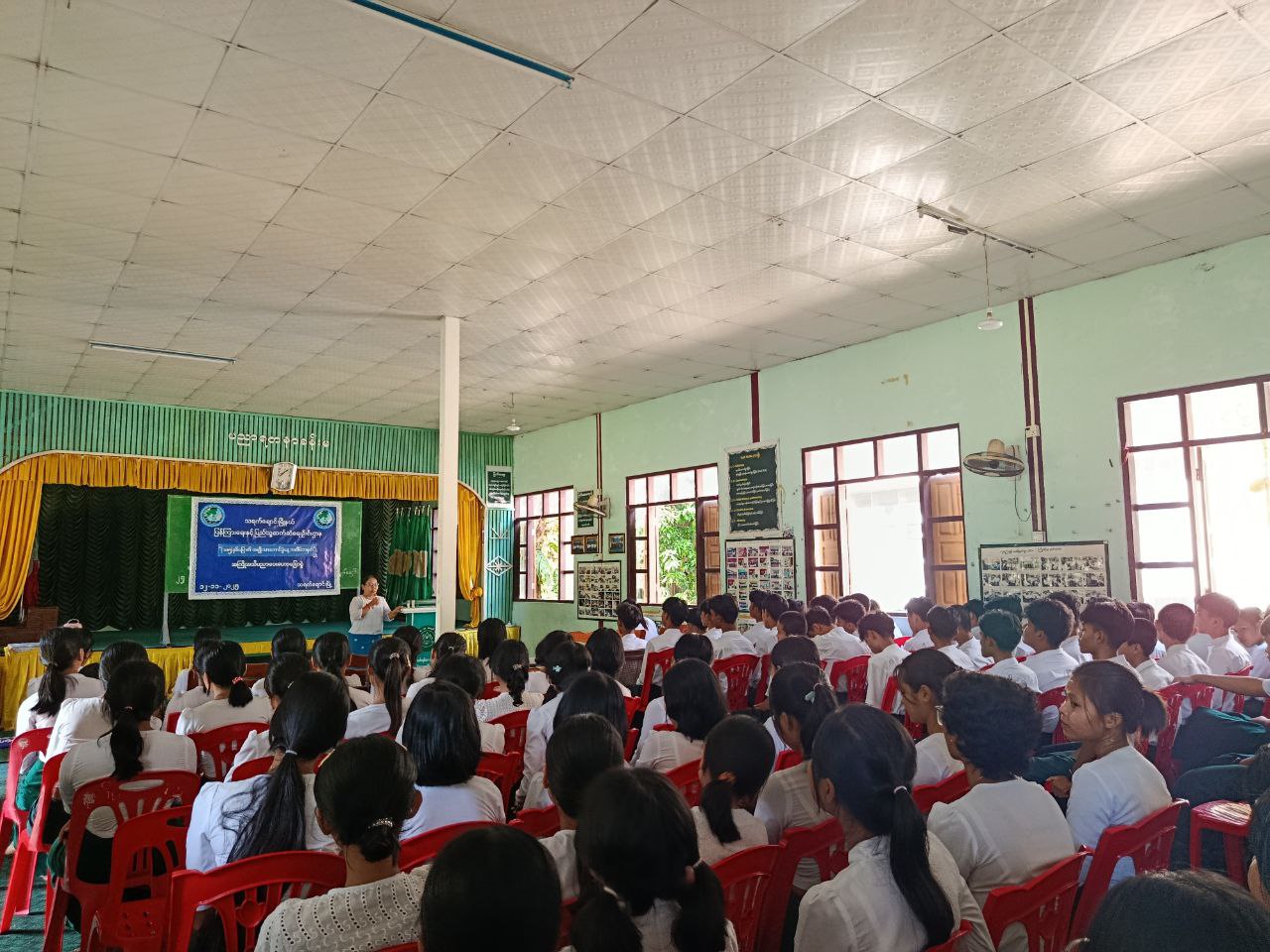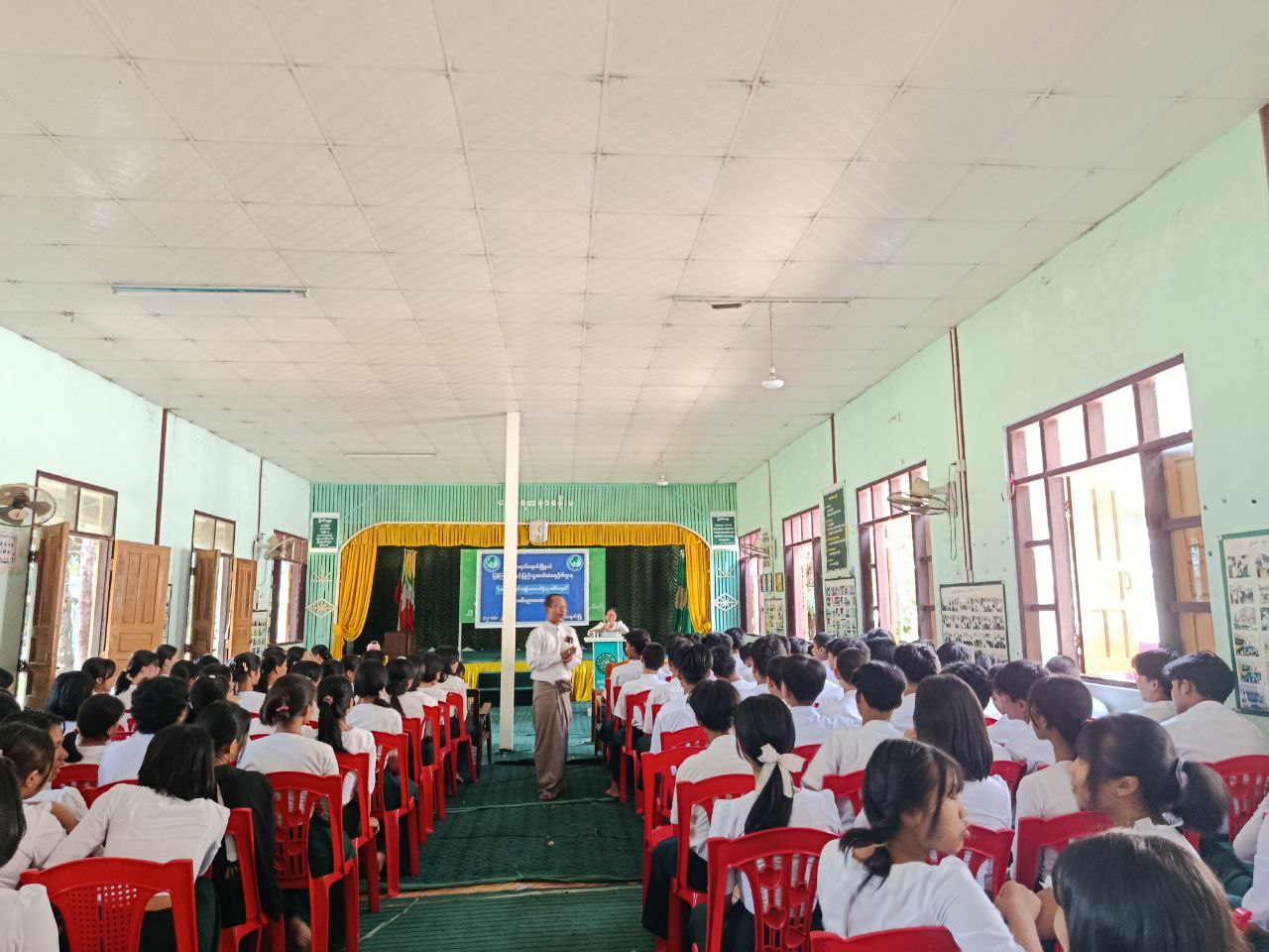 ဆက်လက်၍ သရက်ချောင်းမြို့နယ်၊ ပြန်ကြားရေးနှင့်ပြည်သူ့ဆက်ဆံရေးဦးစီးဌာနမှ ဦးစီးအရာရှိ ဒေါ်နန်းခလိုက်ရှုက အမျိုးသားအောင်ပွဲနေ့ဖြစ် ပေါ်လာပုံသမိုင်းကြောင်းနှင့် သိကောင်းစရာများ၊ ကျောင်းနေအရွယ်ကလေးဘဝမှ စတင်ပြီး နိုင်ငံချစ်စိတ်၊ လူမျိုးချစ်စိတ်များ ရှင်သန်ထက်မြက်လာရေး၊ နိုင်ငံတော်နှင့် အမျိုးဂုဏ်ဇာတိဂုဏ်ကို ထိန်းသိမ်းကာကွယ်စိတ်၊ အမျိုးသားရေးစိတ်ဓာတ်၏ အရေးပါမှု စသည့် ဗဟုသုတဖြစ်ဖွယ်များနှင့် သိမှတ်ဖွယ်ရာများအား အသိပညာပေးဟောပြောခဲ့ပြီးနောက် ကျောင်းသား/သူများနှင့် အပြန်အလှန်ဆွေးနွေးခဲ့သည်။