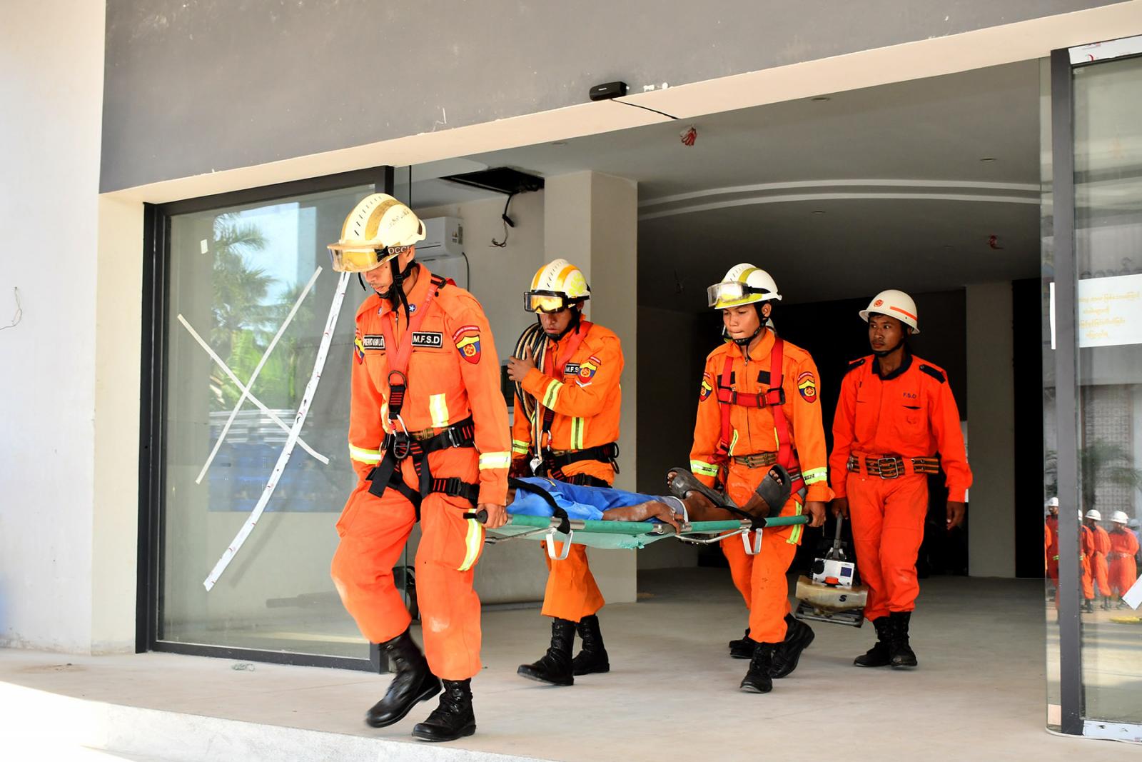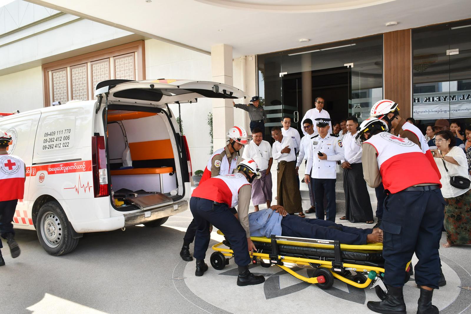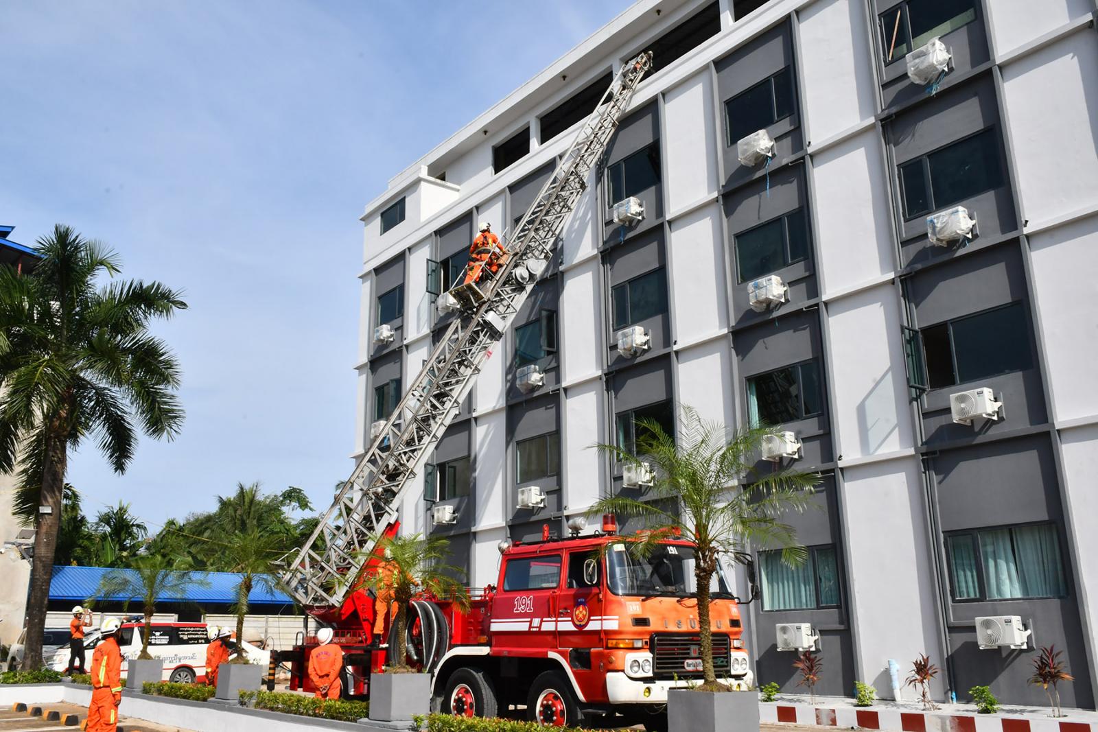 ဇာတ်တိုက်လေ့ကျင့်မှုကို ဘေးအန္တရာယ်စီမံခန့်ခွဲမှုဦးစီးဌာန၊ မီးသတ်ဦးစီးဌာန၊ ပြည်သူ့ကျန်းမာရေးဦးစီးဌာန၊ ကြက်ခြေနီတပ်ဖွဲ့နှင့် လူမှုရေးအသင်းအဖွဲ့များက မီးငြှိမ်းသတ်ယာဉ်၊ ရှာဖွေကယ်ဆယ်ရေးယာဉ်နှင့် လူနာတင်ယာဉ်များဖြင့် ဇာတ်တိုက်ခဲ့ကြရာ ဝန်ကြီးချုပ်နှင့် တာဝန်ရှိသူများက ကြည့်ရှုအားပေးခဲ့ကြသည်။ ထိုသို့ဇာတ်တိုက်လေ့ကျင့်ခြင်းဖြင့် ဟိုတယ်တွင်ရှိသည့် တည်းခိုနေထိုင်သူများနှင့် ဟိုတယ်ဝန်ထမ်းများအနေဖြင့် ဘေးအန္တရာယ်ဖြစ်ပွားလာပါက စနစ်တကျတုံ့ပြန်ဆောင်ရွက်ရမည့် နည်းလမ်းများကို သိရှိနားလည်၍ မိမိတို့ဘဝအတွက်သာမက မိမိတို့မိသားစုနှင့် ပတ်ဝန်းကျင်အသိုင်းအဝိုင်းများ၏ ဘေးကင်းလုံခြုံမှုအတွက်ပါ ကောင်းစွာအသုံးချနိုင်ပြီး ဘေးဒဏ်ကြံ့ကြံ့ခံနိုင်သော ရပ်ရွာအသိုက်အဝန်း တစ်ခုဖြစ်လာမည်ဖြစ်ကြောင်း သိရသည်။