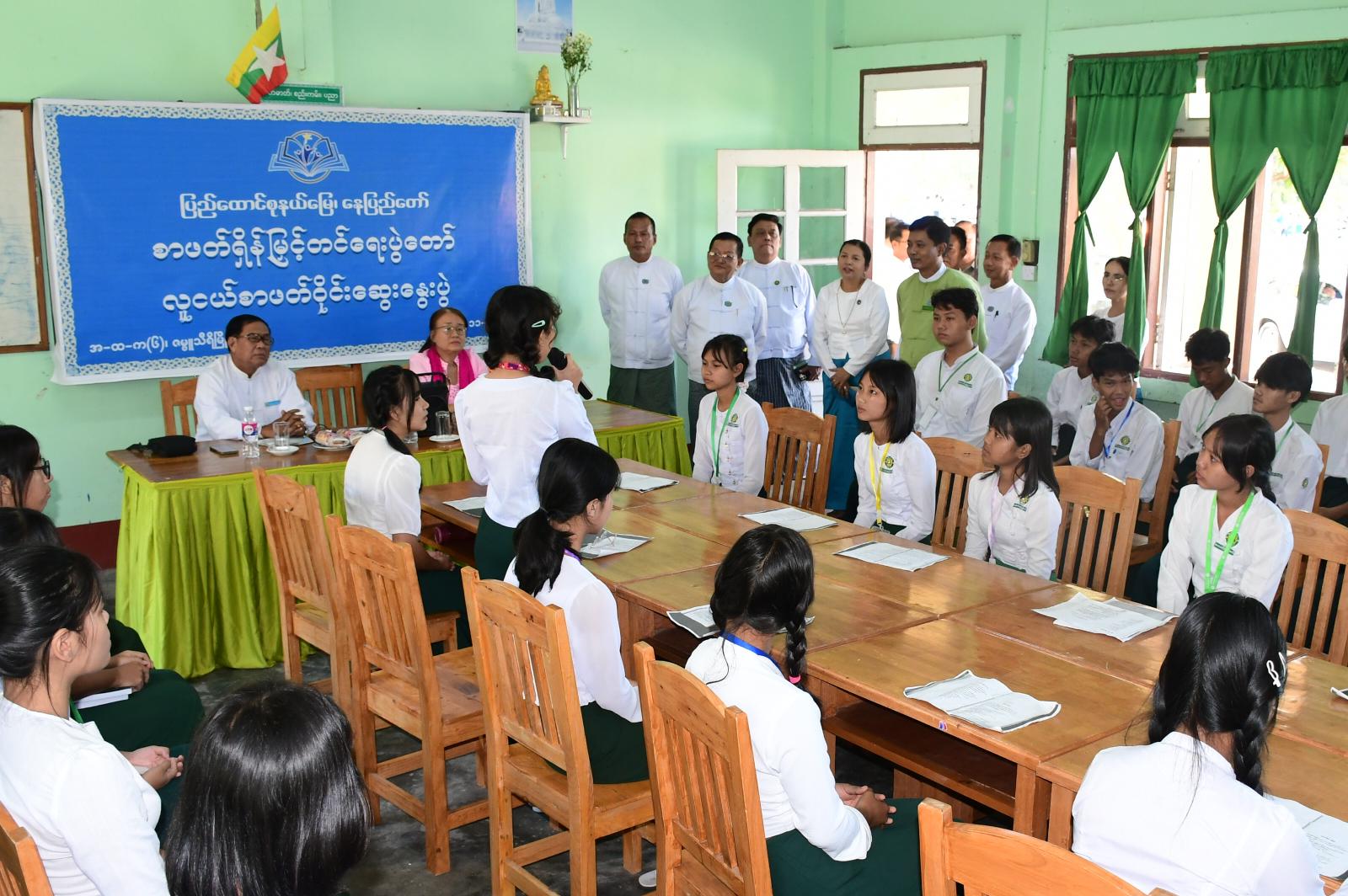 ထို့နောက် လူငယ်စကားဝိုင်း ဆောင်ရွက်ခဲ့ပြီး ဆုပေးပွဲအခမ်းအနားကို ဆက်လက်ကျင်းပရာ ပြန်ကြားရေးနှင့်ပြည်သူ့ဆက်ဆံရေးဦးစီးဌာန ညွှန်ကြားရေးမှူး ဒေါ်သင်းသင်းဇင်နှင့် တာဝန်ရှိသူများက ဉာဏပြိုင်ပွဲများမှ ဆုရရှိသူများကို ဆုများအသီးသီး ပေးအပ်ချီးမြှင့်ခဲ့ကြကြောင်း သိရသည်။
