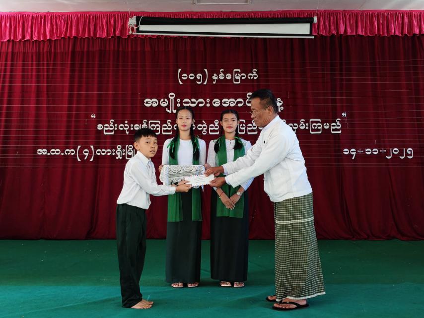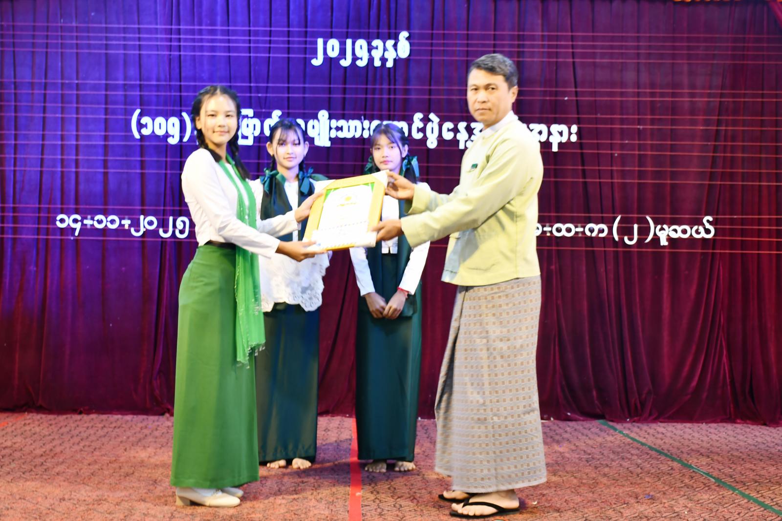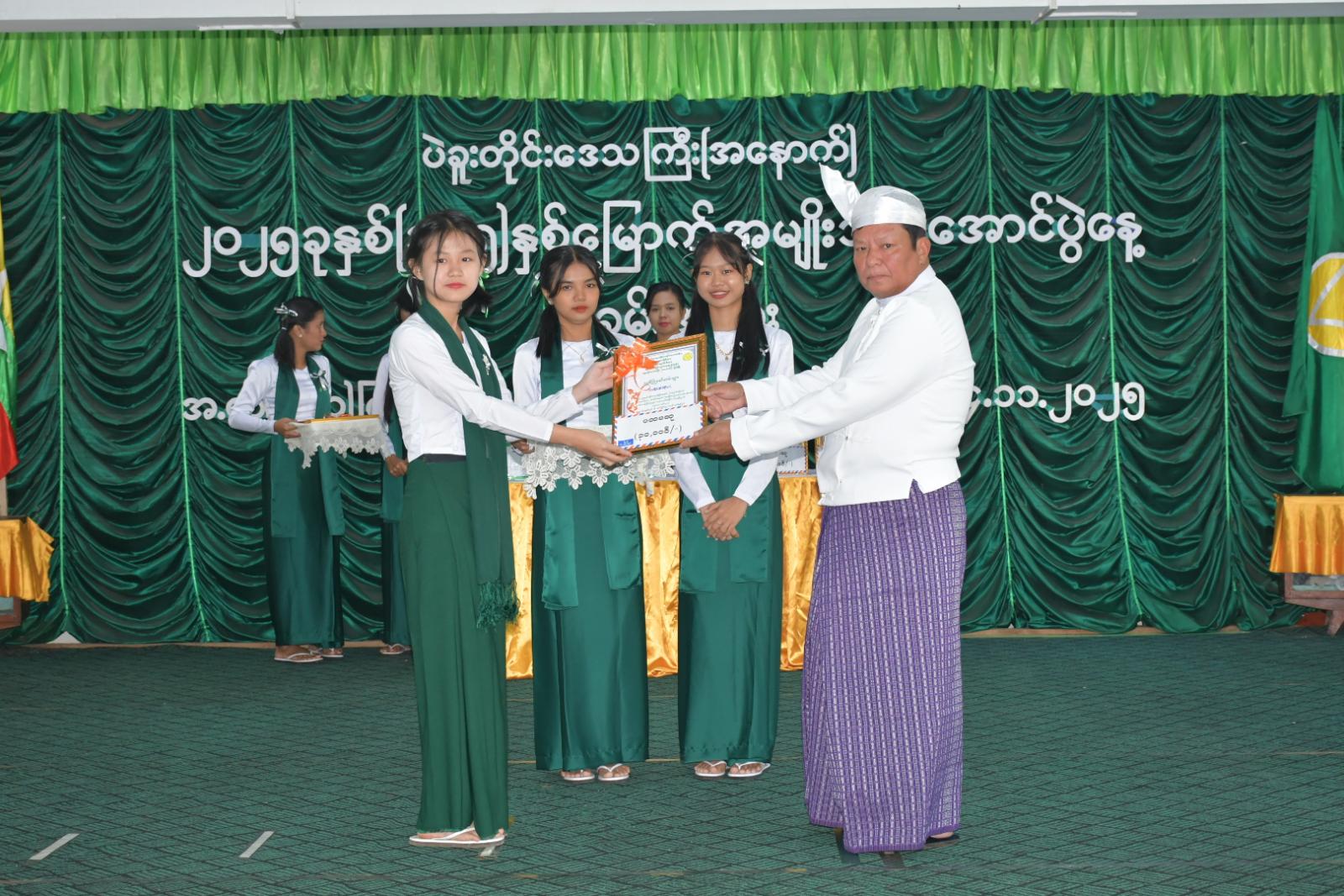 ထို့နောက် (၁၀၅) နှစ်မြောက် အမျိုးသားအောင်ပွဲနေ့ အထိမ်းအမှတ် စာစီစာကုန်း၊ ပန်းချီနှင့် ကဗျာပြိုင်ပွဲများတွင် ဆုရရှိသူ ကျောင်းသား၊ ကျောင်းသူများအား သက်ဆိုင်ရာတာဝန်ရှိသူများက ဆုများအသီးသီးပေးအပ်ချီးမြှင့်ခဲ့ကြောင်း သိရသည်။ အခမ်းအနားအပြီး တက်ရောက်လာသူများအား ပြန်ကြားရေးနှင့်ပြည်သူ့ဆက်ဆံရေးဦးစီးဌာနက (၁၀၅)နှစ်မြောက် အမျိုးသားအောင်ပွဲနေ့ သတင်းစကား လက်ကမ်းစာစောင်များဖြန့်ဝေပေးခဲ့ကြောင်းသိရသည်။