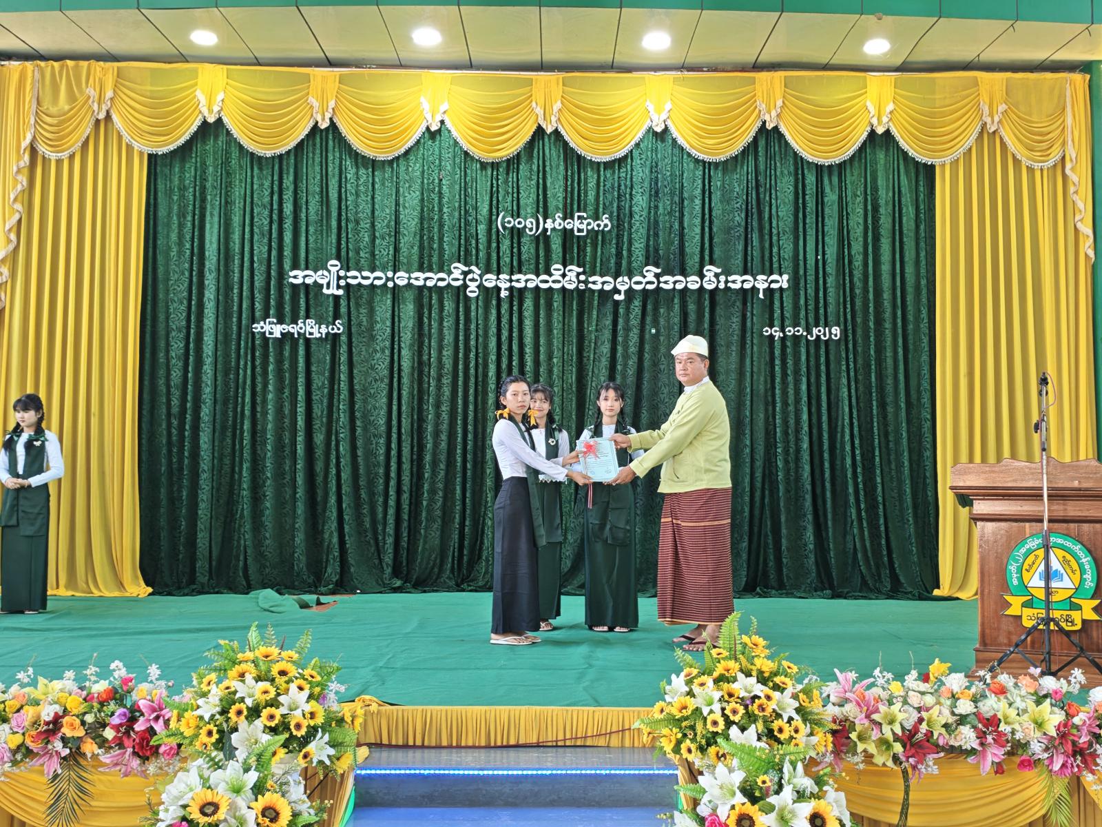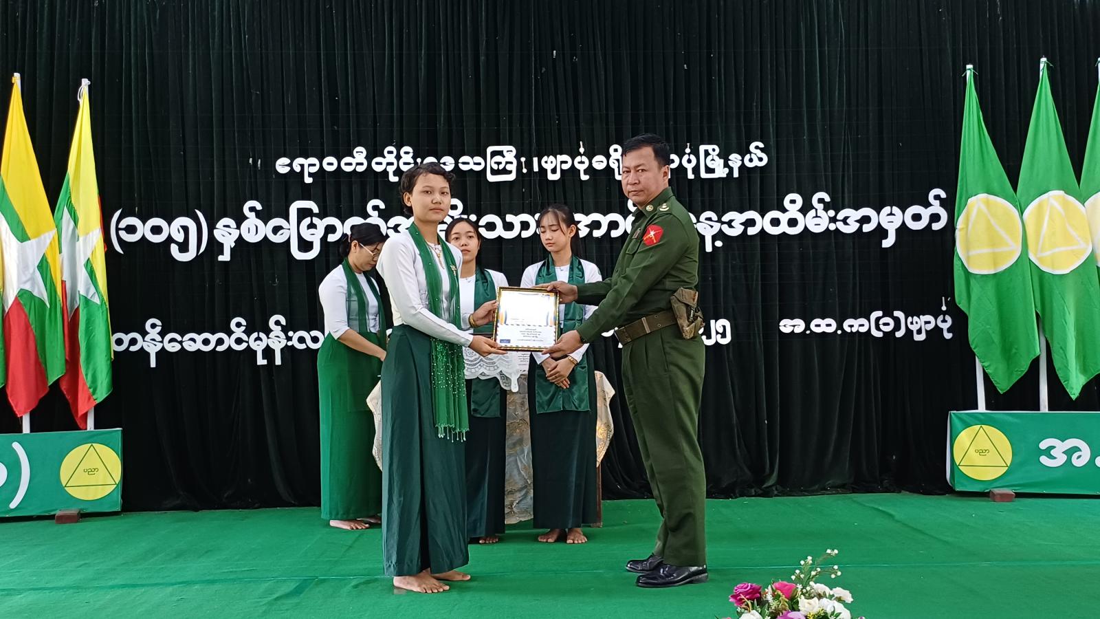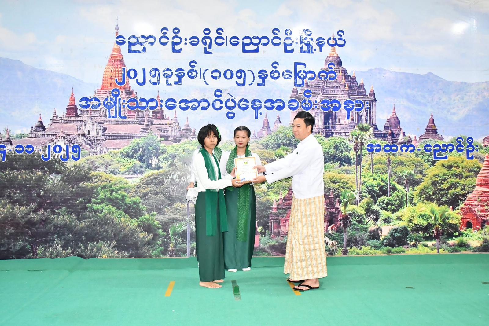 ထို့နောက် (၁၀၅) နှစ်မြောက် အမျိုးသားအောင်ပွဲနေ့ အထိမ်းအမှတ် စာစီစာကုန်း၊ ပန်းချီနှင့် ကဗျာပြိုင်ပွဲများတွင် ဆုရရှိသူ ကျောင်းသား၊ ကျောင်းသူများအား သက်ဆိုင်ရာတာဝန်ရှိသူများက ဆုများအသီးသီးပေးအပ်ချီးမြှင့်ခဲ့ကြောင်း သိရသည်။ အခမ်းအနားအပြီး တက်ရောက်လာသူများအား ပြန်ကြားရေးနှင့်ပြည်သူ့ဆက်ဆံရေးဦးစီးဌာနက (၁၀၅)နှစ်မြောက် အမျိုးသားအောင်ပွဲနေ့ သတင်းစကား လက်ကမ်းစာစောင်များဖြန့်ဝေပေးခဲ့ကြောင်းသိရသည်။